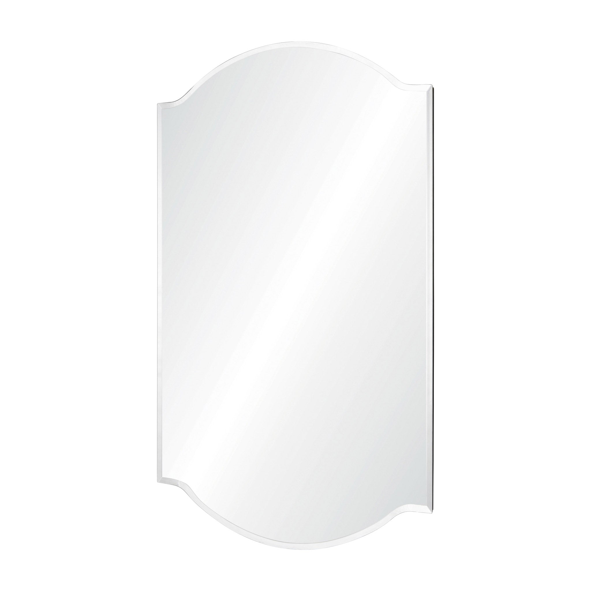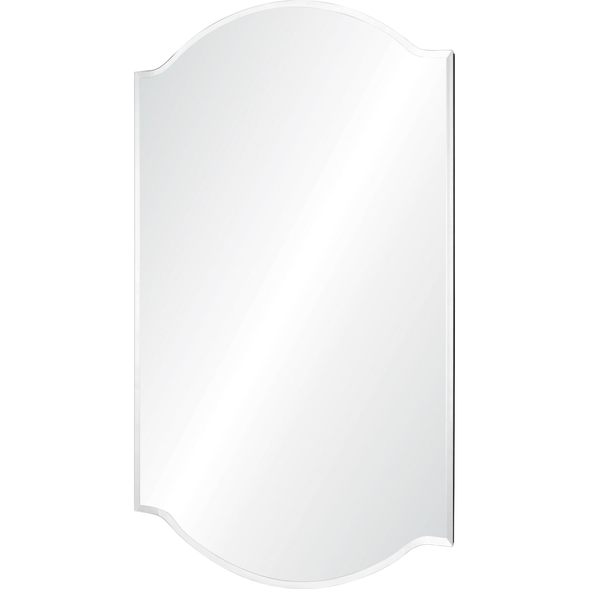 Grandeur and grace enter the traditional living room with this elegant mirror design. Hung vertically or horizontally, it captures and reflects the beauty of the interior. With its flowy all-glass design, it needs no additional details to make an impression.
