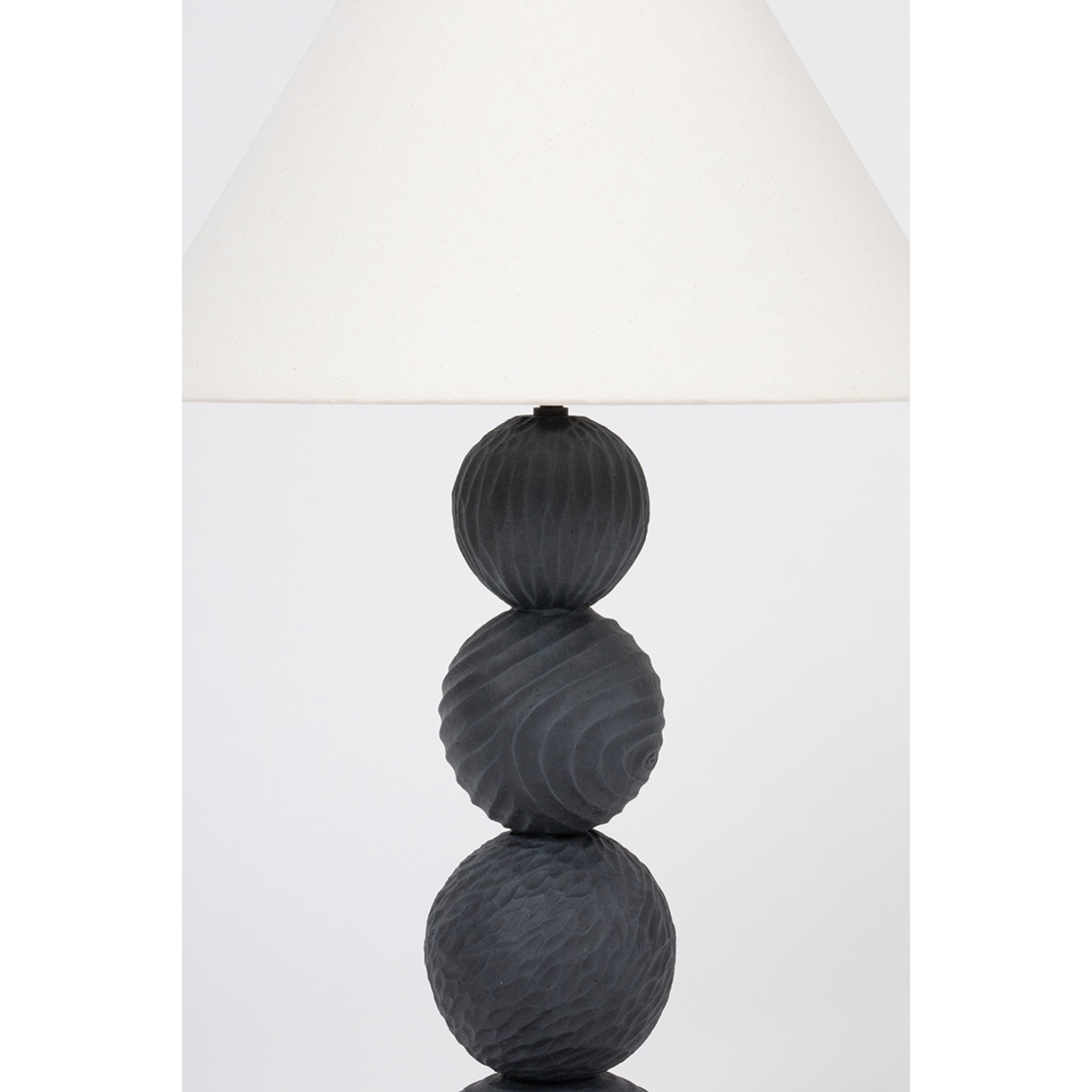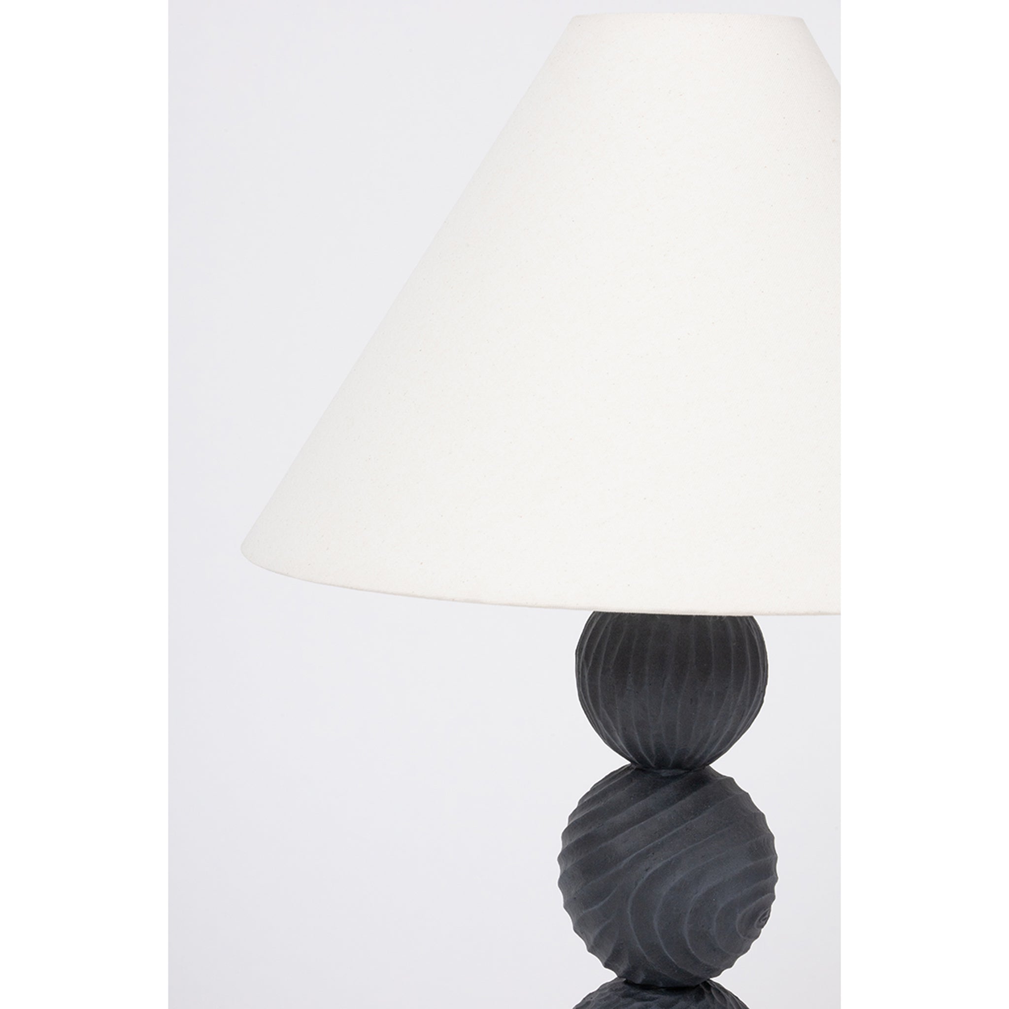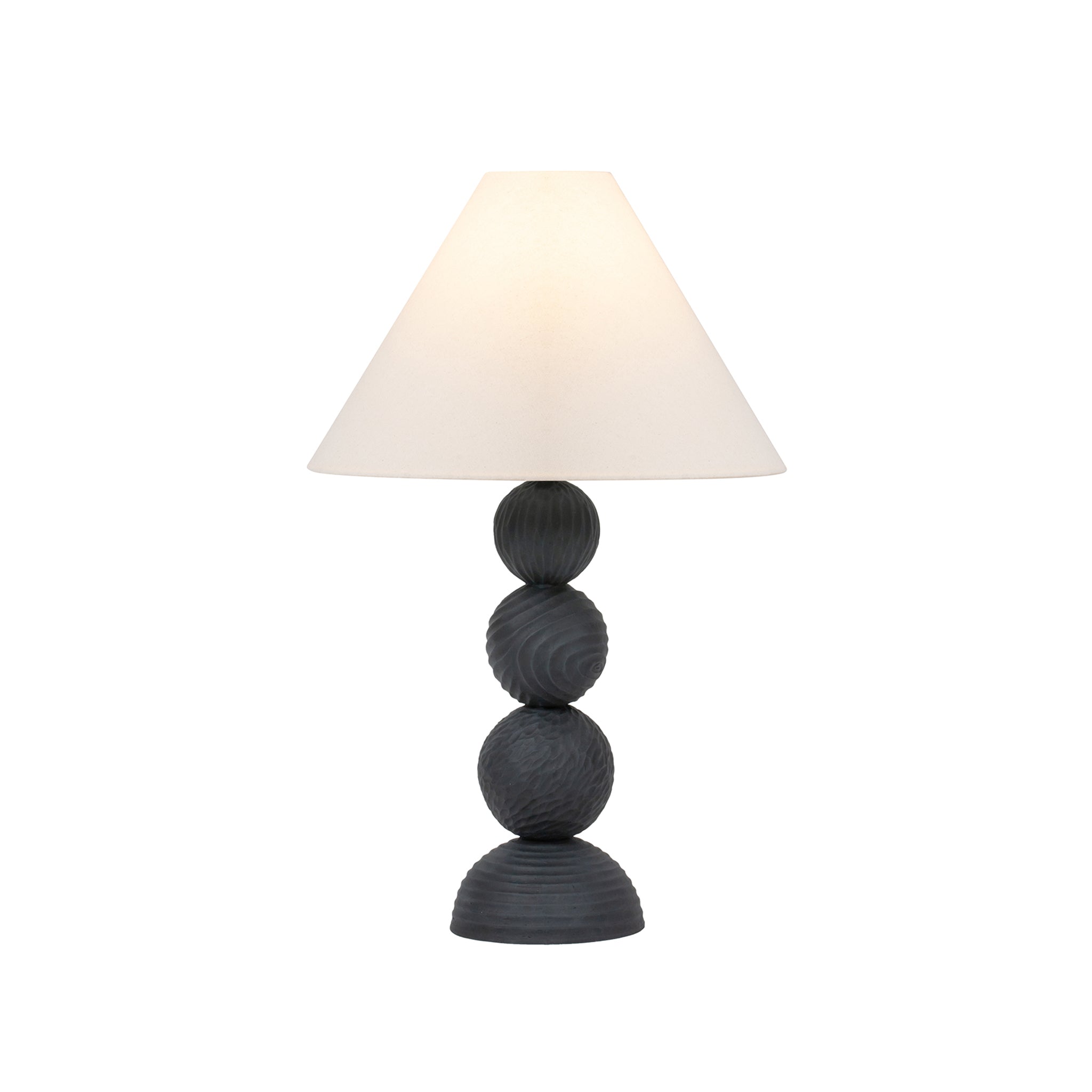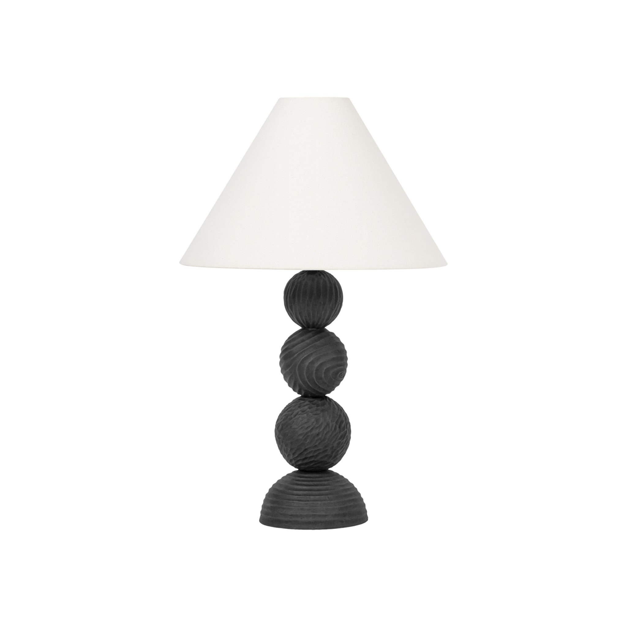 A totem-style design with rhythmic energy, Miela conceptually aligns with folk art aesthetics. Incised spheres reminiscent of carved wood are modeled from Black Motif Ceramic, resulting in a striking, polished appearance. Miela is further enhanced by an oversized pull chain and frame finished in Forged Iron. The off-white linen shade introduces a clean point of contrast. Part of our Loft and Thought collection. *Due to the one-of-a-kind nature of the medium, exact colors and patterns may vary slightly from the image shown.