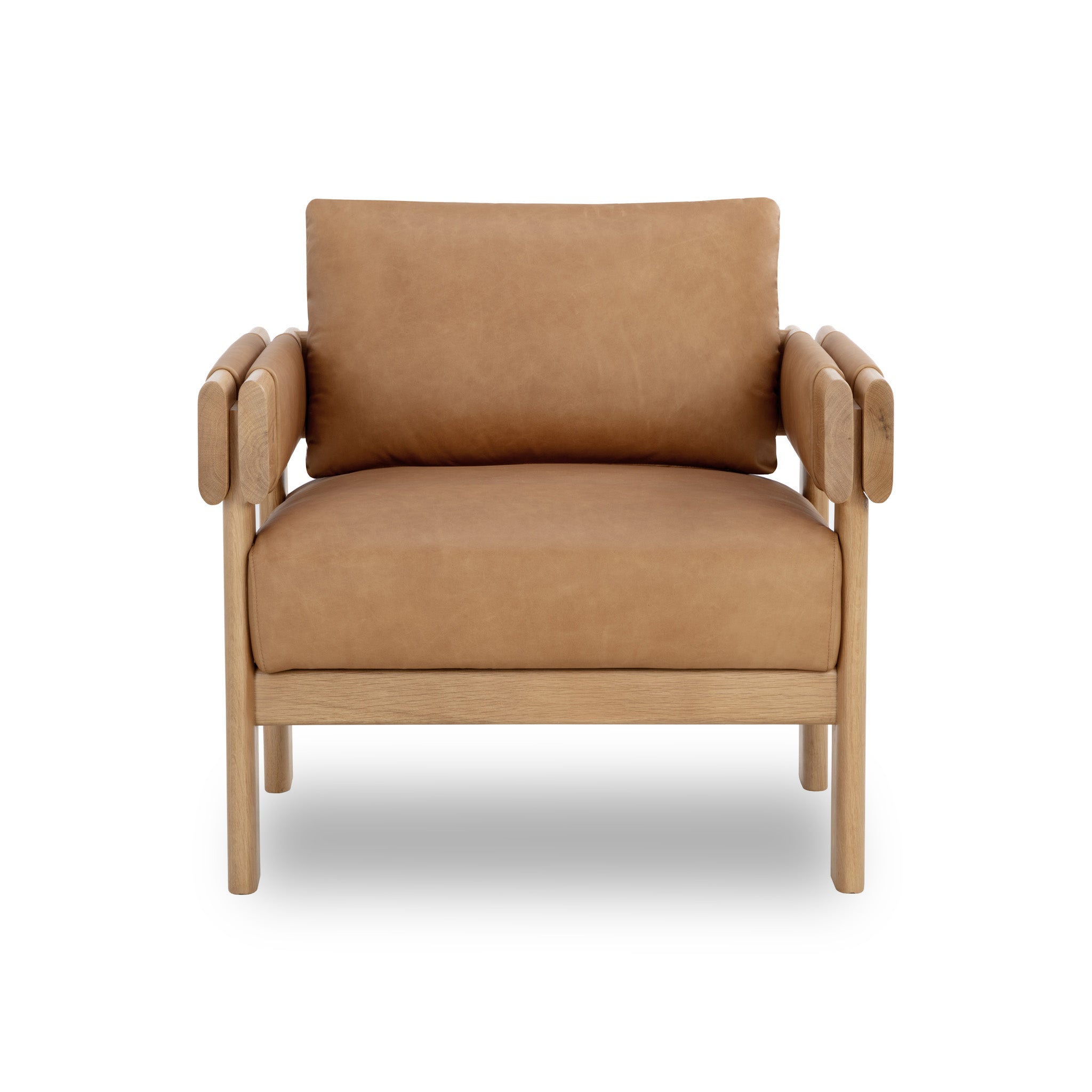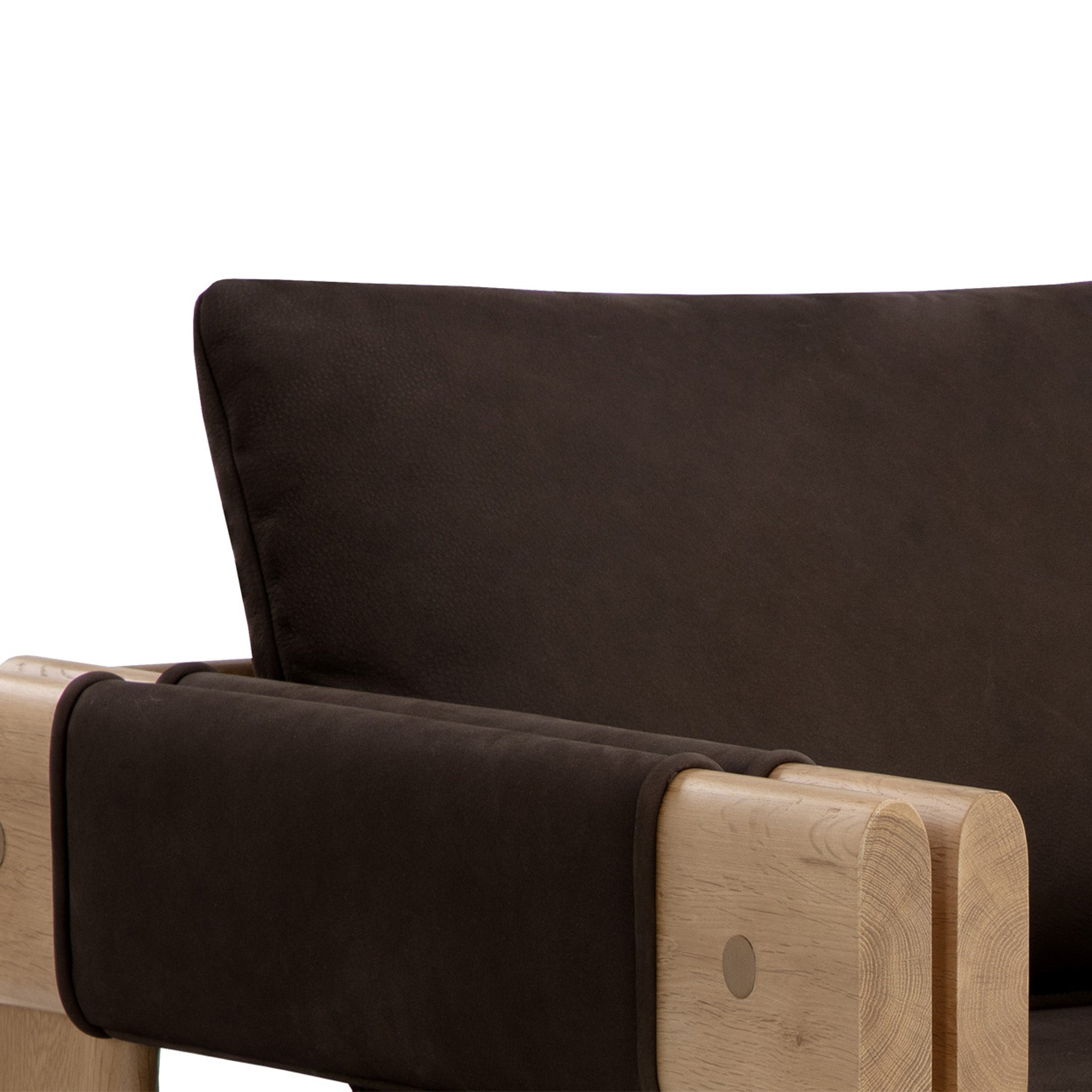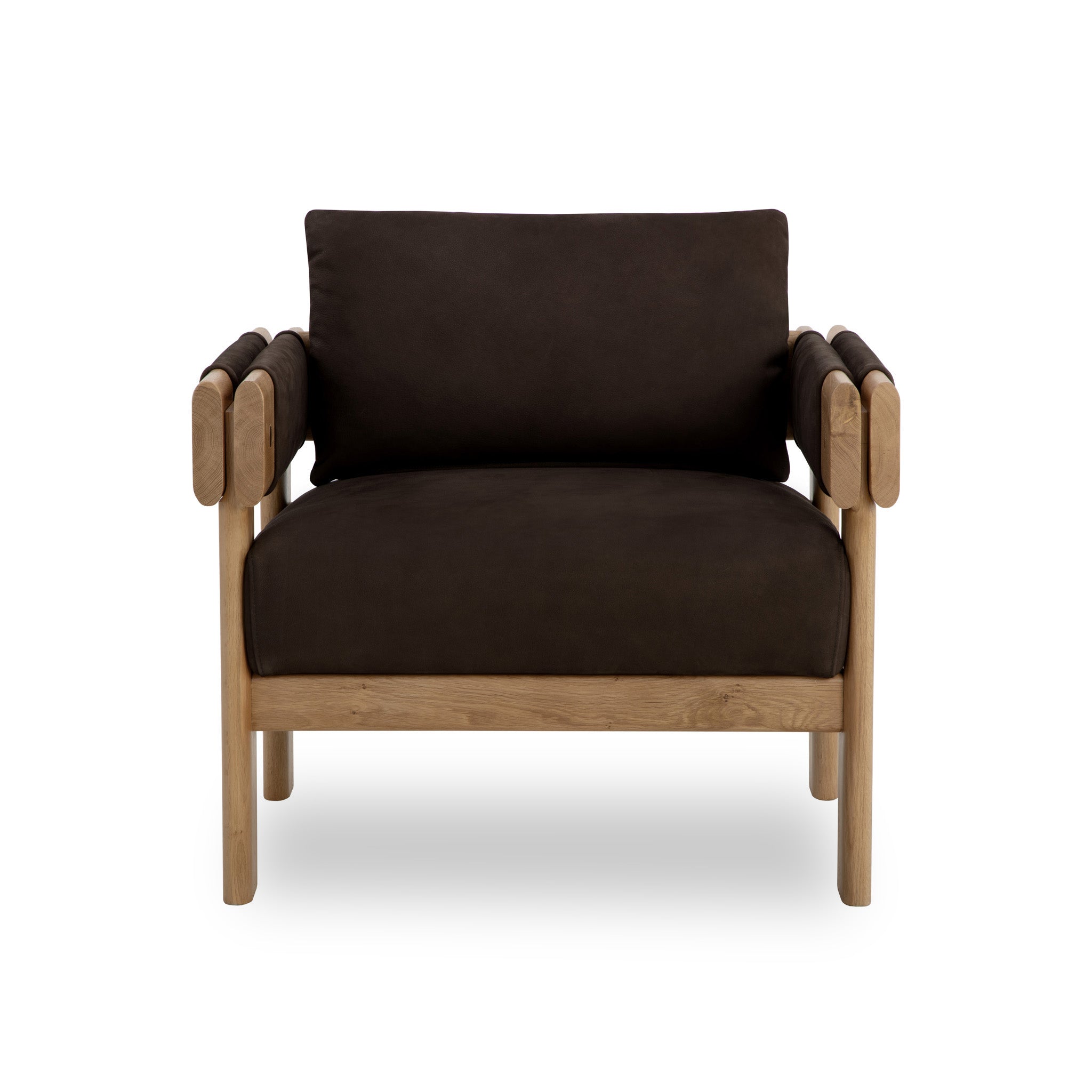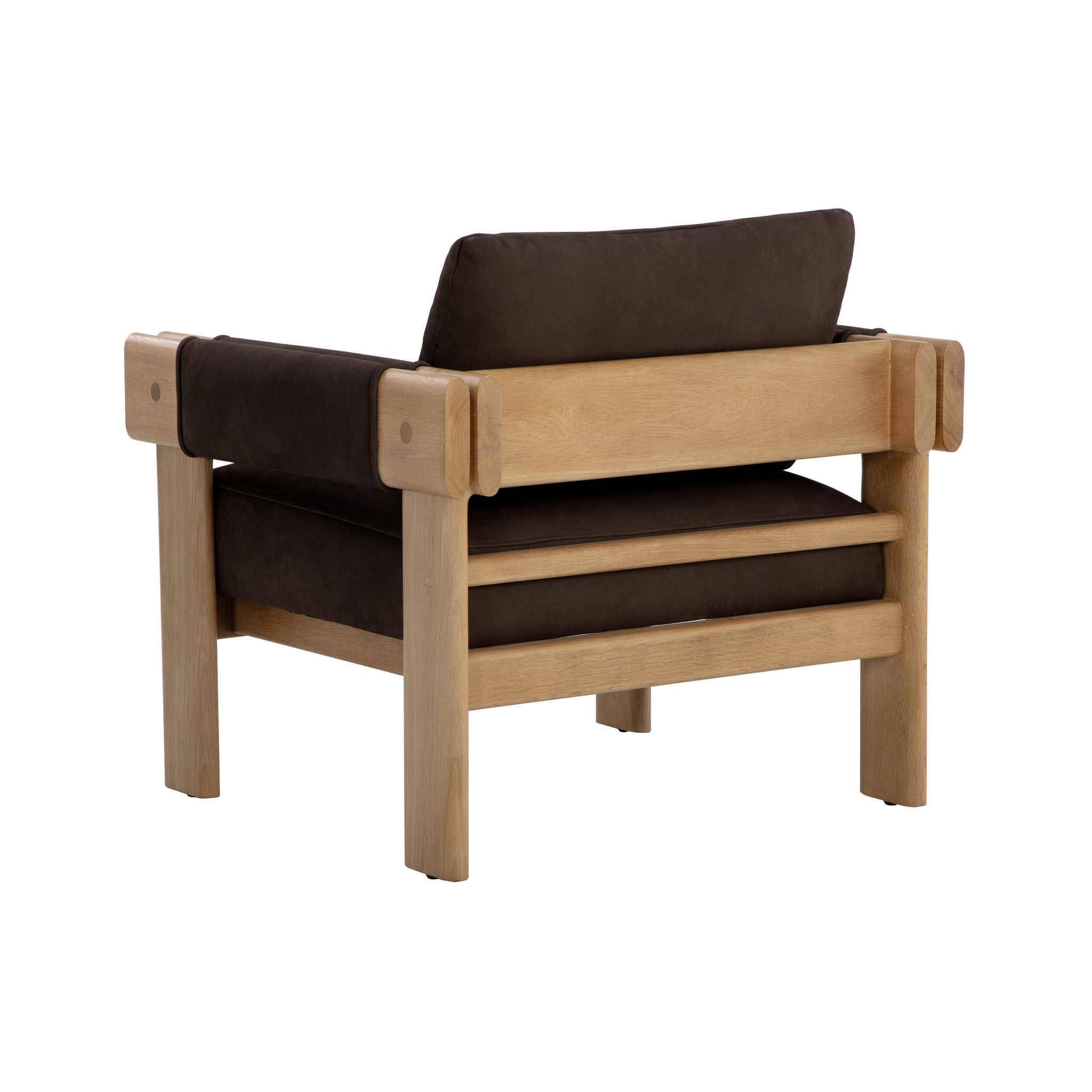 Crafted from natural materials, the Yahir Lounge Chair adds an inviting atmosphere to any room. The beautiful characteristics of rustic oak wood and leather are emphasized through the chair's double armrest design. As wood is an organic, porous material, these pieces will contain natural variation of texture and may also exhibit fine indentations and cracks. Wood pieces will also display a disparity of colour and grain, and visible knots and burls that add to the character of each piece. Handle with Care: This design has been crafted with 100% nubuck leather. Leather is a natural material; as such, colour variations, markings, wrinkles, grooves and light scratches are acceptable and appreciated characteristics. No two pieces are alike. Visit our Product Care page for more information on how to ensure the lasting beauty of this piece.