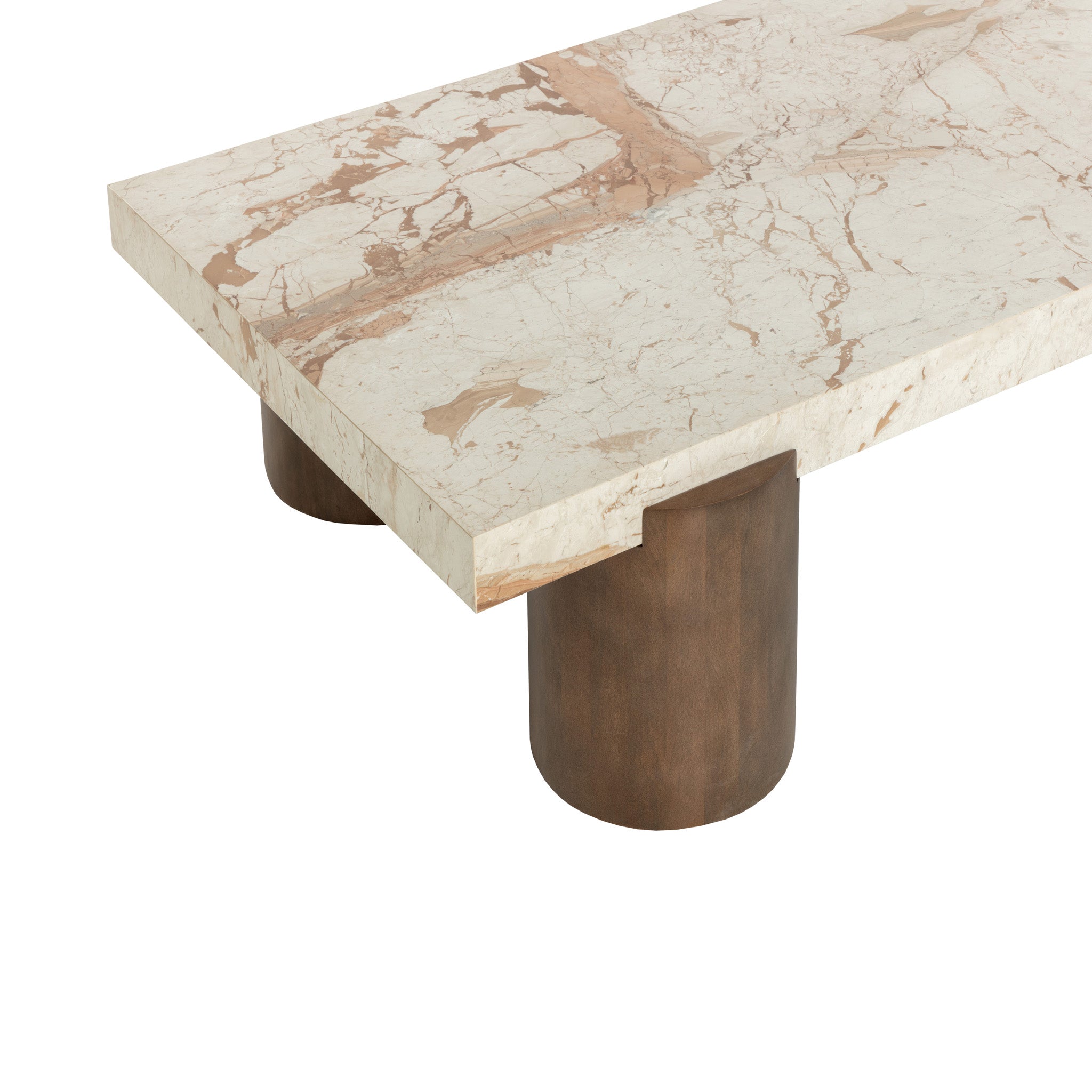 The Zorro Coffee Table takes elevated luxury to the next level with its stunning Italian crema breccia marble table top and solid mango wood legs. Uniquely elegant with endless visual appeal, this is a beautiful piece that can stand on its own or complement a variety of aesthetics.