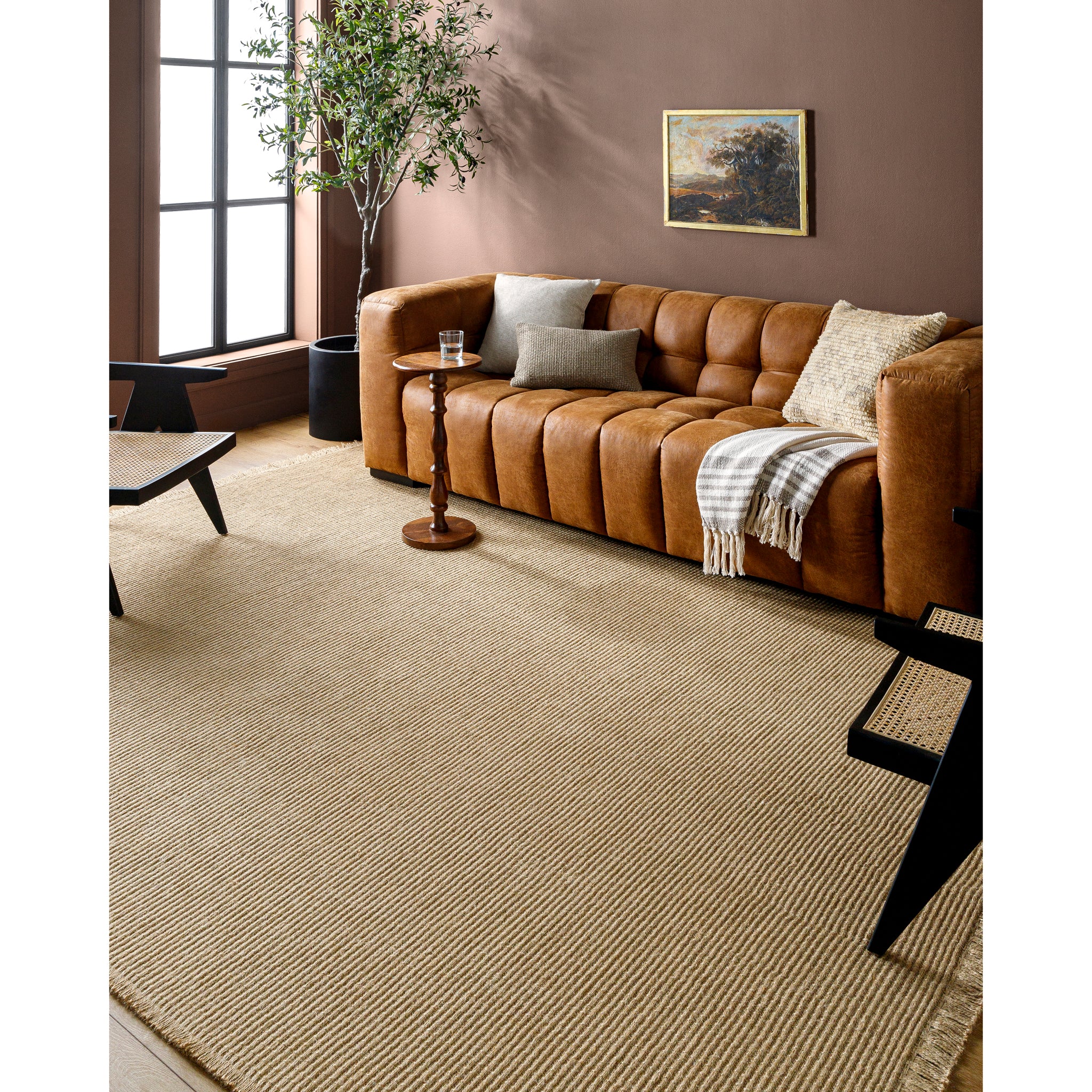 This Kimi area rug is the perfect addition to any space. The unique combination of jute and polypropylene materials create a soft texture that is sure to add style and warmth to your home. This beautiful piece features a fringe along the edge for added dimension. Hand-made in Turkey, this machine-woven rug will last for years with proper care and maintenance. For best results, it's recommended that you use it with a rug pad underneath. Spot clean with mild detergent as needed.