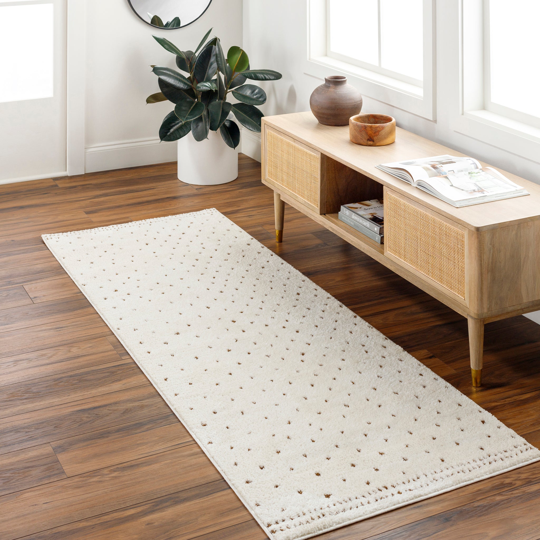 Transform your living space with the Fanny area rug. This unique rug is crafted from polyester and machine woven in Turkey. The high pile of this piece adds a luxurious feel, while its soft and comfortable texture provides an inviting atmosphere to any room. The Fanny area rug is designed for use with a rug pad (not included) to help keep it securely in place. For best results, spot clean with mild detergent when needed. Add a touch of timeless elegance to your home today with this beautiful style for any space!