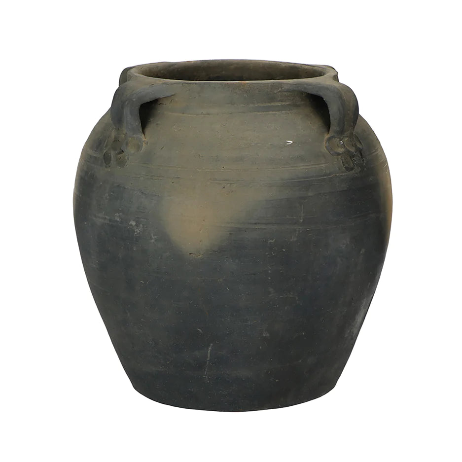 Derived from traditional methods of carrying water in China, this Vintage Terracotta Water Pot is an alluring decorative piece. Although now meant for decor, this design features four small looped handles originally used to carry by rope or by hand, as well as an imperfect façade that adds to its unique appeal. It's the perfect statement piece to elevate any space. Size and condition vary.