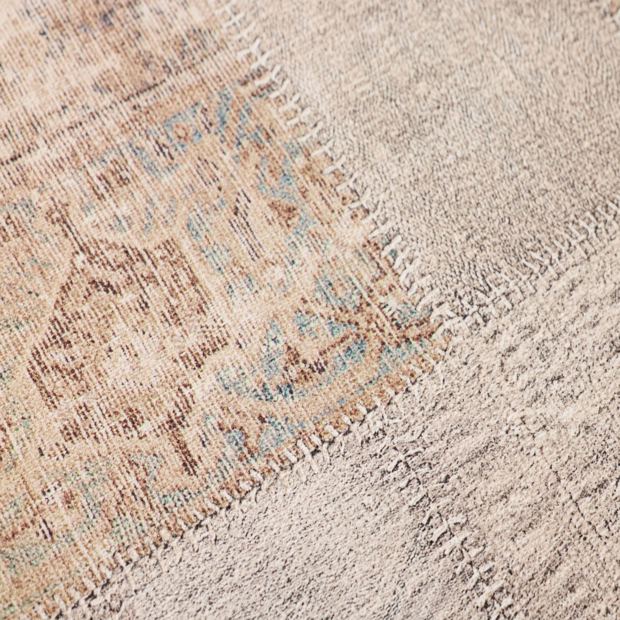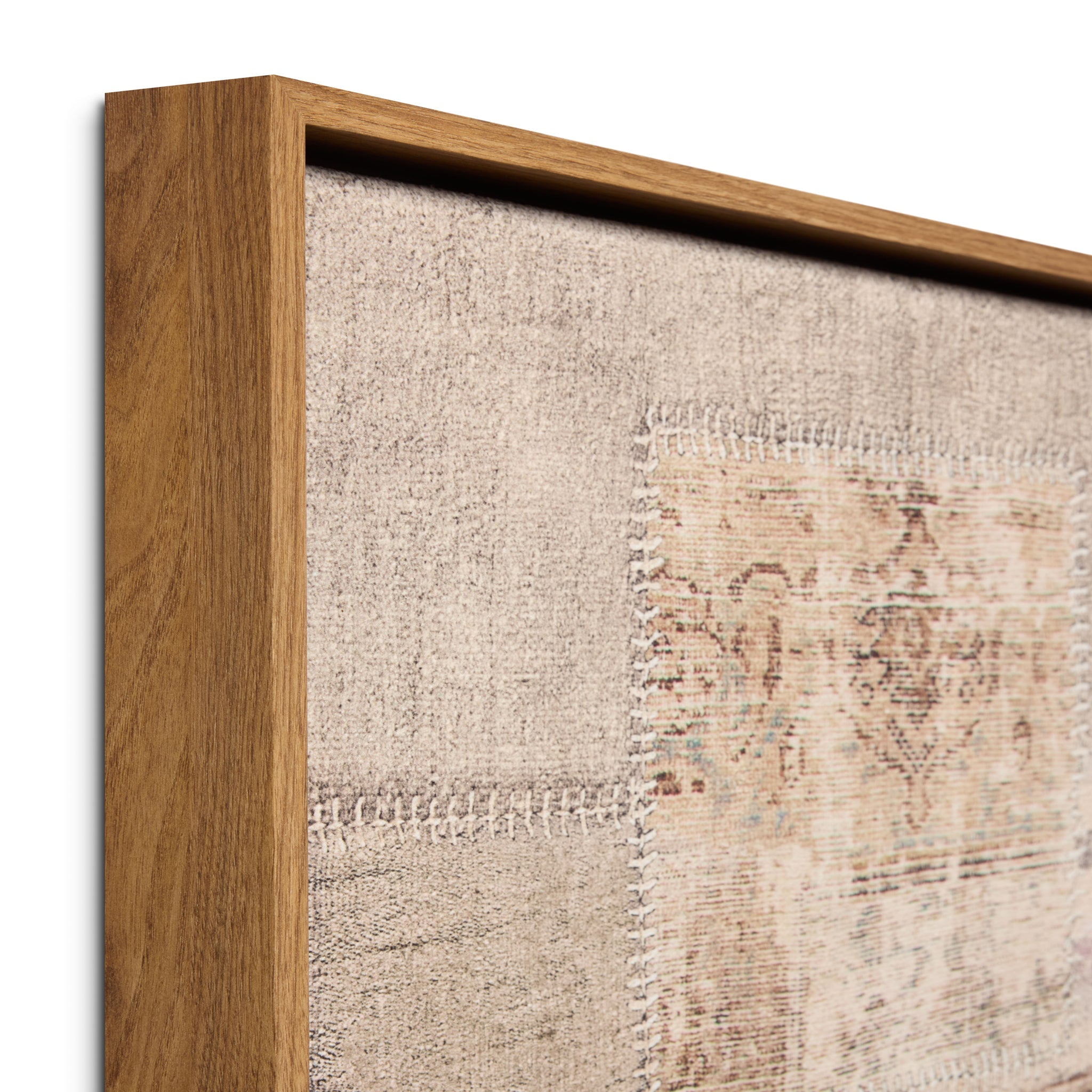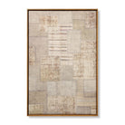 Lompoc is large wall art by Amber Lewis x Loloi with a patchwork design made up of stitched vintage-inspired textiles. The light beige artwork is made in India and custom-framed by Loloi in the USA
