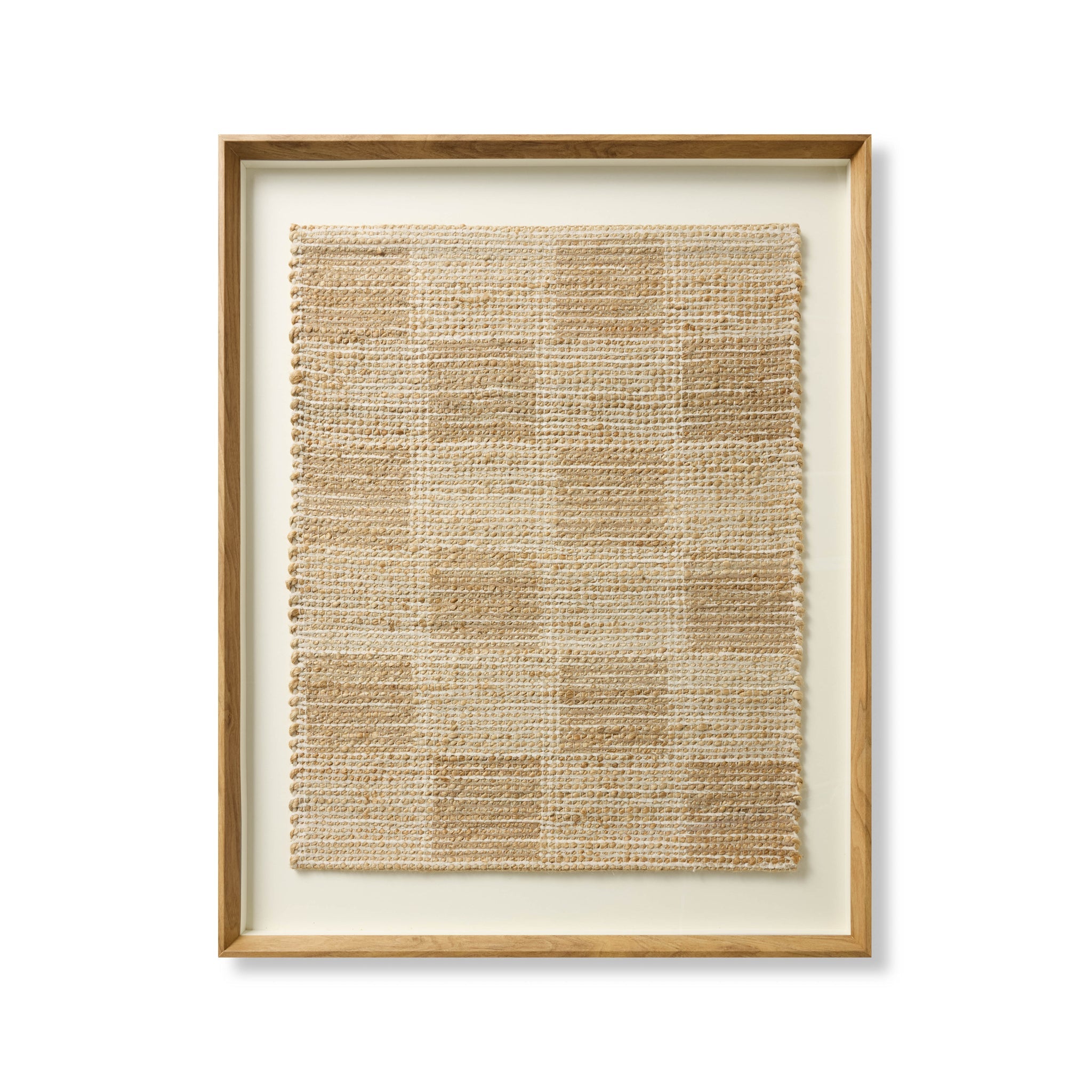 Sant Ynez is large wall art by Amber Lewis x Loloi featuring a natural jute textile with a sand-toned checkerboard pattern, a beautiful accent for organic-modern home decor. The artwork is made in India and custom-framed by Loloi in the USA