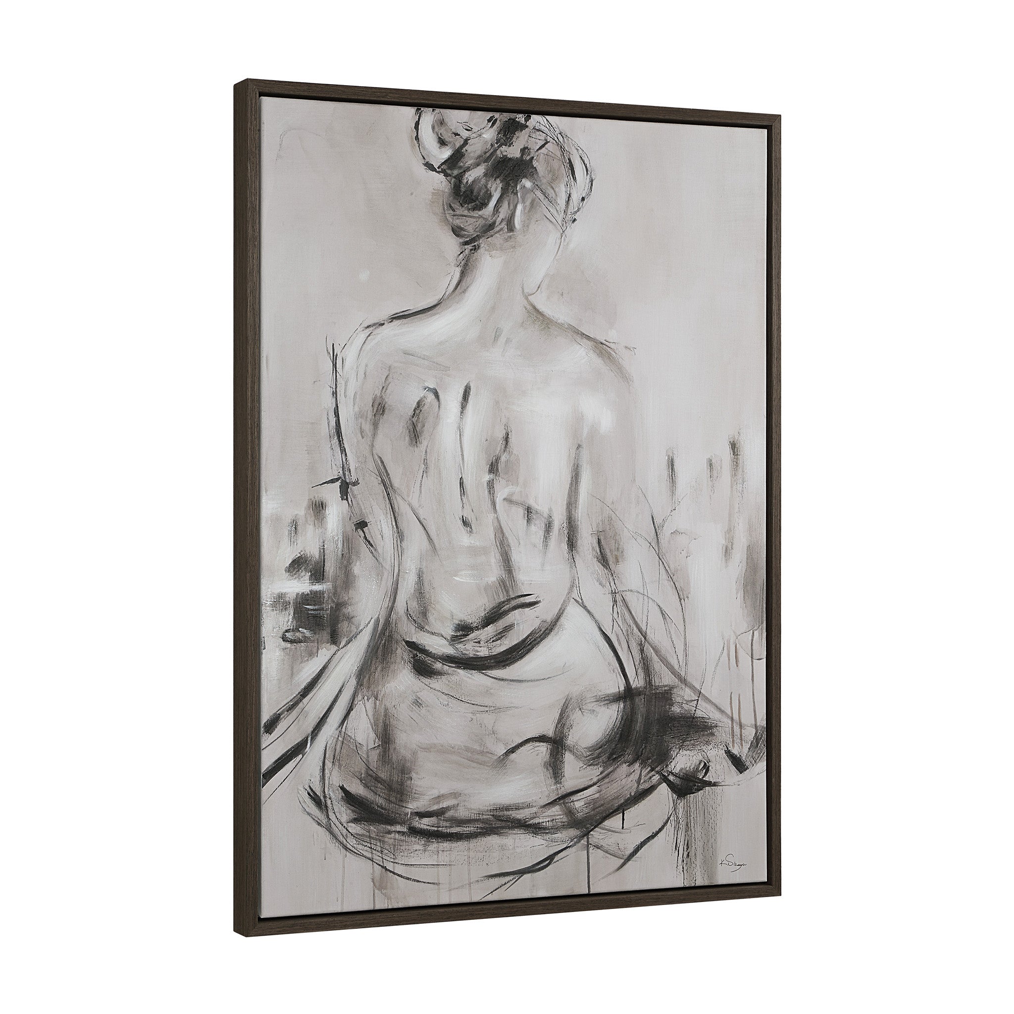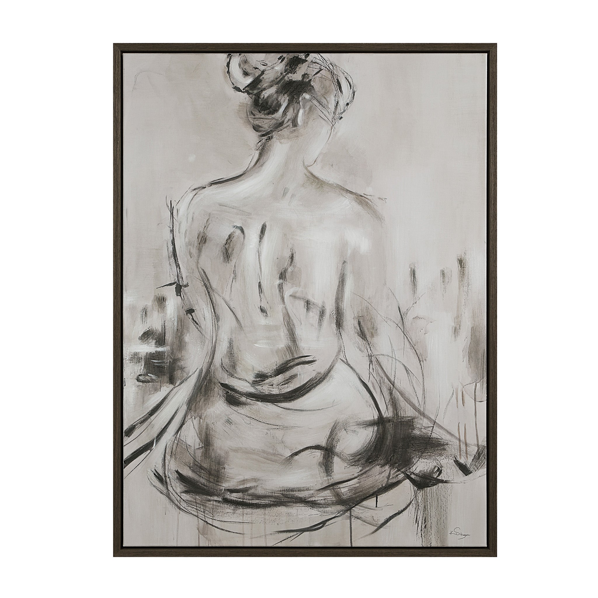 Add a romantic touch to any interior with this hand-painted canvas art. Its leading lady is a vision in free-form brushstrokes that come together to tell a sophisticated story. Mounted with a floating effect inside a beautiful dark brown frame, this abstract portrait will ground your transitional or contemporary space in style.