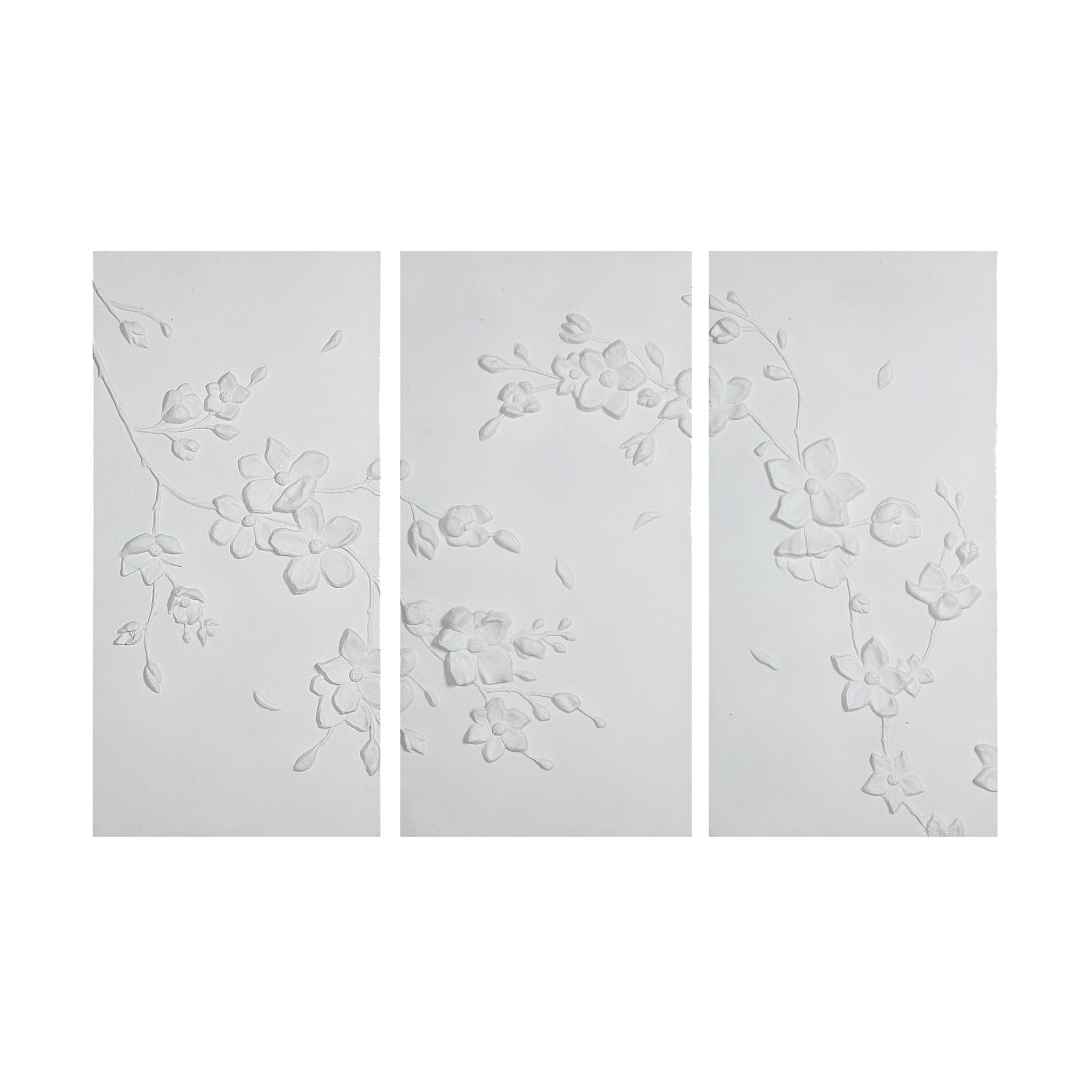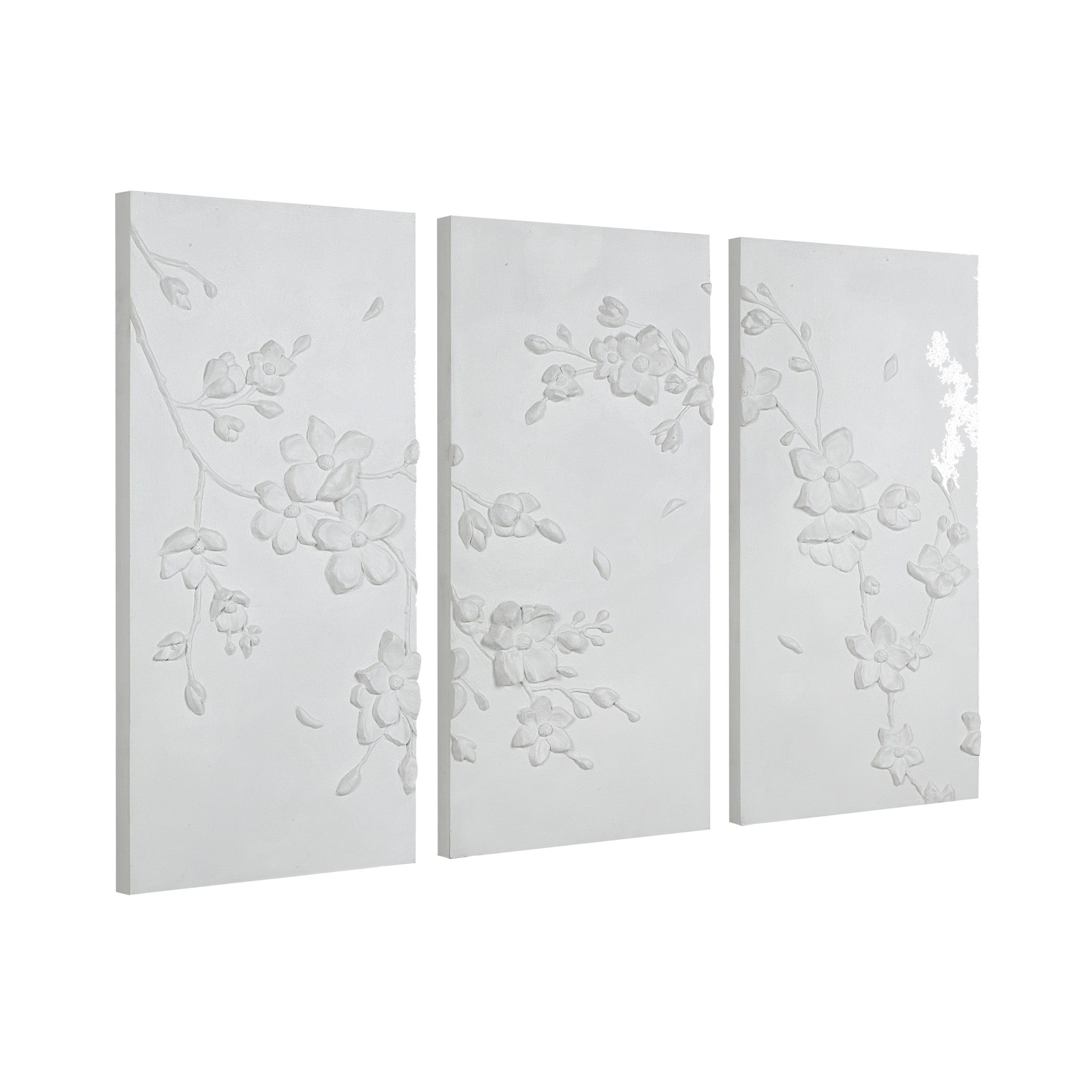 Spanning nearly 5 feet, this bloom-filled wall art is just the piece you need to add beautiful botanical style to a large wall. Composed of three high-quality canvases, this unique triptych features an array of hand-painted multidimensional shapes for a dramatic effect that delivers a transitional touch to any interior.