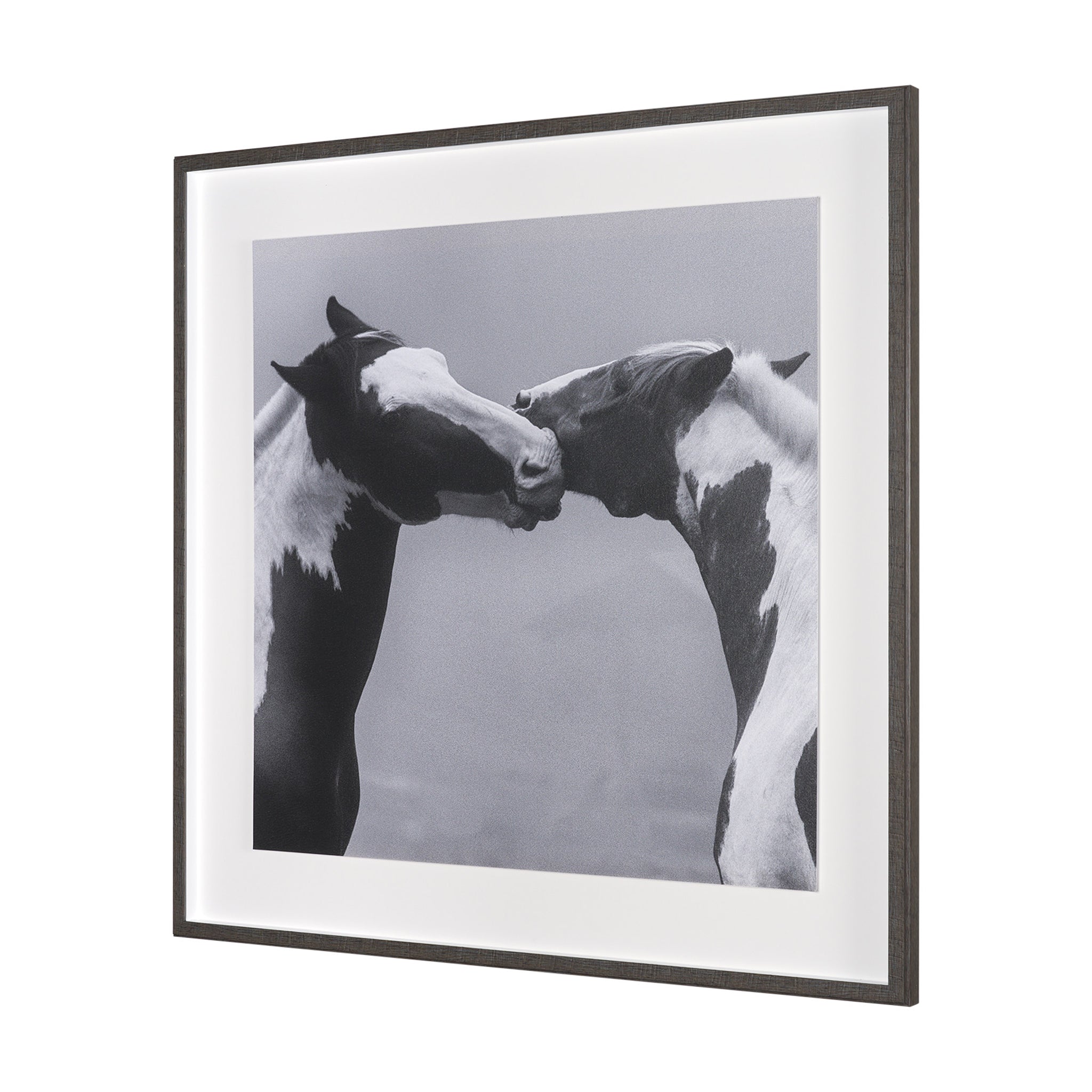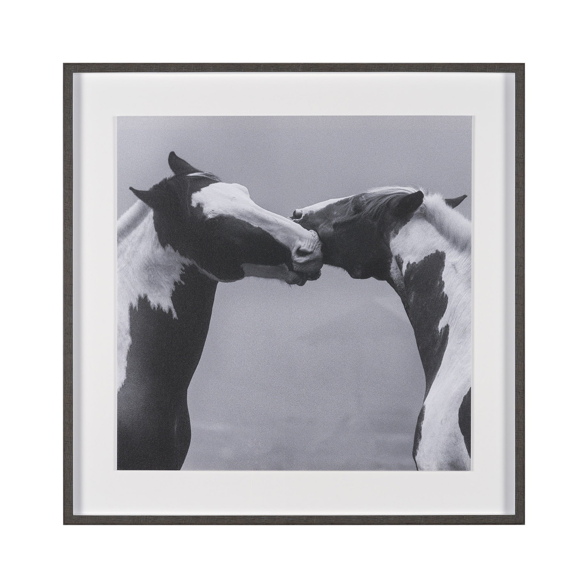 Capture the profound tenderness of nature with this striking framed artwork. Rendered in timeless black and white, it beautifully portrays two horses in an intimate moment, their heads gently touching in a gesture of deep connection. This soulful piece brings a sense of calm, grace, and natural beauty, perfect for adding a heartwarming focal point to any living space or bedroom