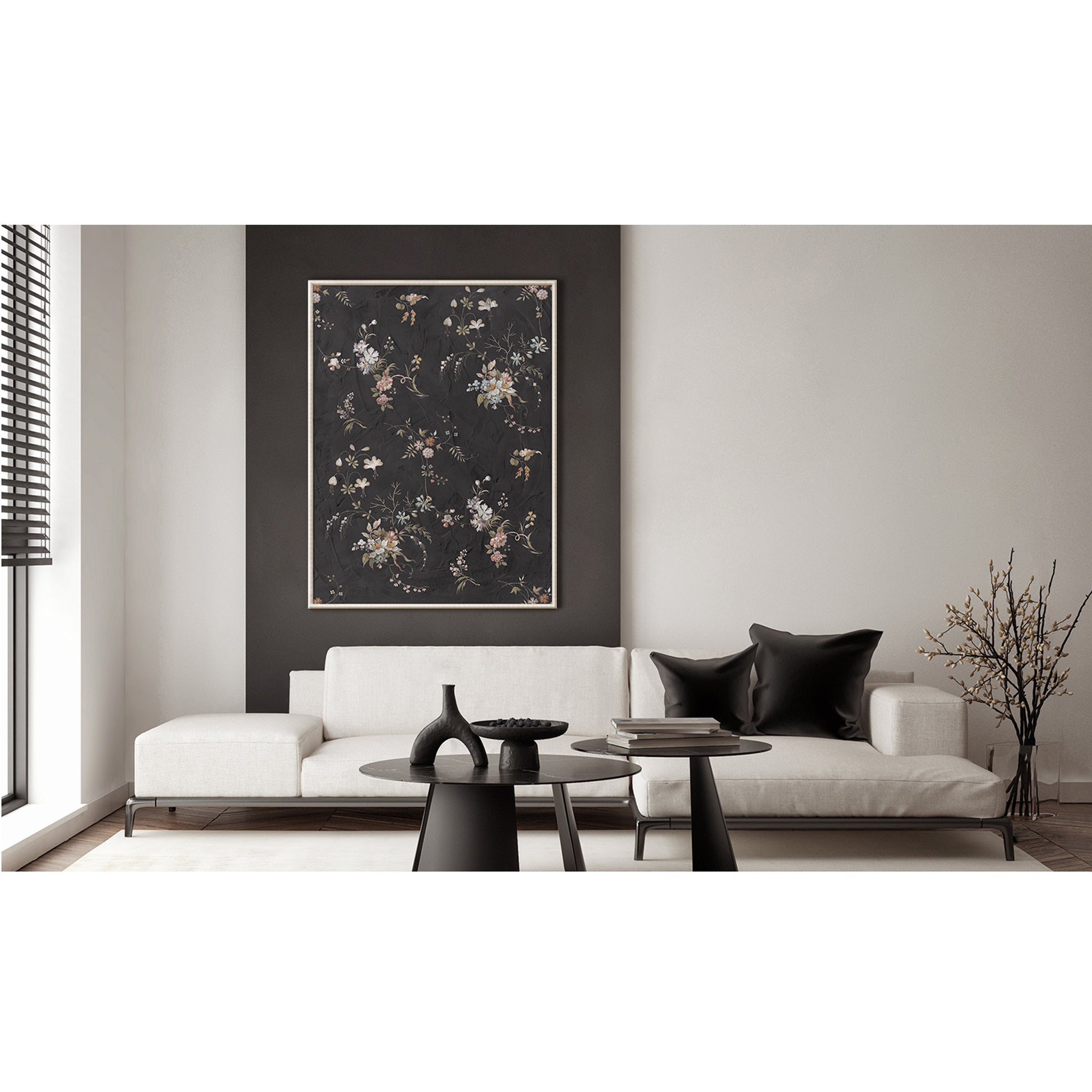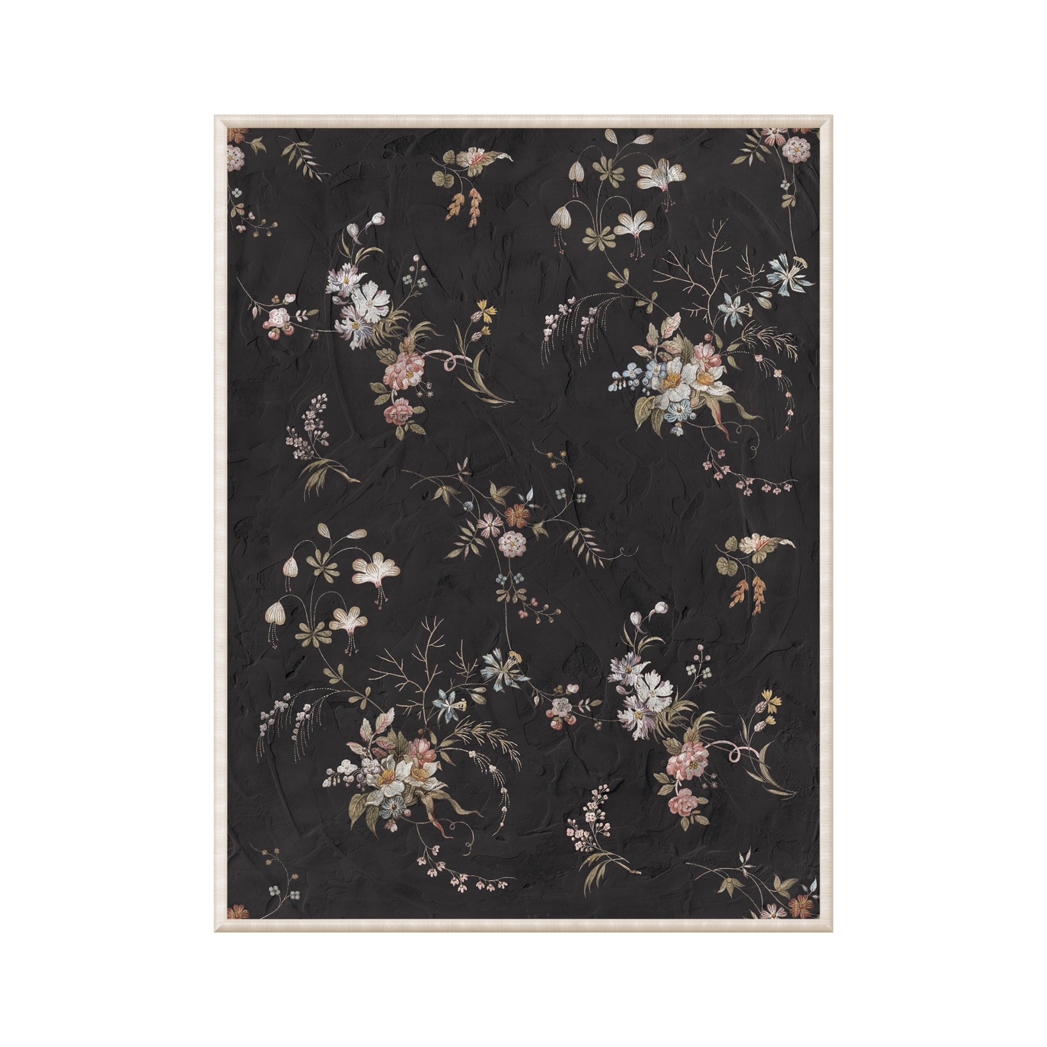 An intricate floral design gracefully winds across a rich, textured ground, evoking the charm of classic wallpaper artistry. The delicate details and flowing patterns create a sense of depth and movement, inviting closer admiration.