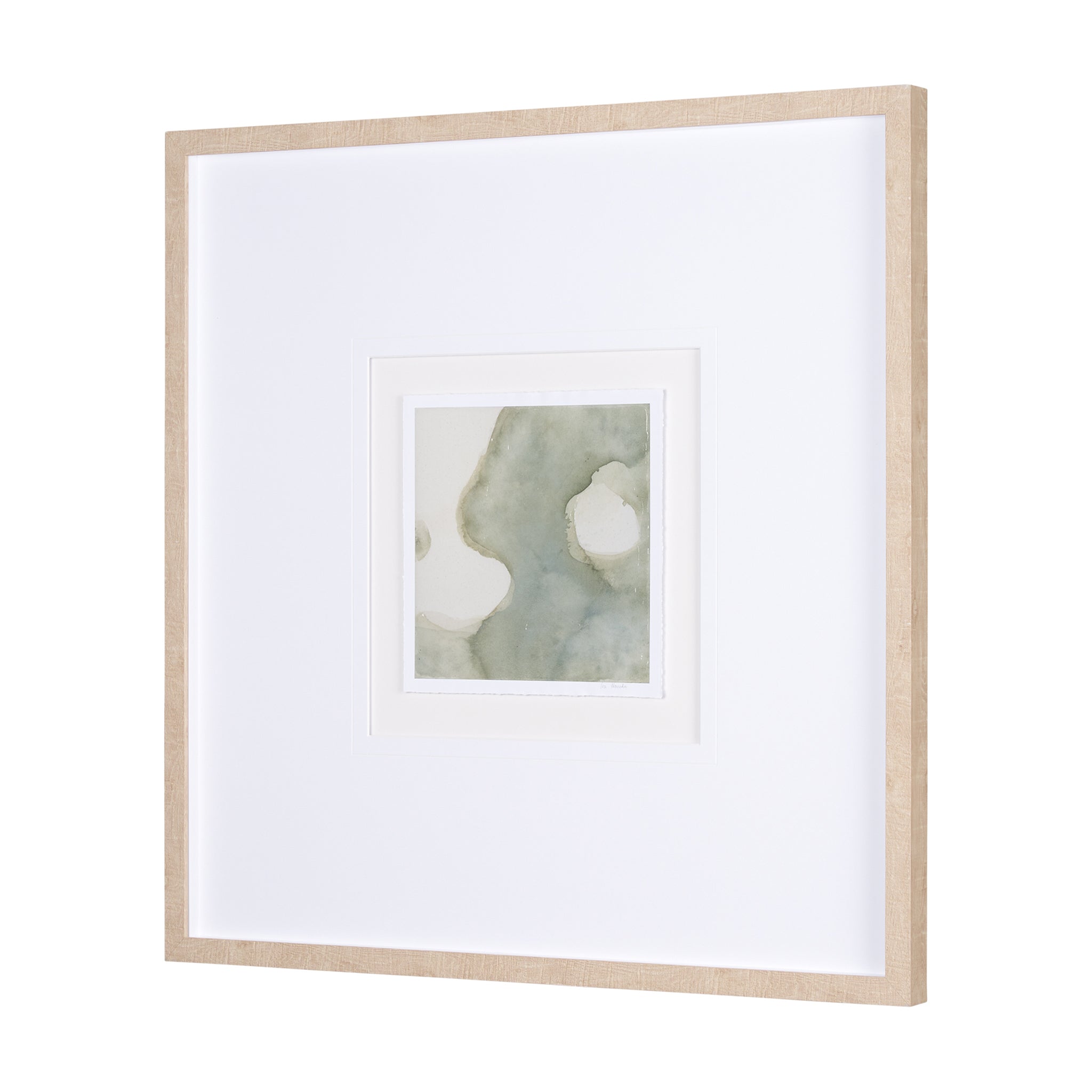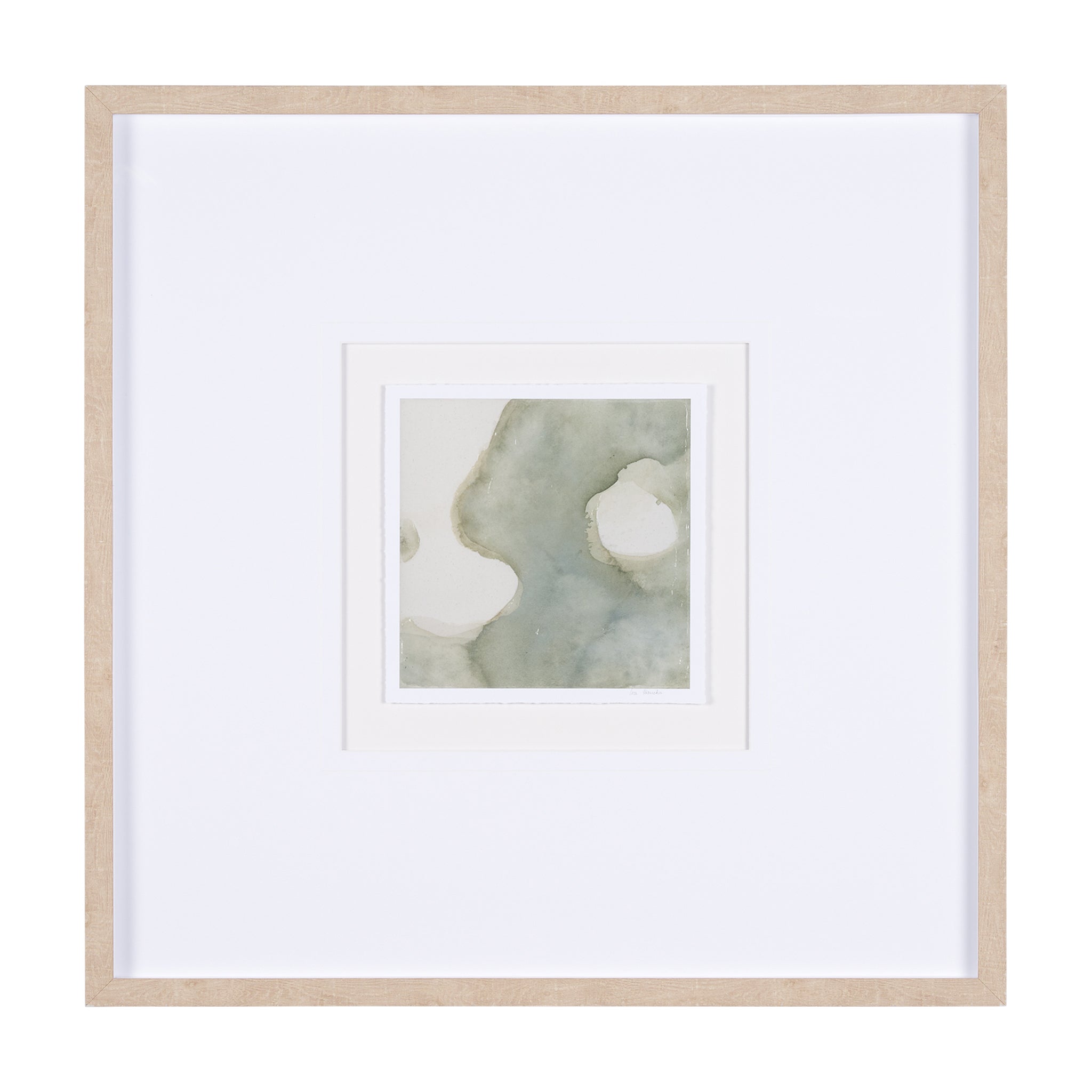 Bring a touch of serene simplicity to your space with this captivating framed abstract artwork. Soft, fluid washes of muted greens, greys, and creamy whites create harmonious, organic forms that evoke a sense of quietude and natural balance. Expertly matted and framed, this piece offers an understated elegance, perfect for adding a contemplative and sophisticated accent to any minimalist or contemporary interior