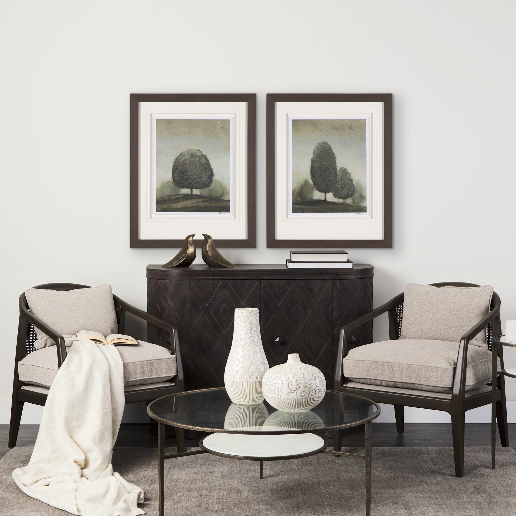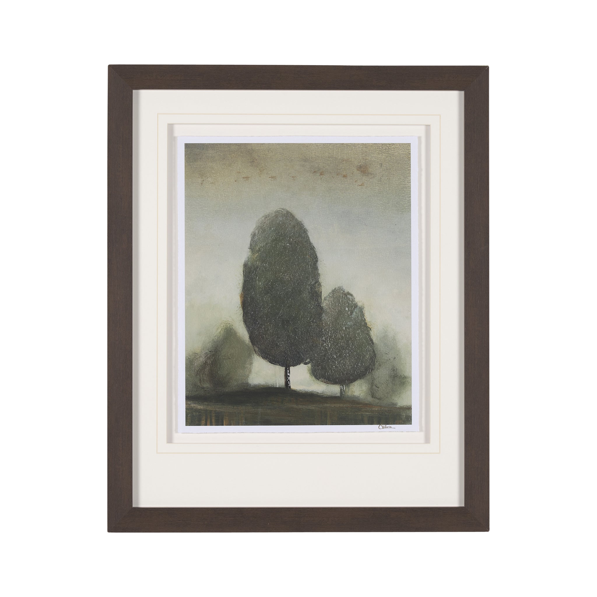 Bring a sense of peaceful contemplation to your space with this serene framed artwork. A solitary, rounded tree stands majestically in a minimalist landscape, rendered in a calming palette of muted greens, greys, and earthy browns beneath an atmospheric sky. This understated piece creates a tranquil focal point, perfect for modern interiors seeking a touch of natural harmony and quiet reflection.