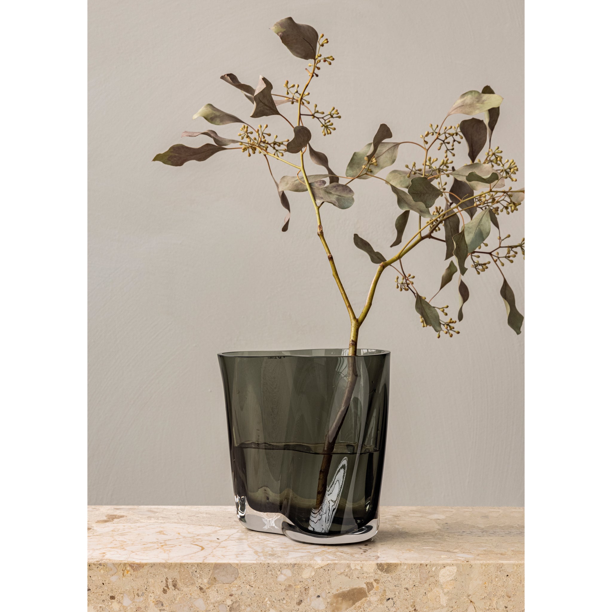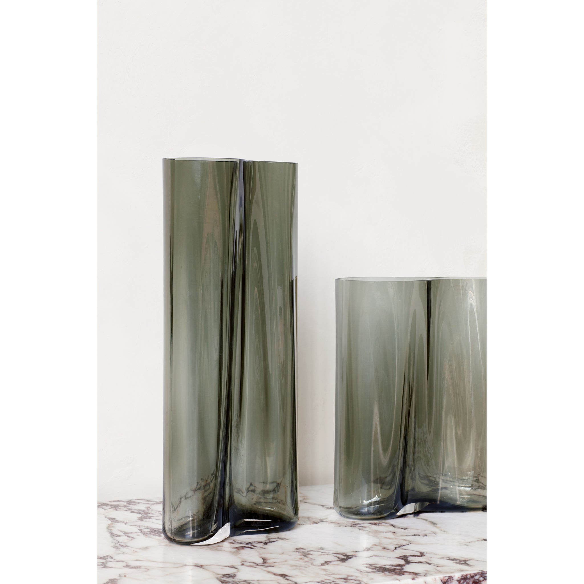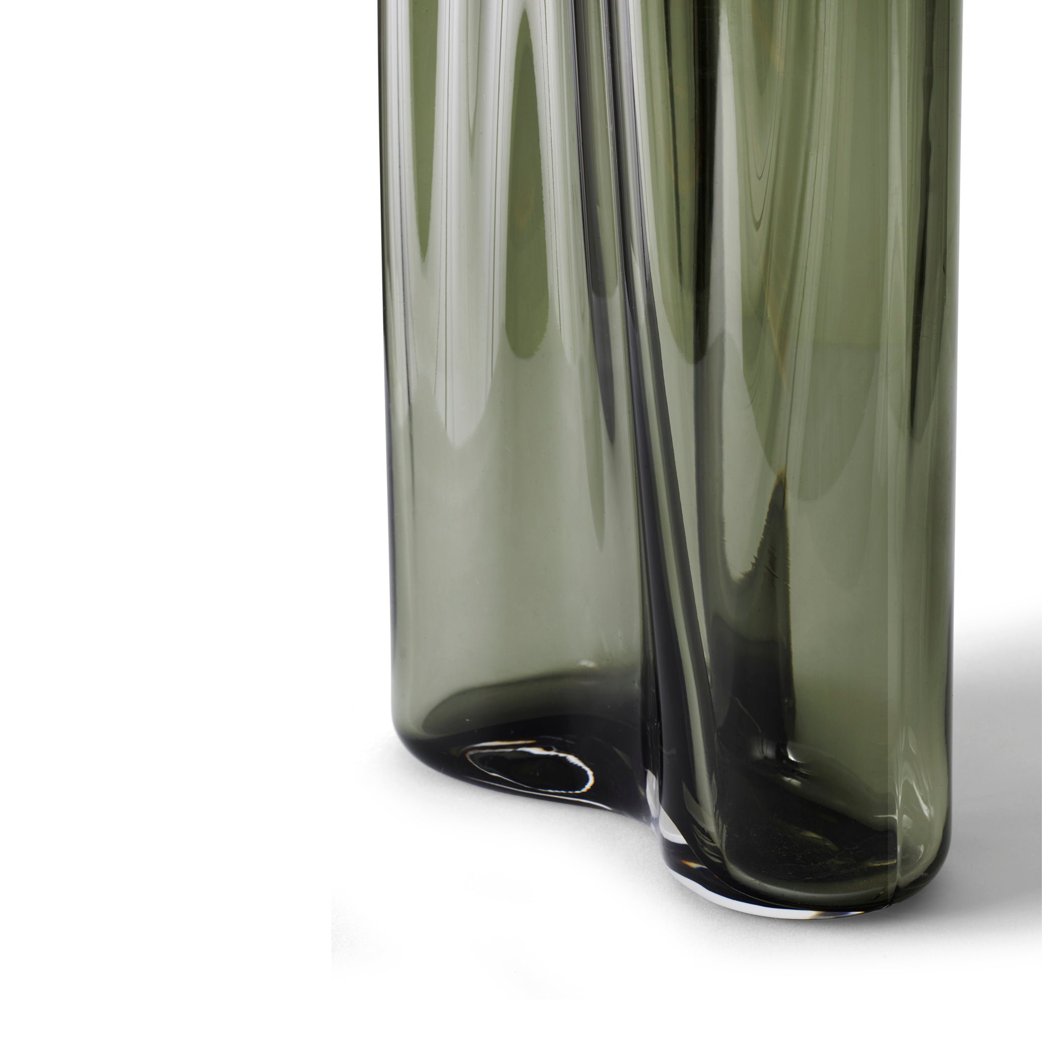 Designer Gabriel Tan's appreciation of simplicity, sculptural beauty and functionality come together in the Aer Collection. The rippled, asymmetrical silhouette of the Aer Vase is perfect for admiring from afar and exploring up close. Undulating in liquid-like waves, it was designed to resemble the spiralling movement of air seen through smoke or mist. Tapering gently to its base, the smoke-coloured glass has a tactile, almost ethereal quality, gently embracing a bouquet or adding sculptural appeal to a space as a standalone object. Each mouth-blown vase displays different visual characteristics that reflect its uniqueness.
