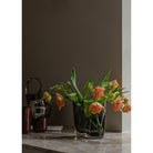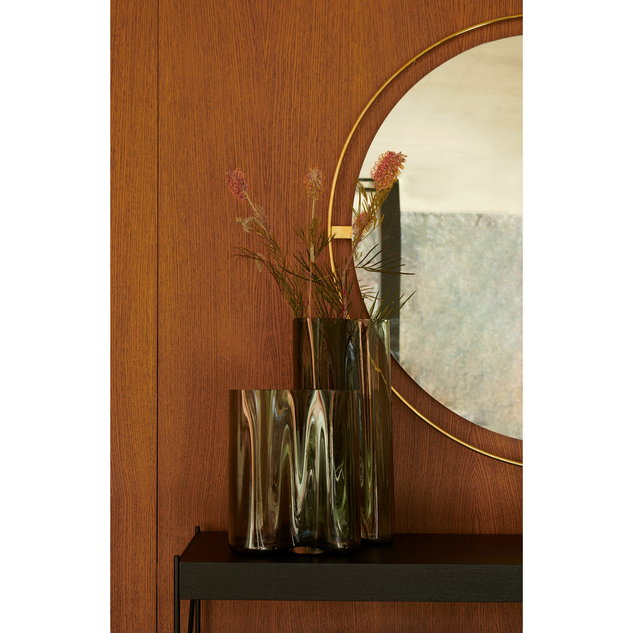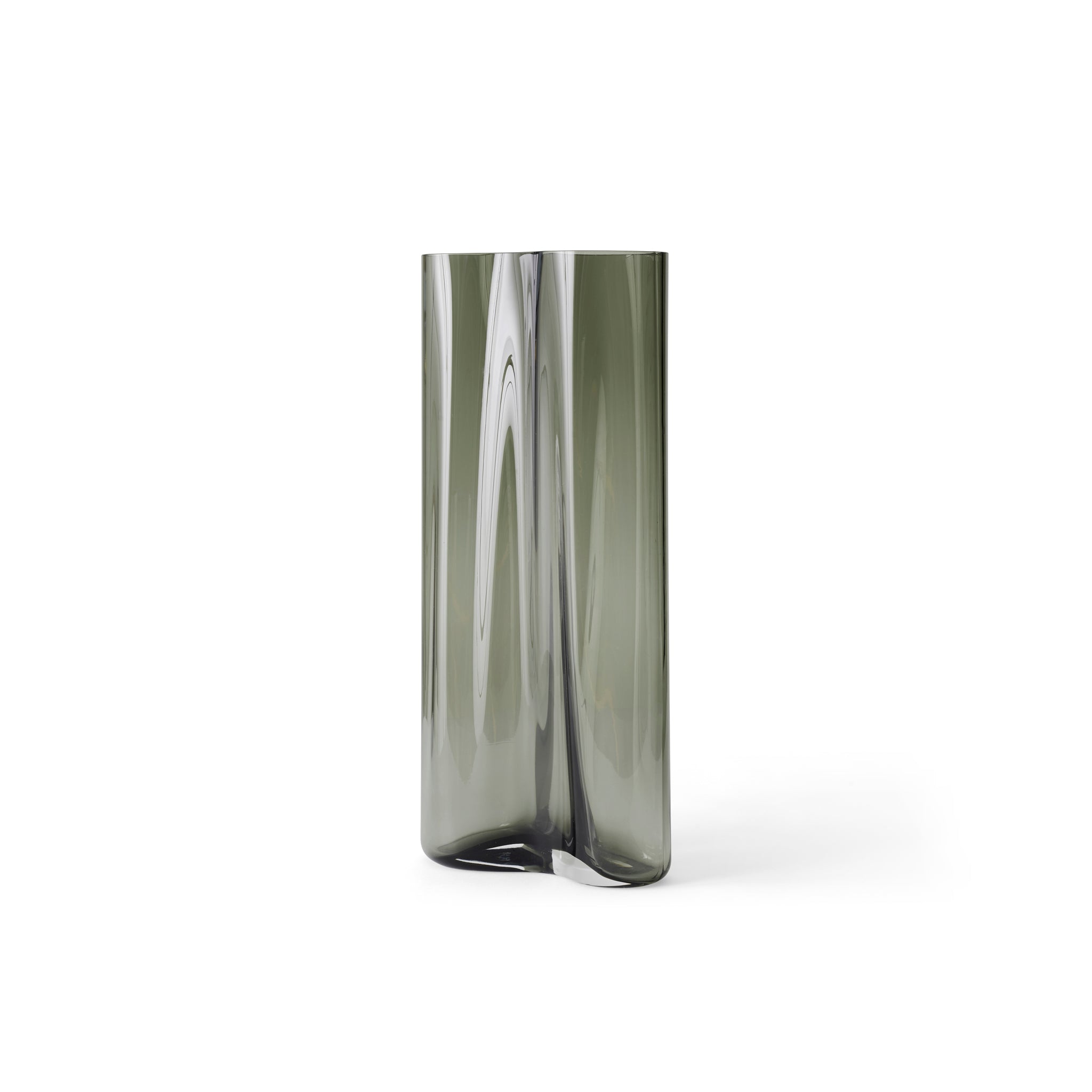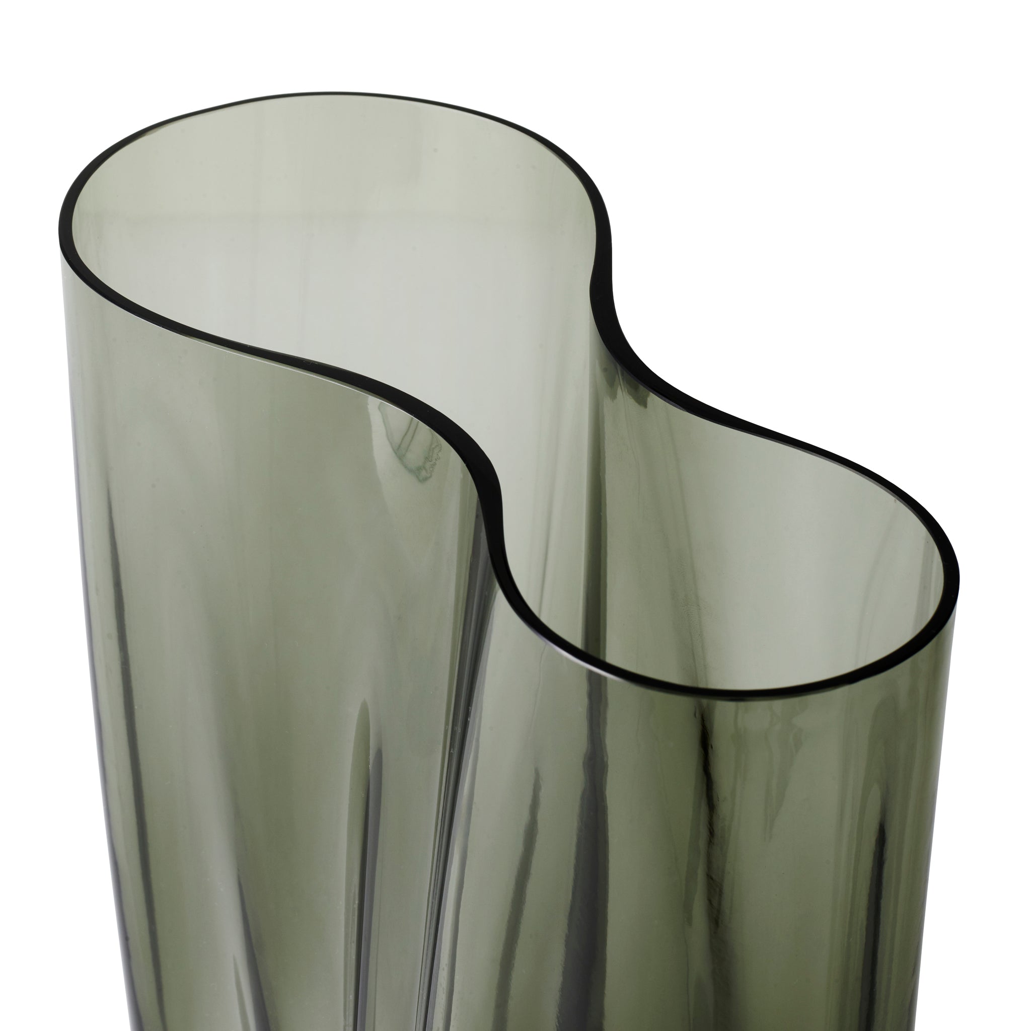Designer Gabriel Tan's appreciation of simplicity, sculptural beauty and functionality come together in the Aer Collection. The rippled, asymmetrical silhouette of the Aer Vase is perfect for admiring from afar and exploring up close. Undulating in liquid-like waves, it was designed to resemble the spiralling movement of air seen through smoke or mist. Tapering gently to its base, the smoke-coloured glass has a tactile, almost ethereal quality, gently embracing a bouquet or adding sculptural appeal to a space as a standalone object. Each mouth-blown vase displays different visual characteristics that reflect its uniqueness.