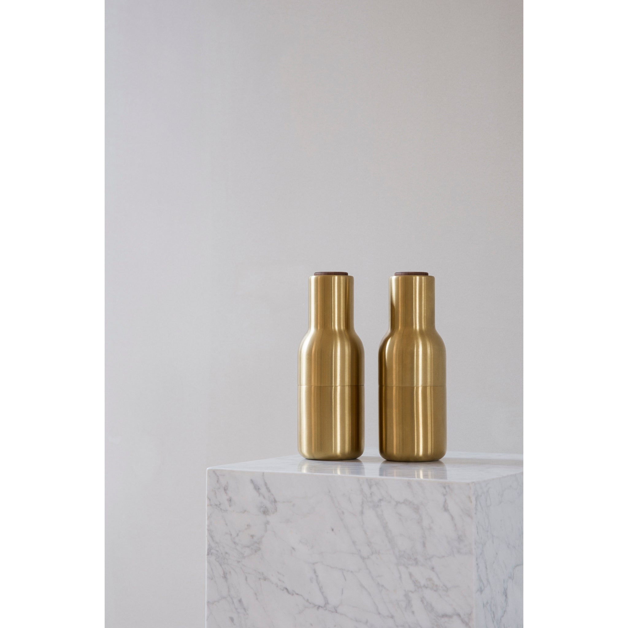 Bottle Grinder in Brushed Brass/Walnut by Norm Architects for Audo Copenhagen