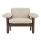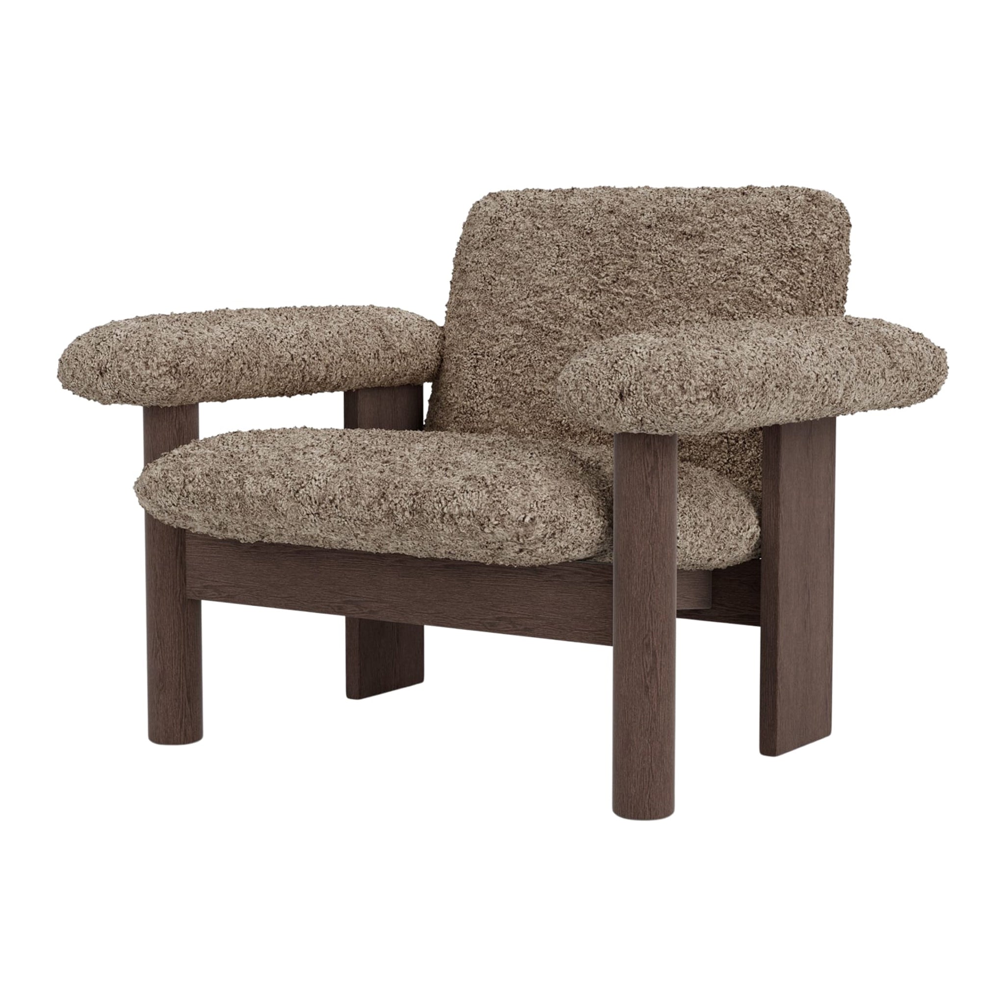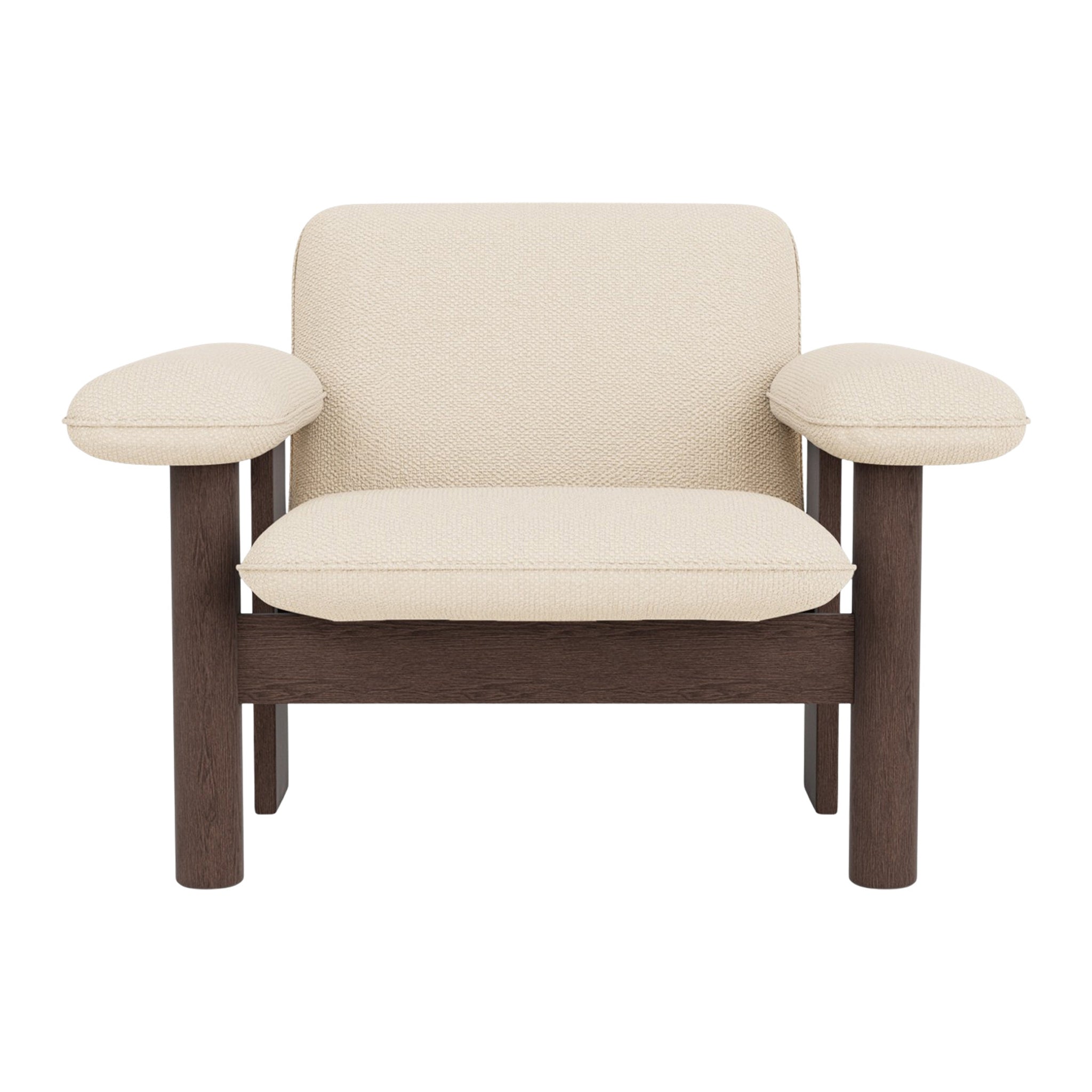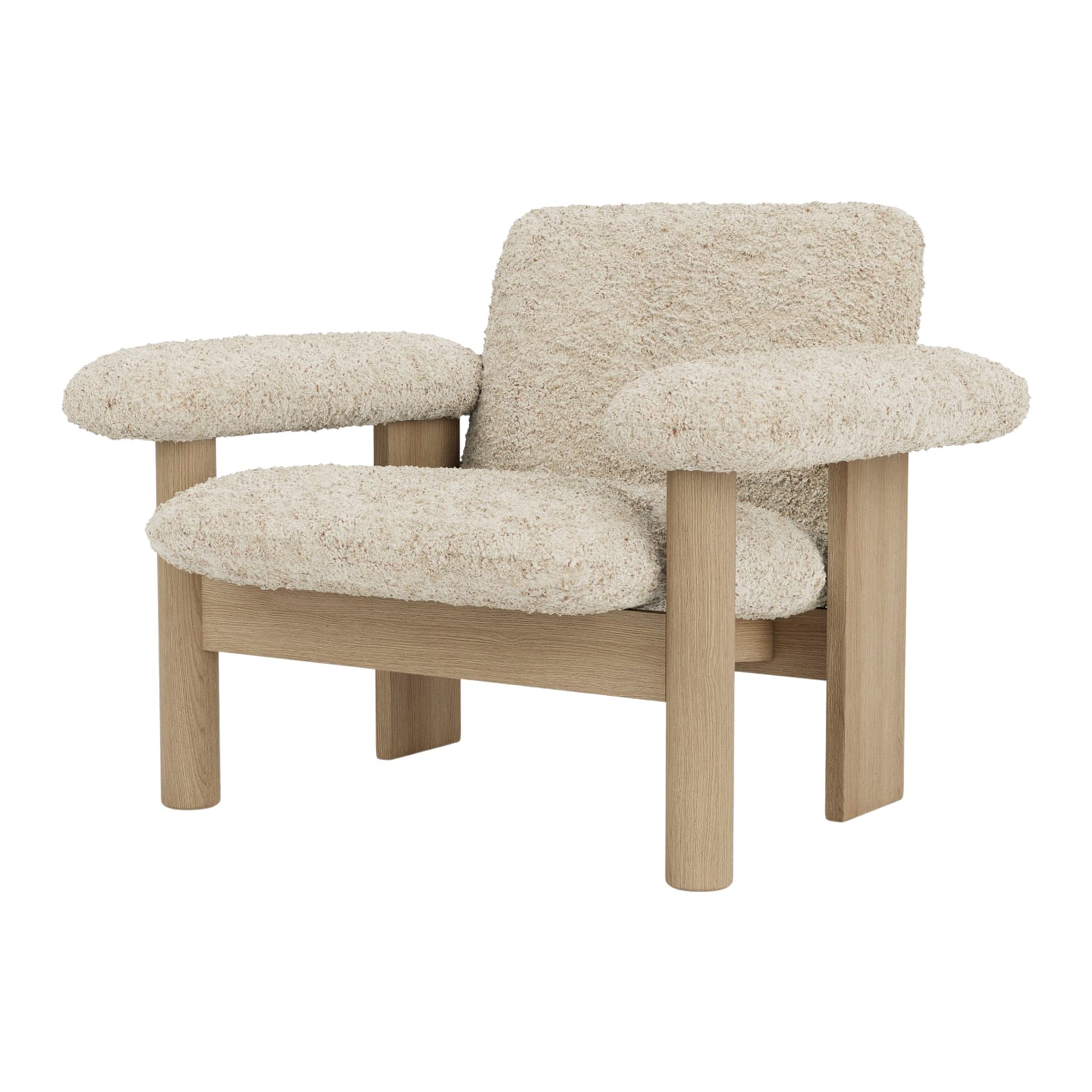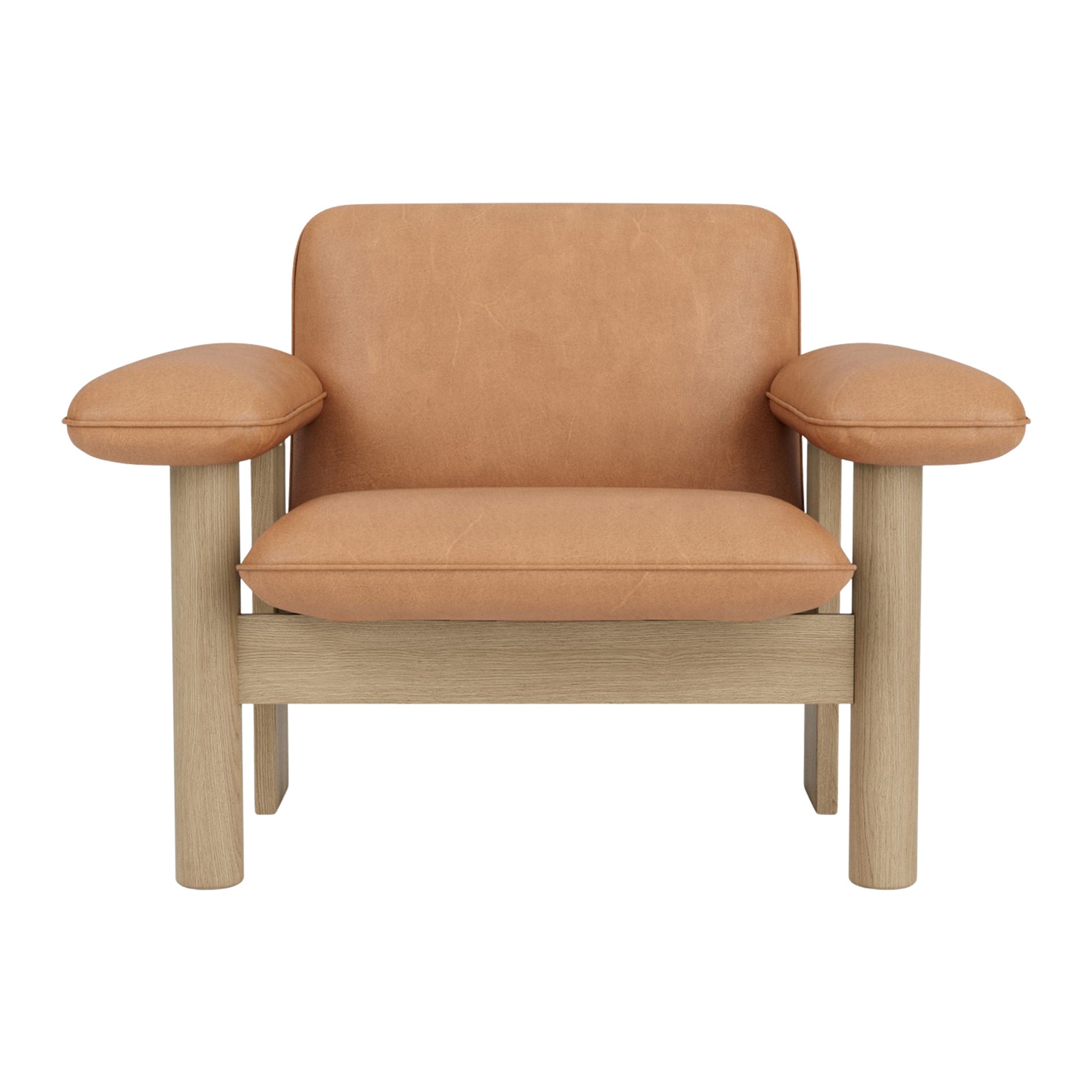 The low profile and enveloping embrace of the Brasilia Lounge Chair invites relaxation. Angled to enhance sitting, this lower version of the original Brasilia chair design rests on the collection's characteristic solid wood frame that features rounded front legs, exaggerated armrests and textile or leather upholstery for a cosy and comfortable experience. At once iconic and modern in its expression, it takes its design cues from Scandinavian mid-century aesthetics and Brazilian modernism.