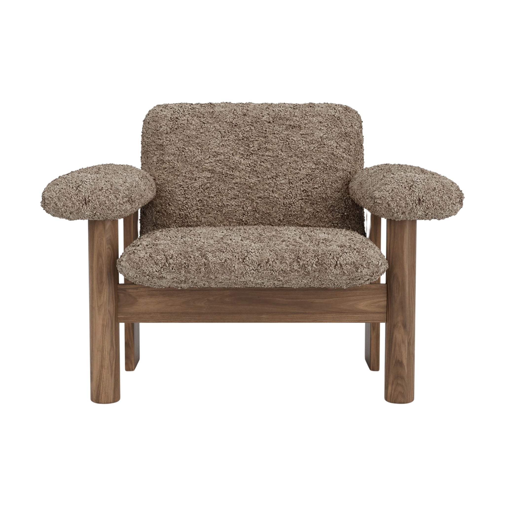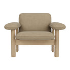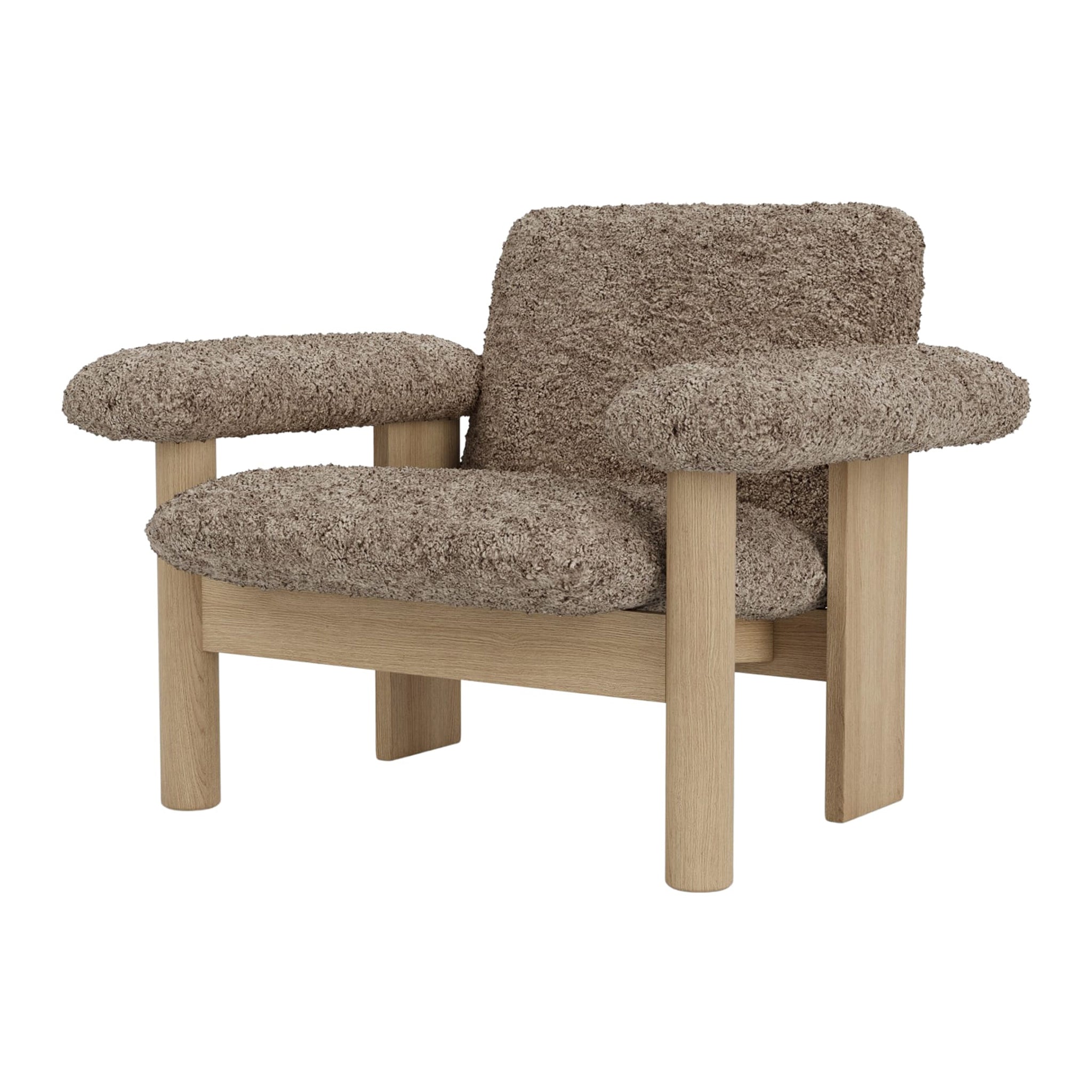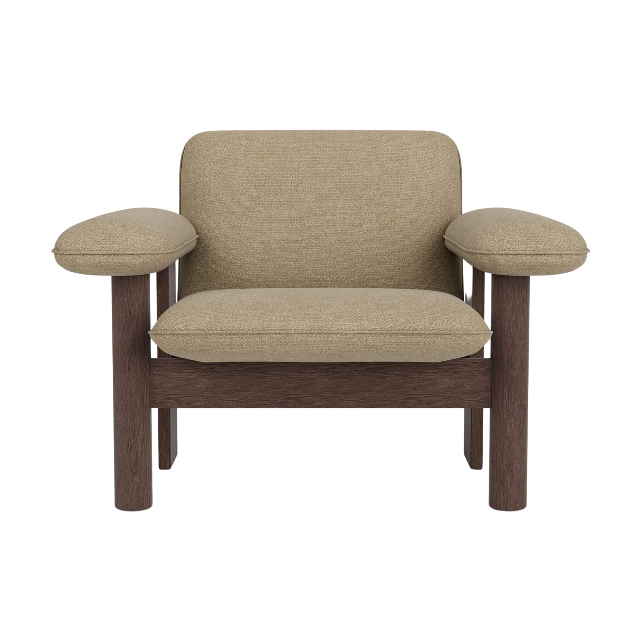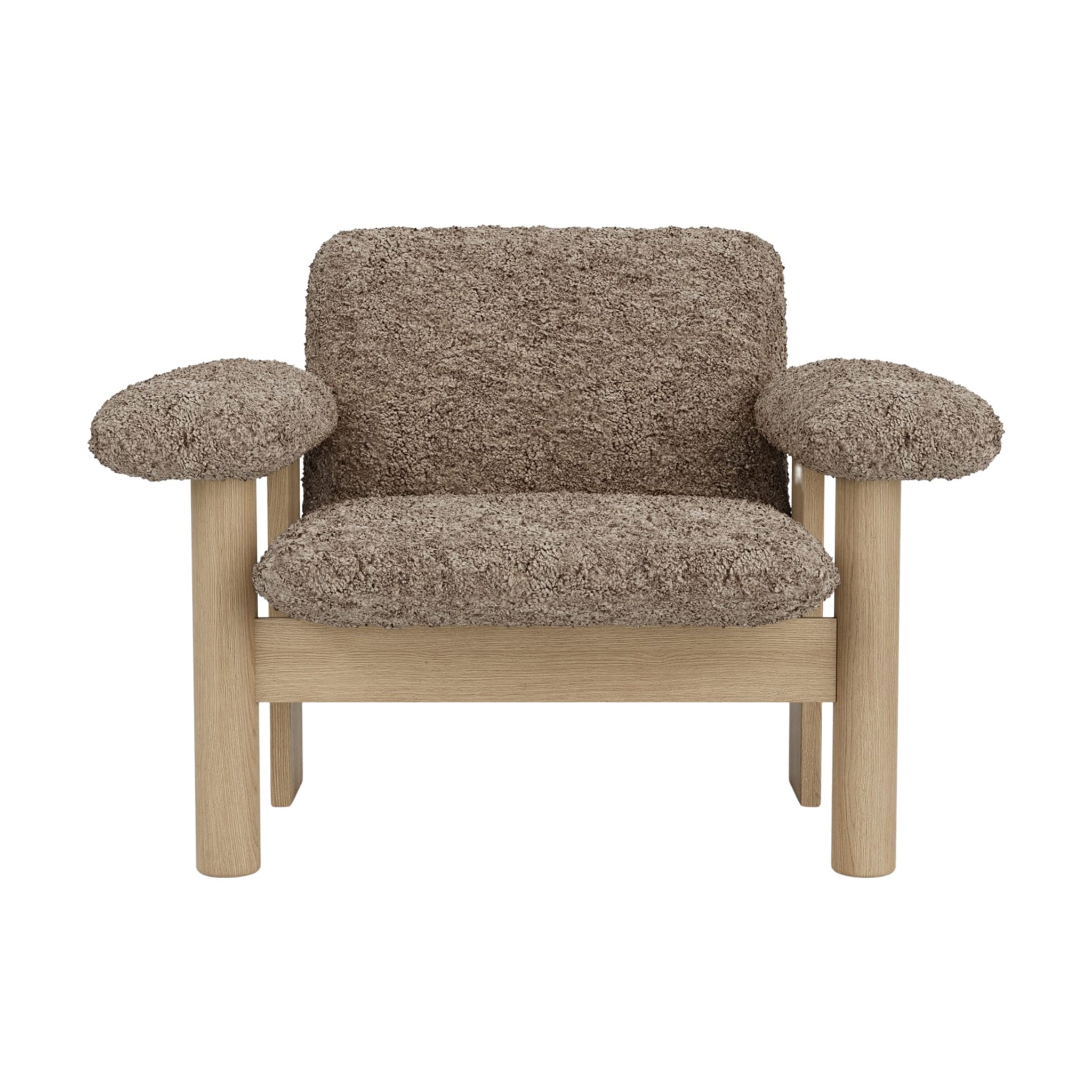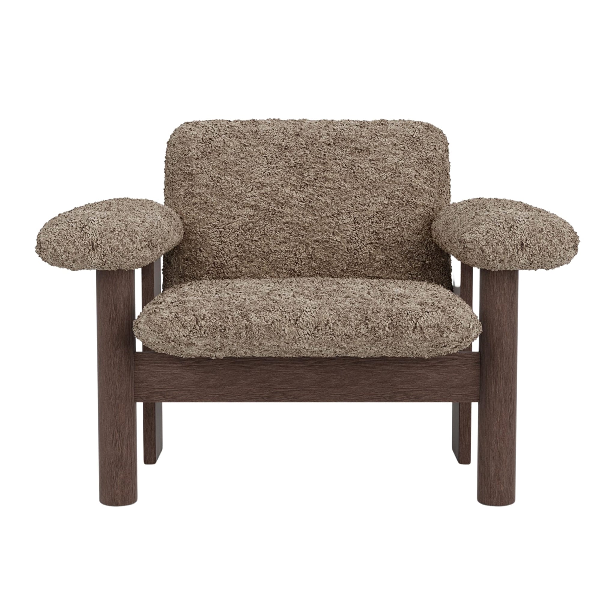 The low profile and enveloping embrace of the Brasilia Lounge Chair invites relaxation. Angled to enhance sitting, this lower version of the original Brasilia chair design rests on the collection's characteristic solid wood frame that features rounded front legs, exaggerated armrests and textile or leather upholstery for a cosy and comfortable experience. At once iconic and modern in its expression, it takes its design cues from Scandinavian mid-century aesthetics and Brazilian modernism.