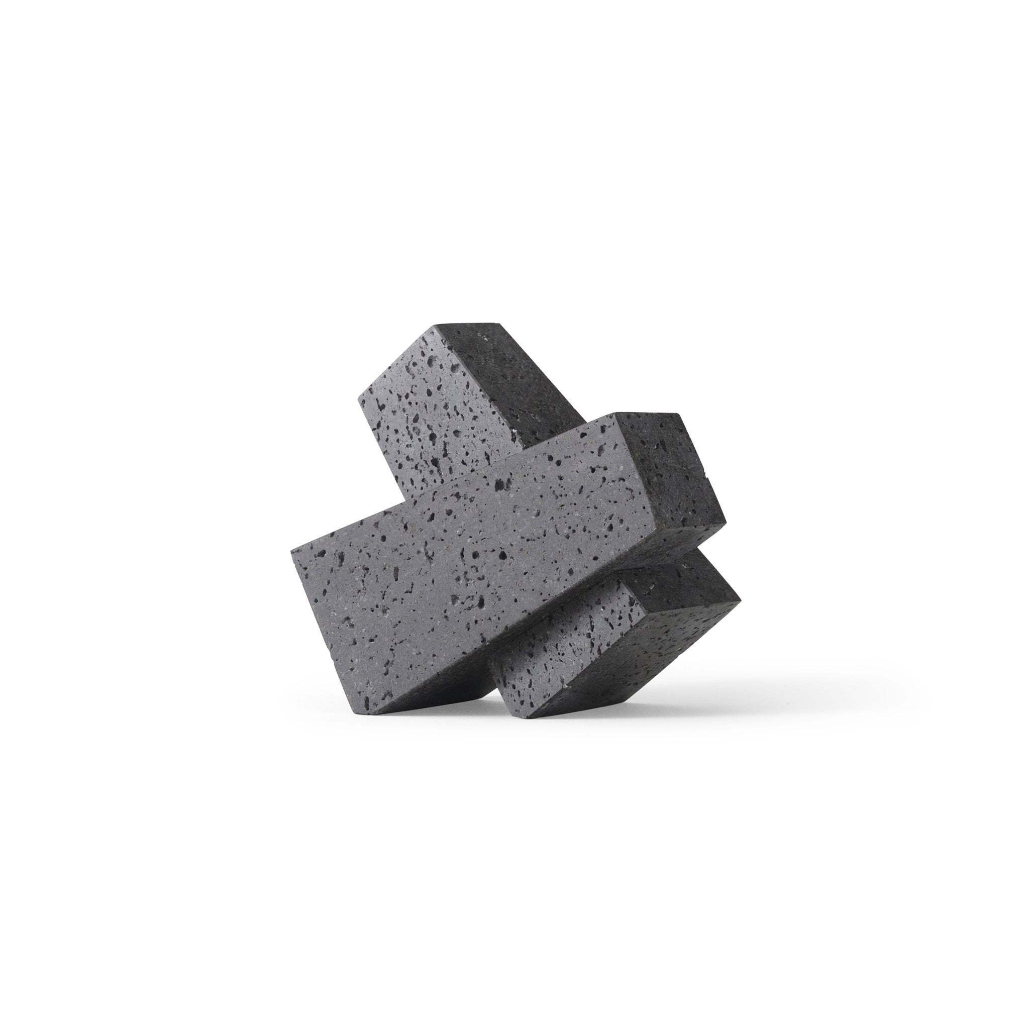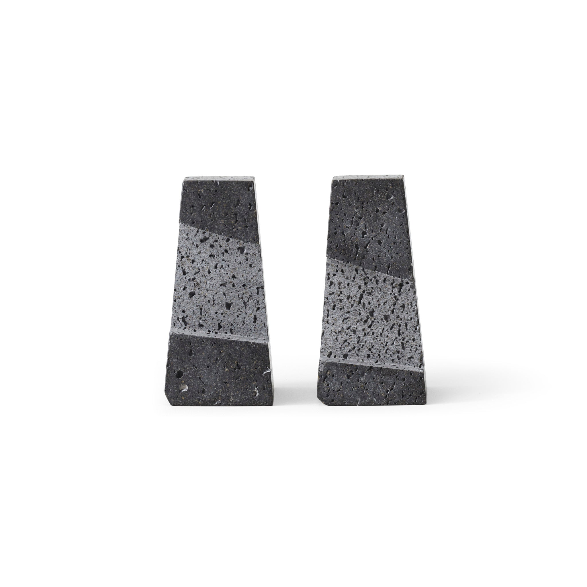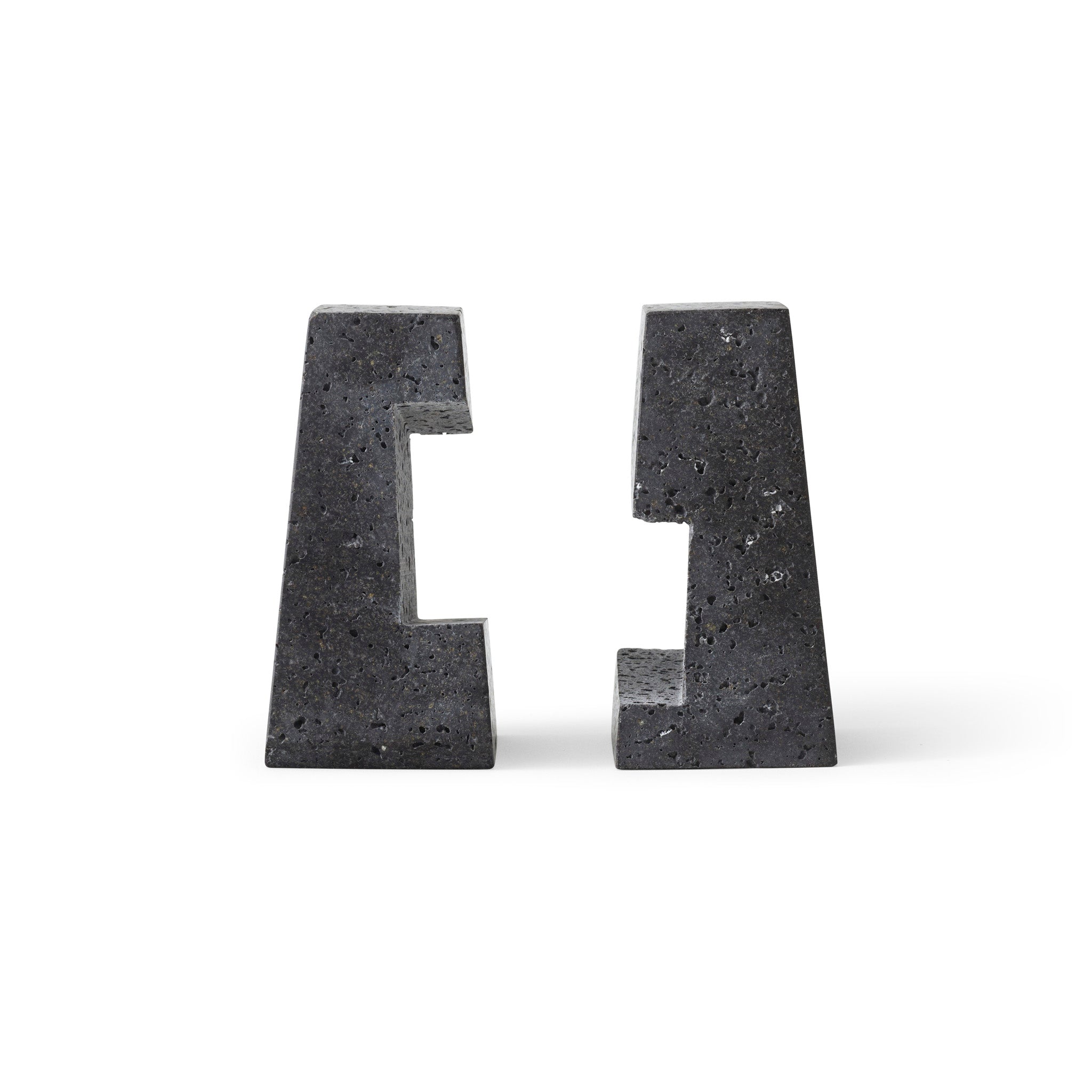 Designed to neatly hold books in place, the abstract forms of the Converge Bookends are shaped from lava stone - a dark and porous material with a textured surface. Use as intended, one at either side of a line of books, or interlock together to create a sculpture that delights with its intriguing shape and touch.