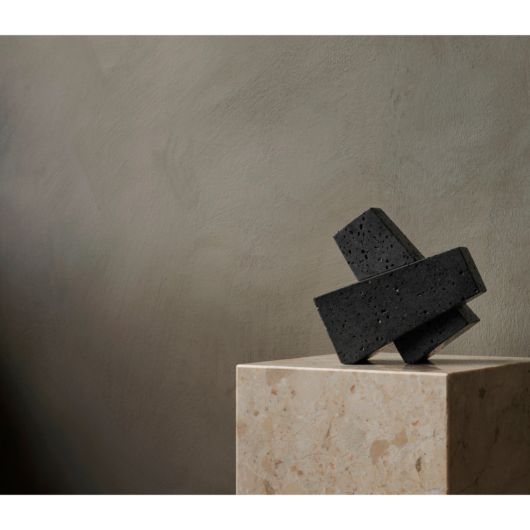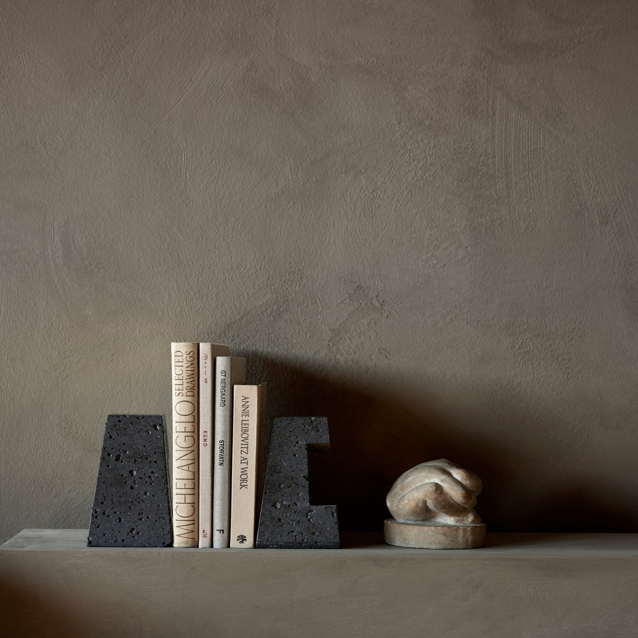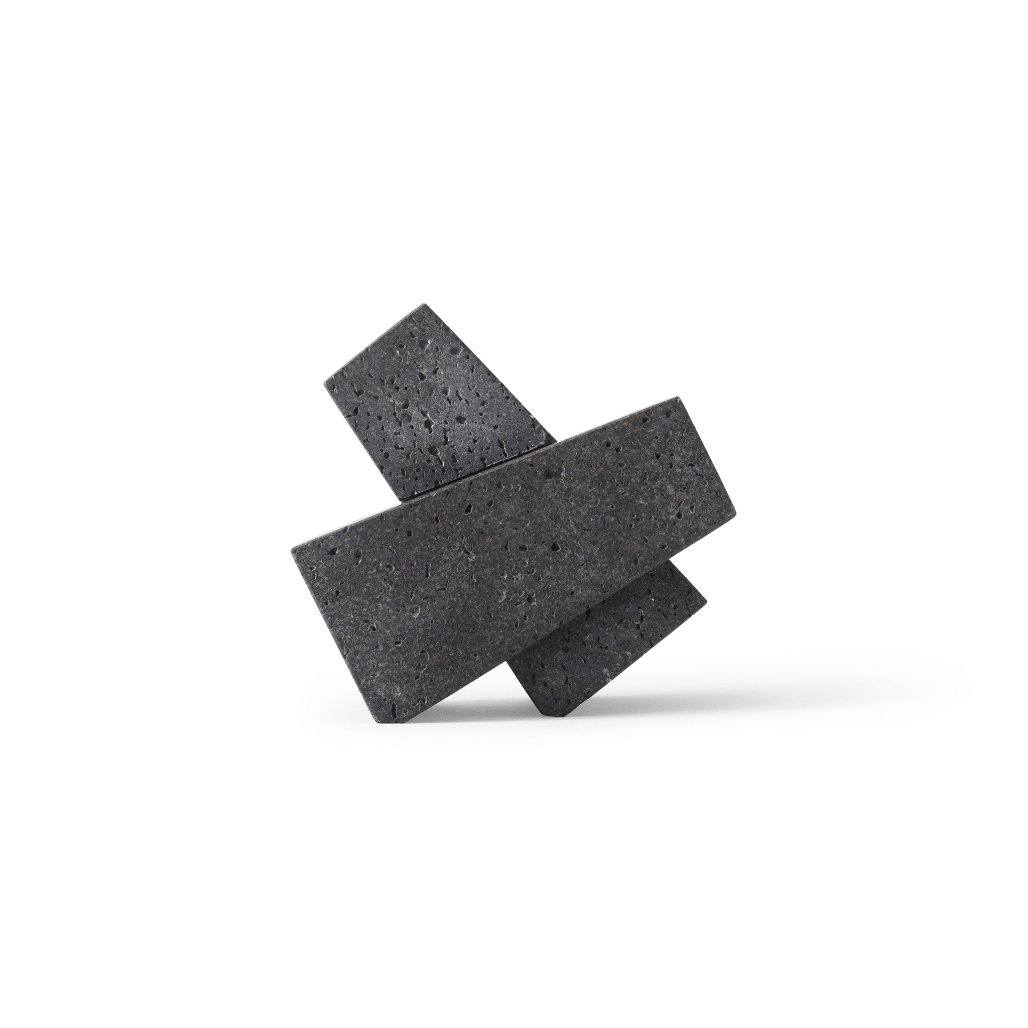 Designed to neatly hold books in place, the abstract forms of the Converge Bookends are shaped from lava stone - a dark and porous material with a textured surface. Use as intended, one at either side of a line of books, or interlock together to create a sculpture that delights with its intriguing shape and touch.