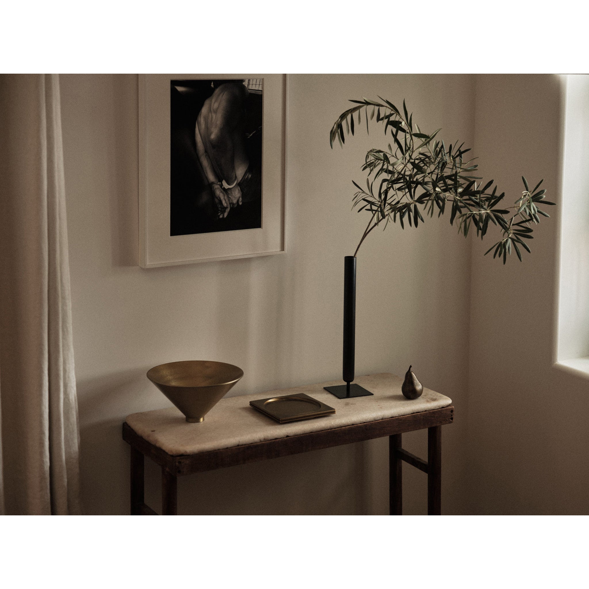 Simple. Sophisticated. Sculptural. The Stance Vase is inspired by traditional display stands to provide support for branches or long-stemmed flowers. The bronzed brass vase patinates beautifully over time and the understated design lends itself to any setting. Available in two sizes. The bronzed brass patinates beautifully over time