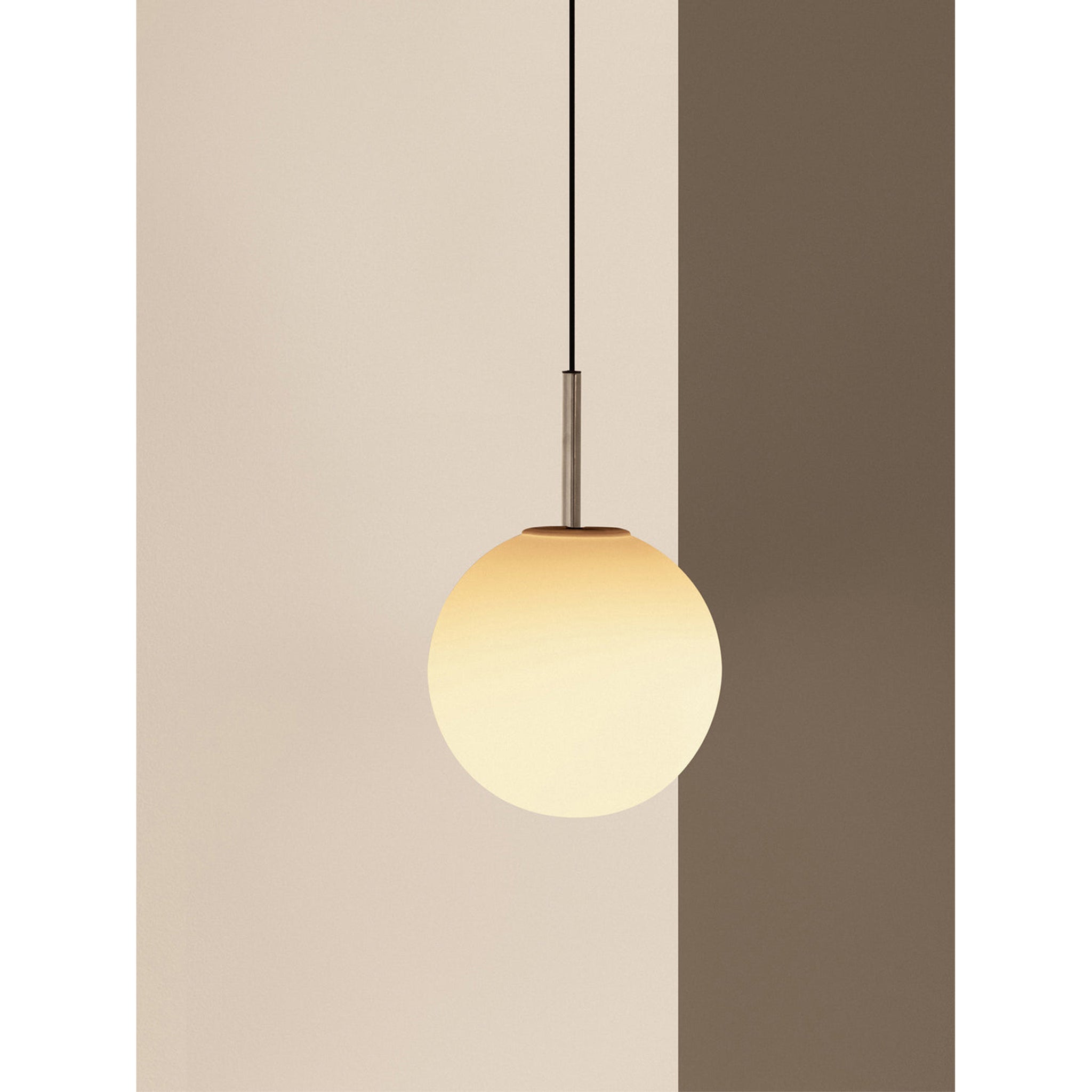 The TR Bulb is a clever and portable lighting solution for modern living, designed to be taken from space to space and installed by simply screwing it into an E26 socket. The TR Bulb Pendant light is fitted with the TR Bulb, a white opal glass shade featuring in-built, long-lasting LED technology that dims from bright to low, delivering a harmonious glare-free glow. Suspended from a textile cord, the pendant light can be adjusted to the desired height. Available with fixtures in either powder-coated steel, brushed brass or mirror polished steel, the design brings sophistication and ambience to a space.