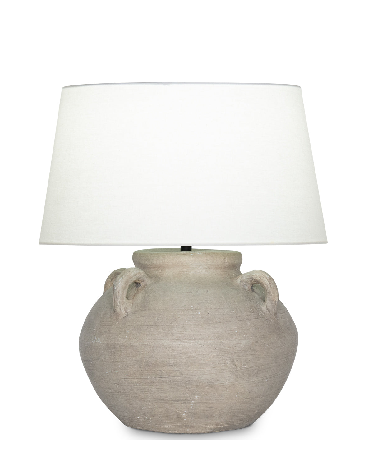 This bold ceramic table lamp will add a sense of earthy ambience to any interior setting. Expertly molded by ceramicists, the domed base of the lamp is reminiscent of a grecian urn and is sure to be the focal point of any room. The antique cream finish on the ceramic base will lend a classical touch to any room or hallway.