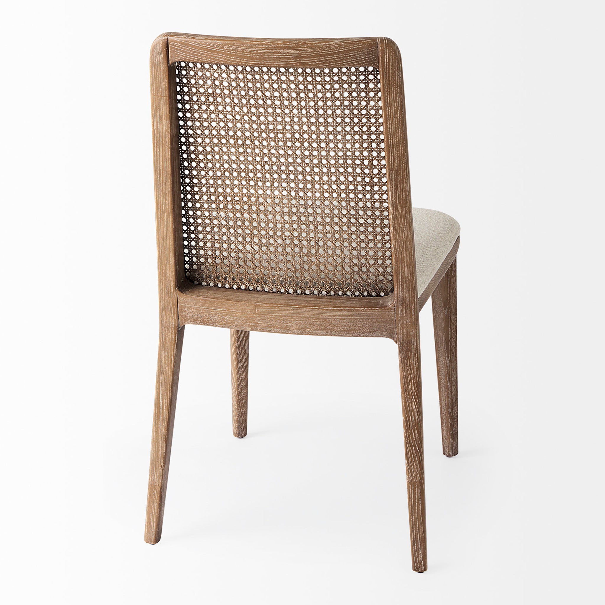 No matter what style of dining room table you have, our simple yet elegant Cooper Light Brown Armless Dining Room Chairs are guaranteed to be a perfect match. These Mid-Century style chairs exude an organic vibe, with their solid wood base matched with a neutral cream fabric seat and cane backrest. Add the perfect seating to your table and serve everyone in comfort with these stunning dining chairs.