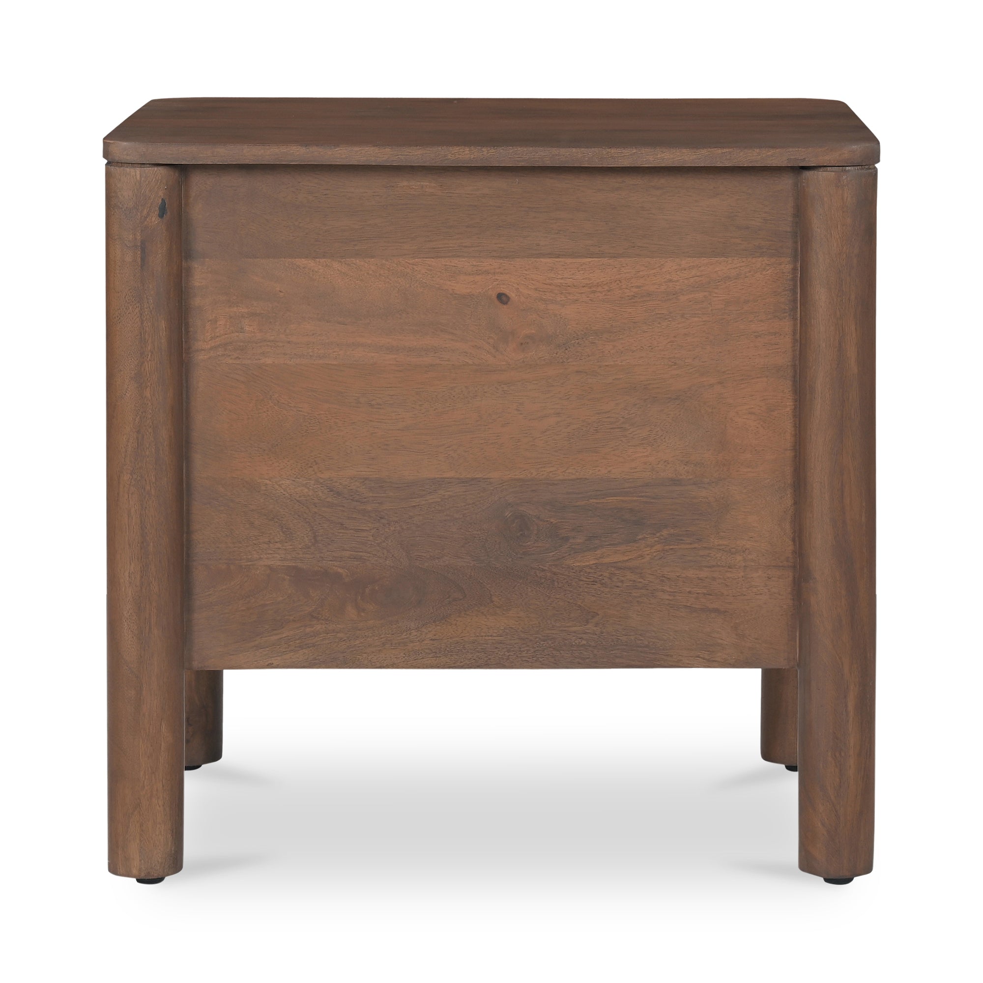 Modern aesthetics effortlessly blend with the refined simplicity of traditional Shaker design in the Lola nightstand. Meticulously crafted, its elegant form is defined by sleek, geometric curves that add a captivating touch of modernity. The post legs stand as pillars of strength, grounding the nightstand with their understated presence. A showcase of intricate scalloped edge details and heavy brass handles, these delicate elements lend a timeless charm reminiscent of classical influences.