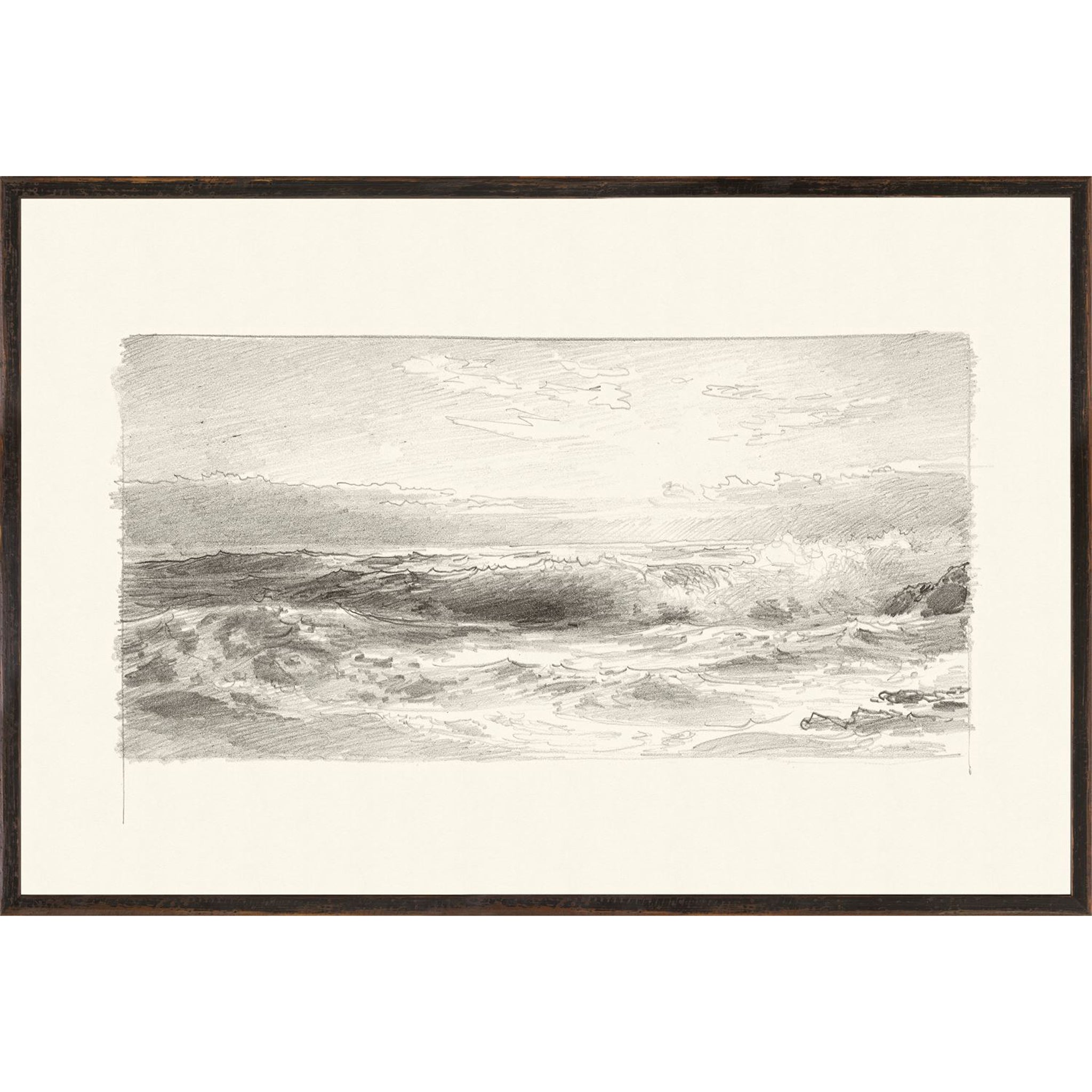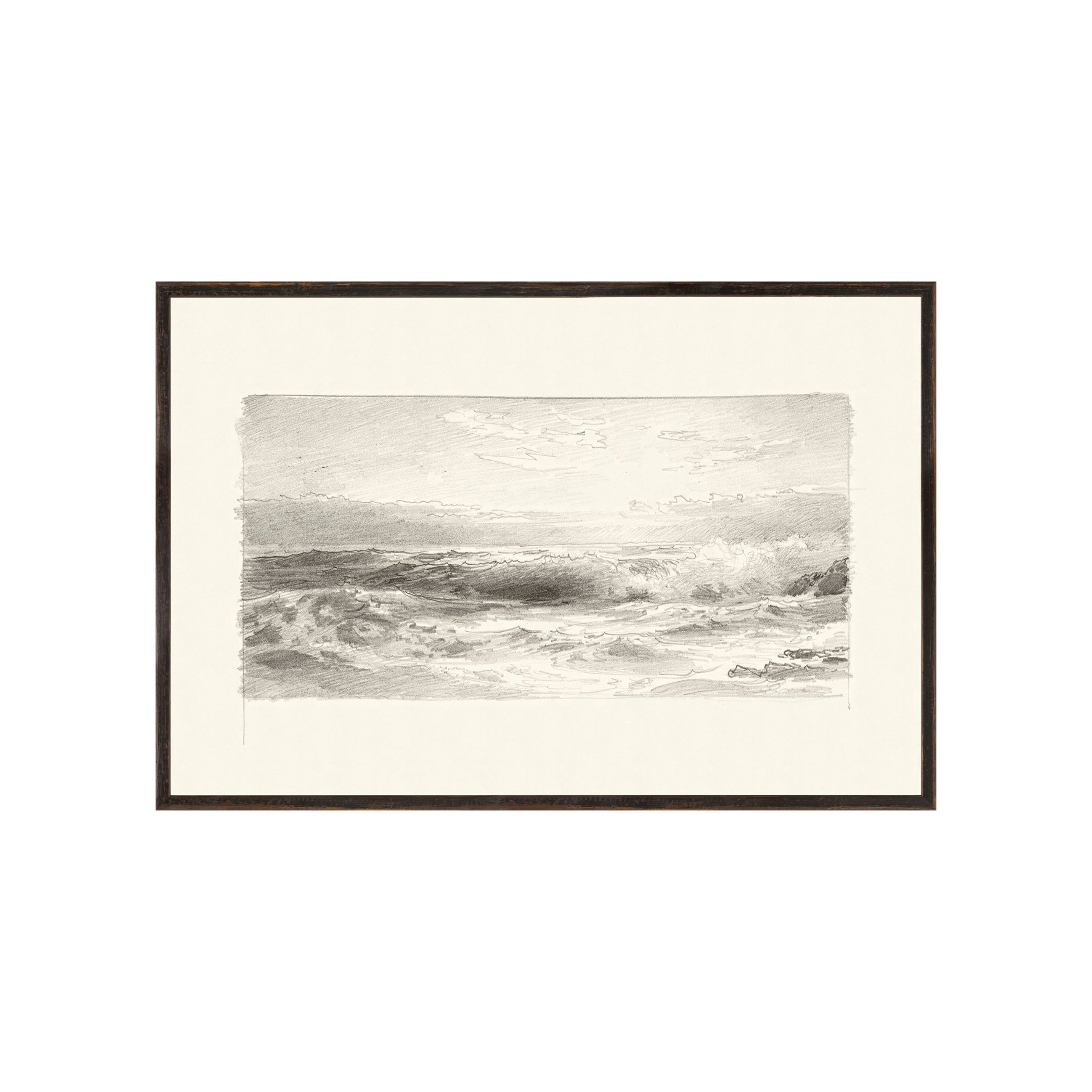 The Vintage Seascape series features William Trost Richards graphite oceanic sketches that are both sophisticated and nostalgic. Peaceful skies and turbulent waters play at contrast in Seascape III. Printed on beautifully textured paper to capture the movement of the composition as well as their historical provenance, these sketches are stand-out pieces for any interior space.