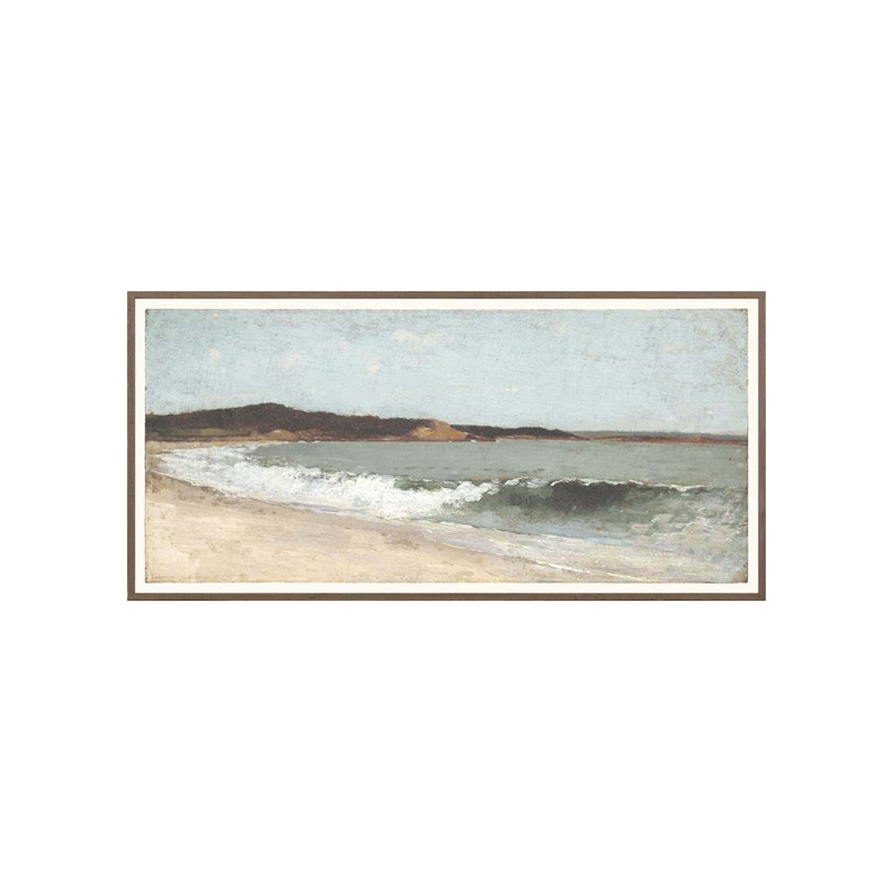 Featuring textures of oil paint and a crisp, walnut-tone frame, this piece captures the moment a wave crashes against an empty beach, resulting in a piece that feels as simple as it does profound. Winslow Homer's painted sketch of Eagle Head is a true 19th century gem.