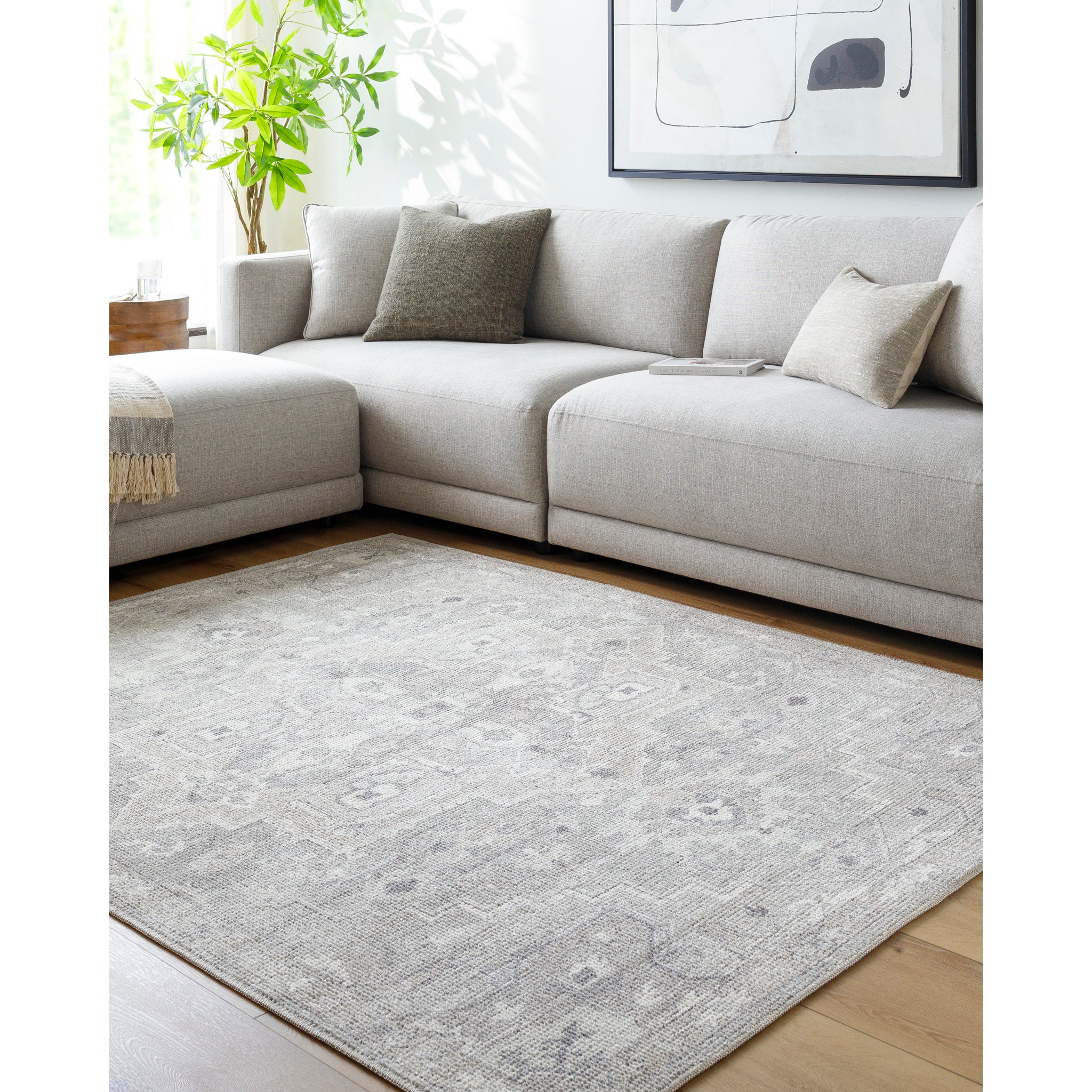 Add character and warmth to your home with the Elle Collection by Becki Owens x Surya. This collection is vintage inspired and brings a mix of modernized traditional style with the detailed medallion design. Crafted with warm gray tones, this rug will add character and liven a space by bringing a fun livable feel to the area. Durably woven in Turkey, this collection is great for high traffic areas.