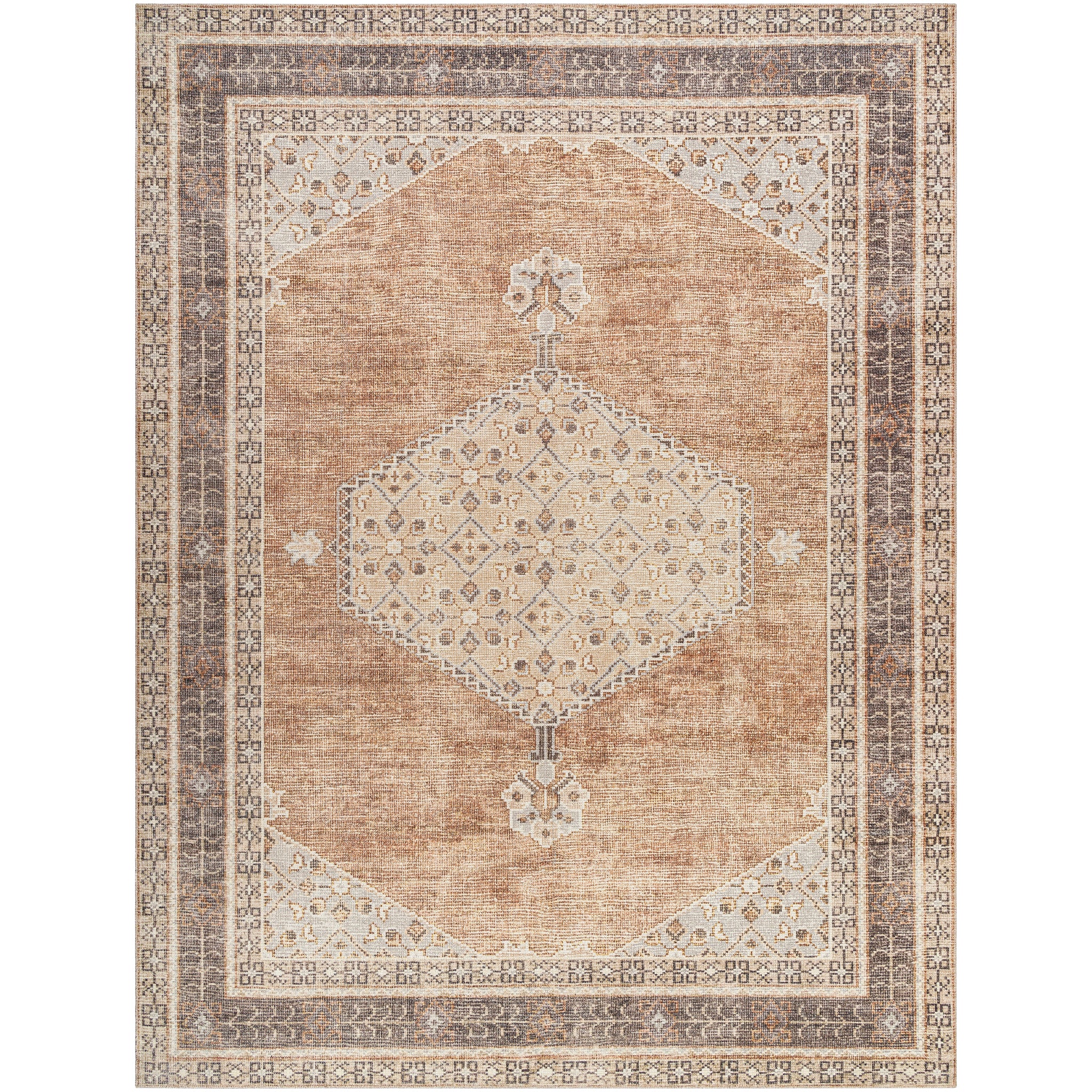 A warm terracotta palette mixed with vintage motifs allow the Lila rug in the Becki Owens X Surya collection to effortlessly elevate any room in your home. The Lila Collection, inspired by one-of-a-kind rugs and vintage designs, has a beautiful medallion center with soft floral details. Rich earth tones in this collection help warm and ground any space, making it a perfect foundation to build on. This rug carries a bold, but subtle presence and adds an old-world antique element. Crafted and woven in Turkey, this unique rug is durable all while keeping a soft feel and exclusive texture.