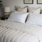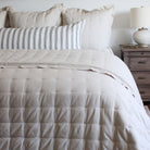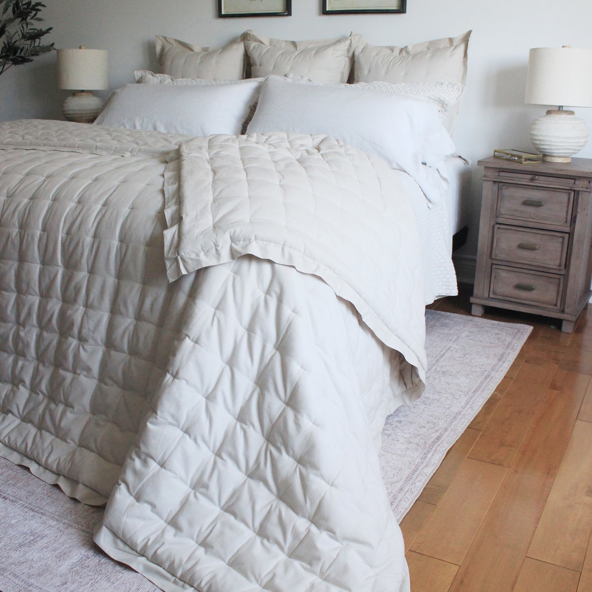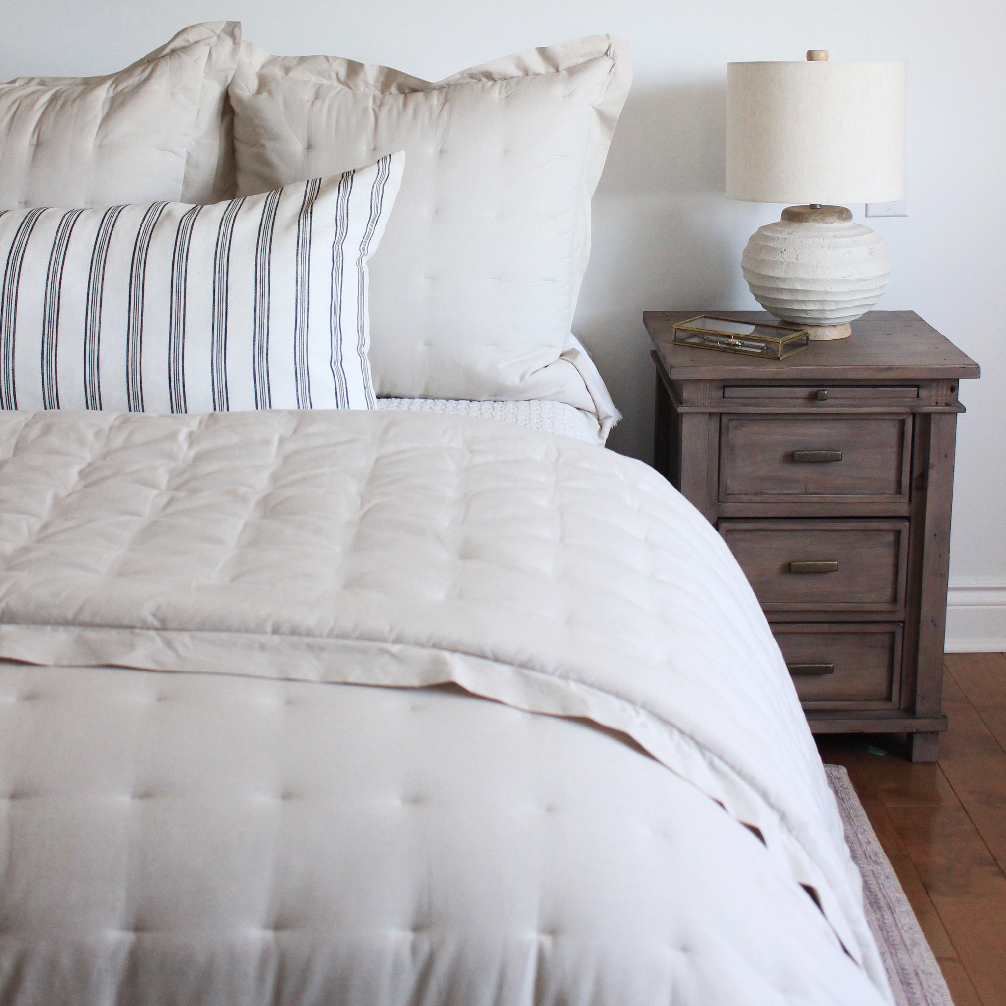 Buttery-soft cotton is quilt-tied with a lightweight, lofty filling, and finished on all edges with a mitered flange. This matching sham is the perfect finishing touch to Puff, our magical, "One-derful and Done" bedding solution. Crafted by artisans committed to fair-labor practices. Machine washable. Natural fibers. Closure: Ties. Flanged edge.