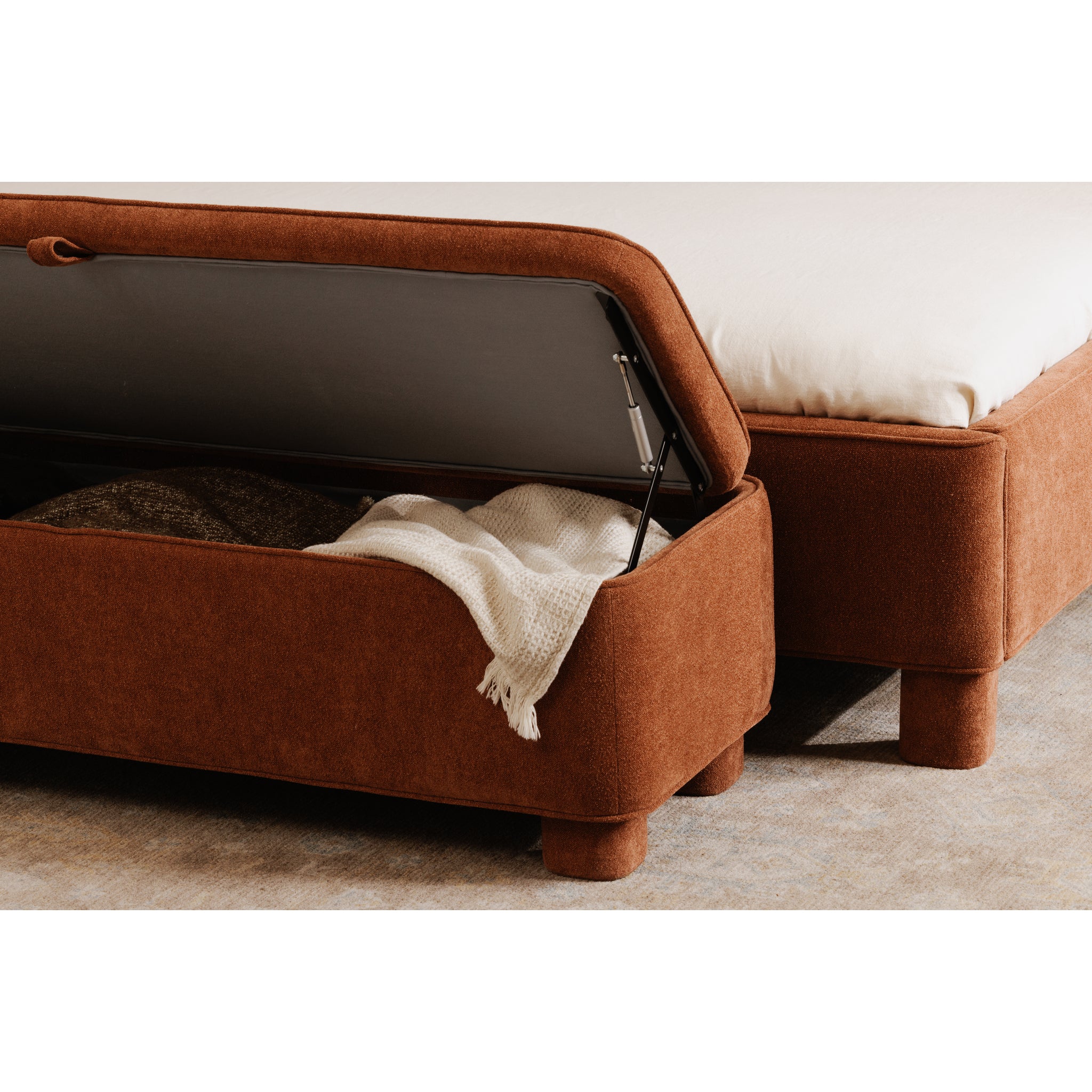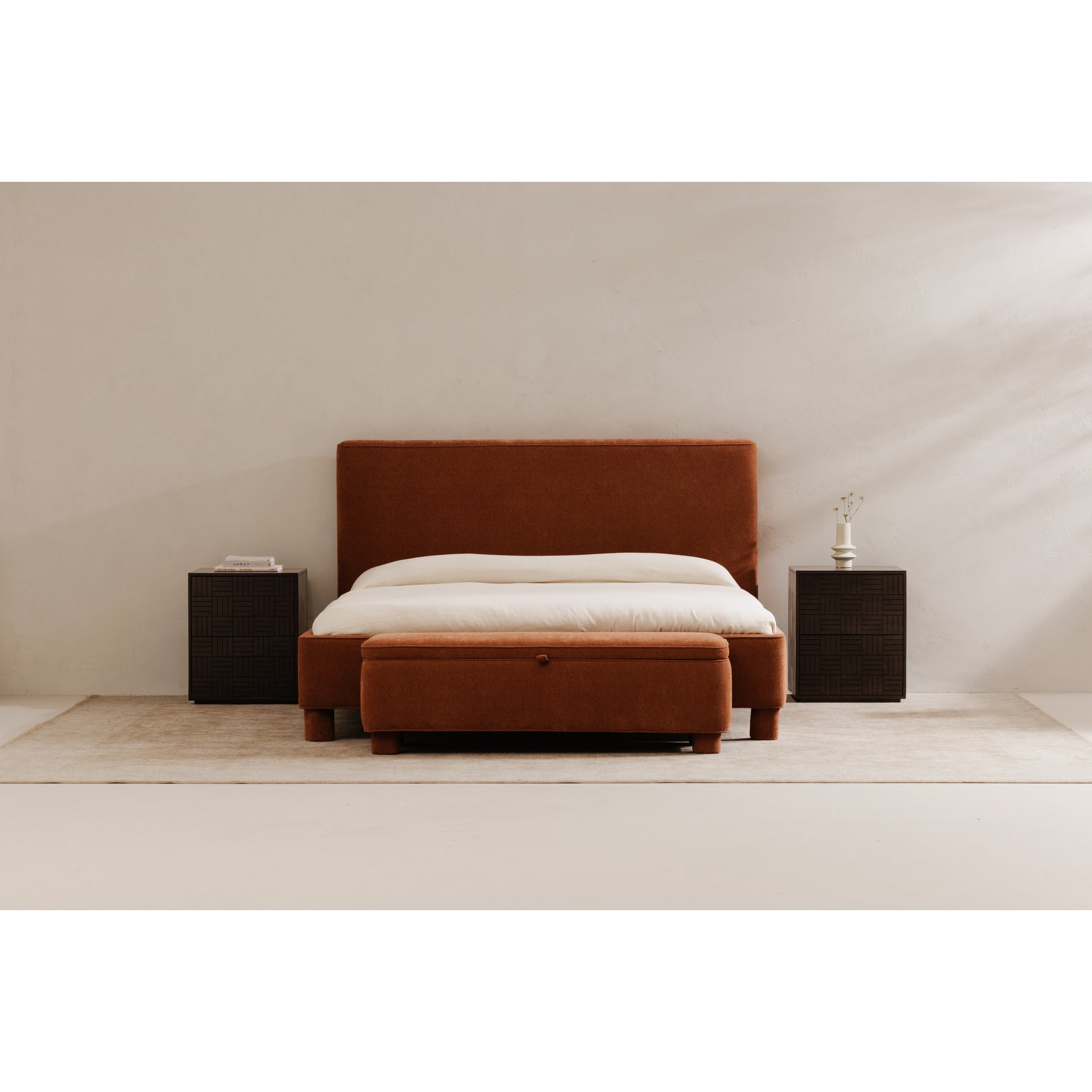 Designed with comfort in the forefront, the Iliane storage bench is upholstered in a soft-touch polyester, accommodating two people with a convenient storage compartment discreetly tucked away beneath the seat. Available in a captivating orange hue, the Ichigo storage bench adds a vibrant touch to any space.