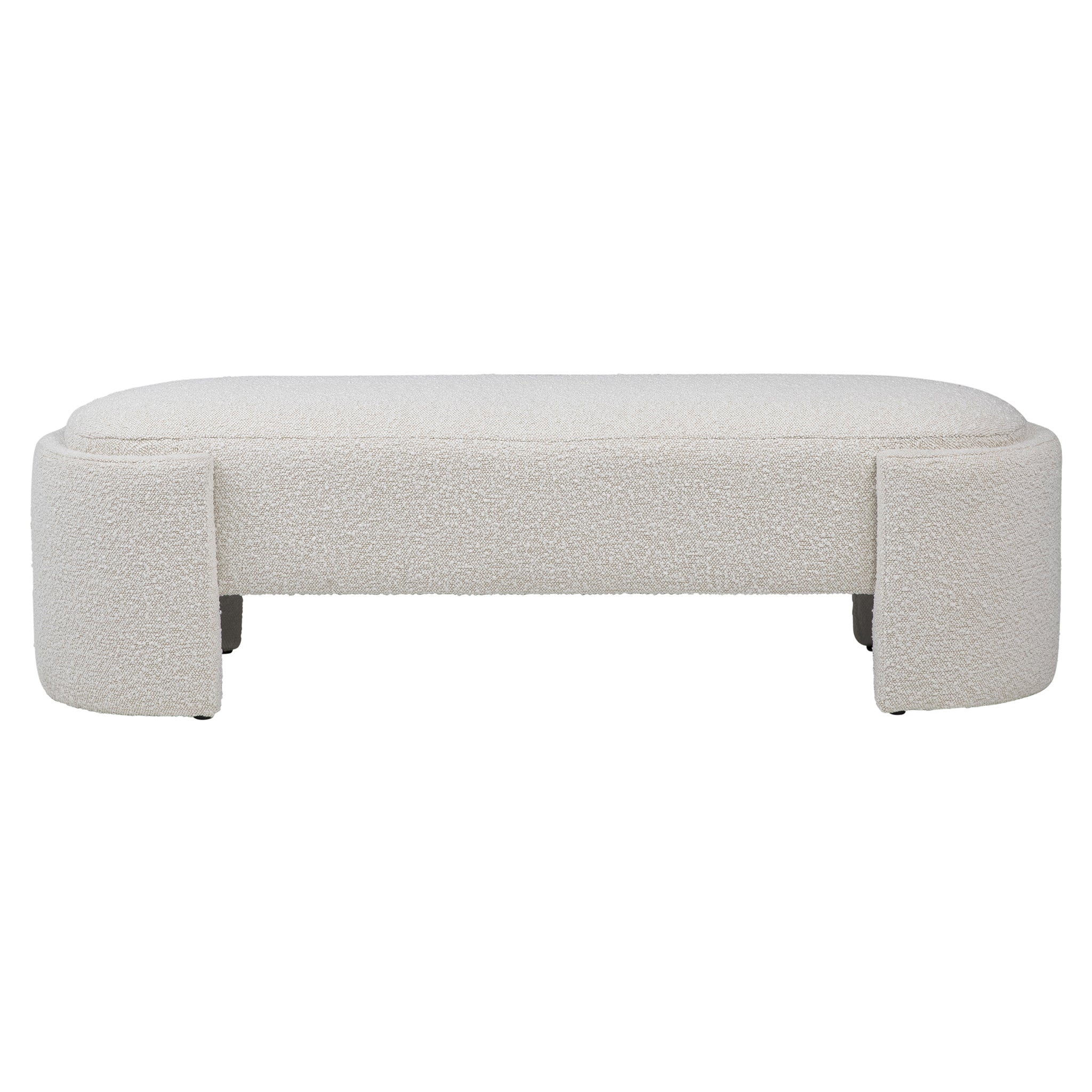 Elevate your seating area with the modern elegance of the Anomaly Bench, boasting an off-white finish that exudes contemporary charm. Crafted with performance fabric, it ensures durability and long-lasting enjoyment. Its oval frame is adorned with stunning boucle upholstery in a soft off-white hue, providing both style and comfort. This versatile bench can serve as a center table, perfect for displaying small trays and knick-knacks, or as a comfortable spot to prop your feet up after a long day. Whether placed in the bedroom, entranceway, or living room, the Anomaly Bench adds a touch of sophistication to any space.