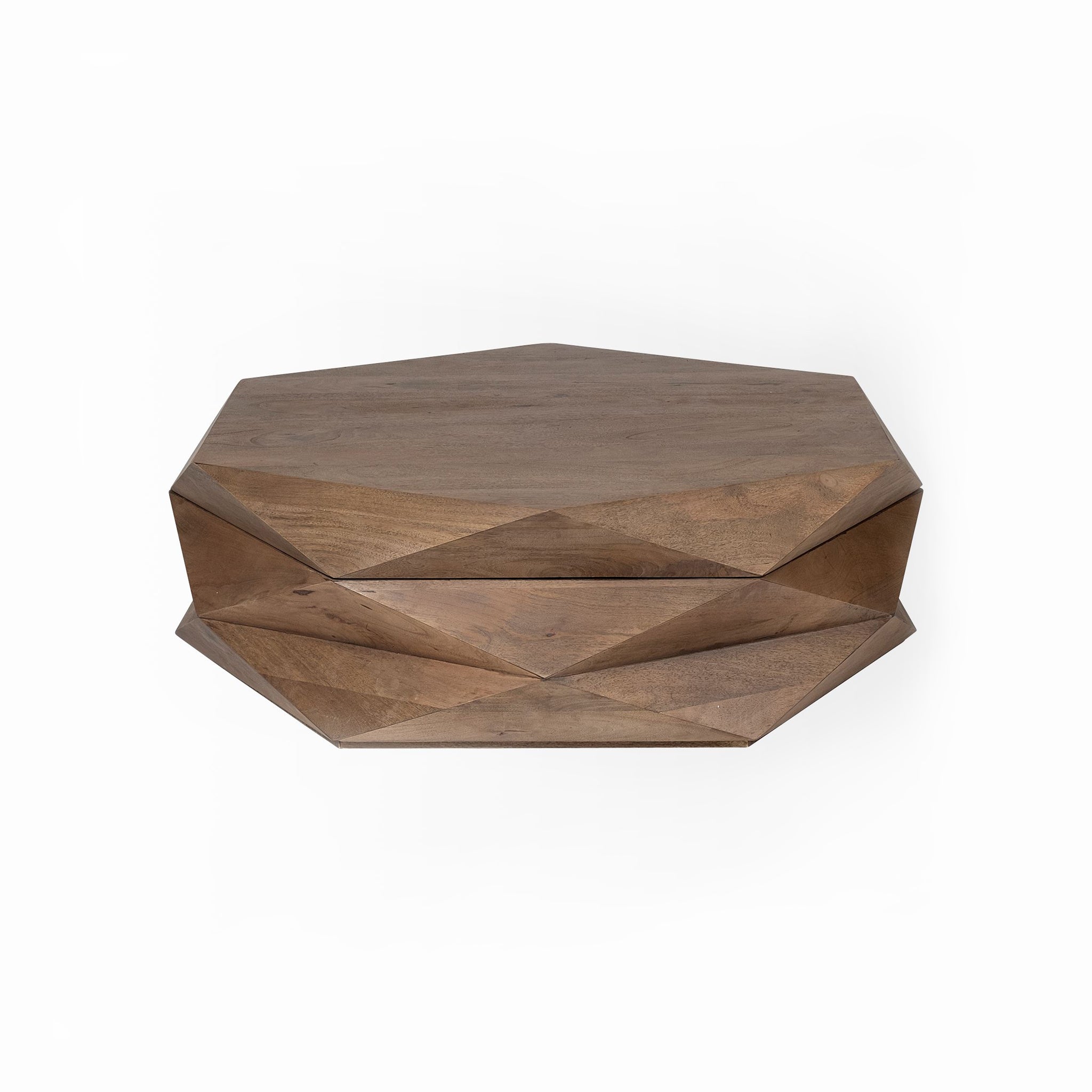 Asher Hexagonal Storage Coffee Table in Medium Brown