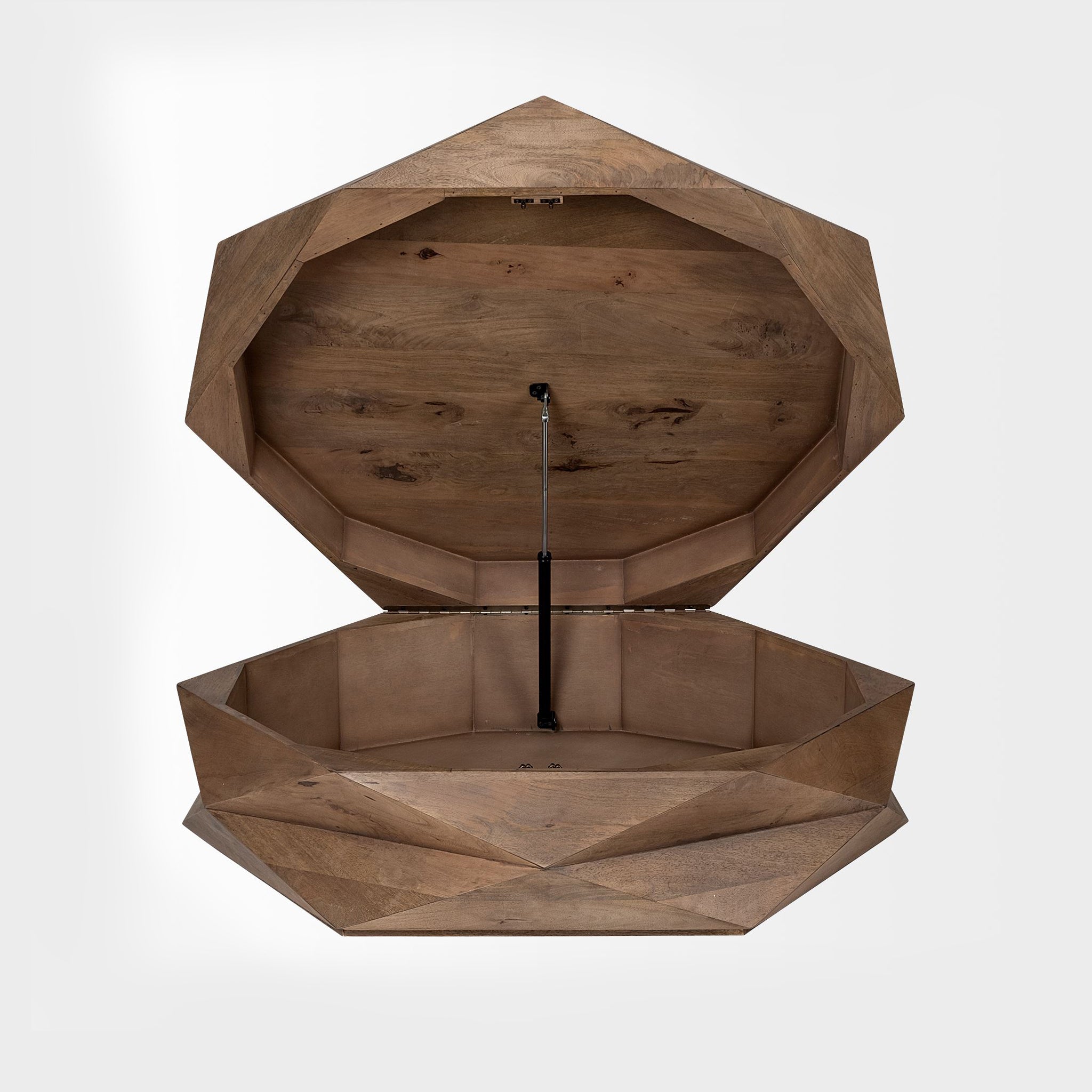 If it's time for an update to your living room furniture, our Hinged Hexagonal Coffee Table from our Asher collection is the perfect piece. Finished in a medium brown stain, this all-wood coffee table is a decorative eye-catcher with its unique geometric shape and convenient hinged top. Decorate your room with a timeless accent piece that will elevate your existing design.
