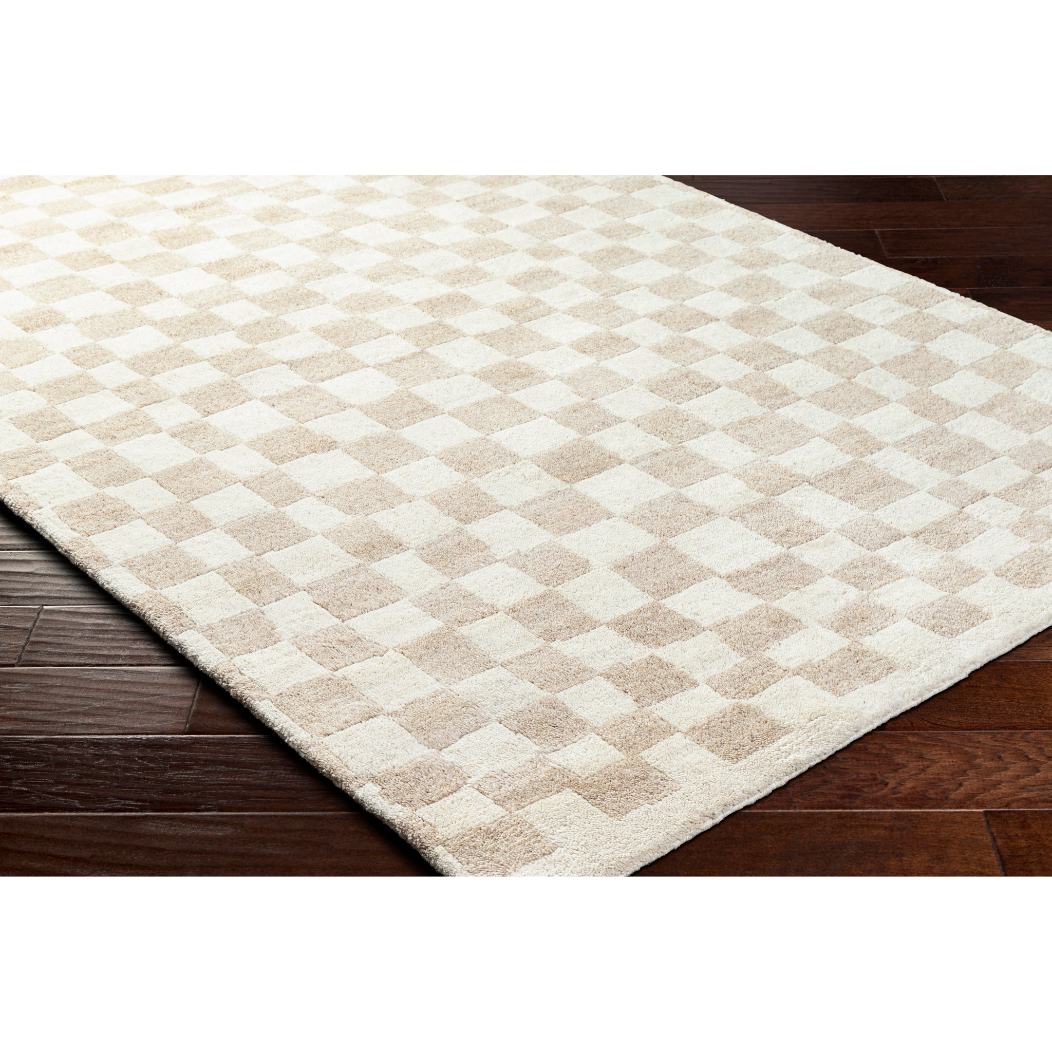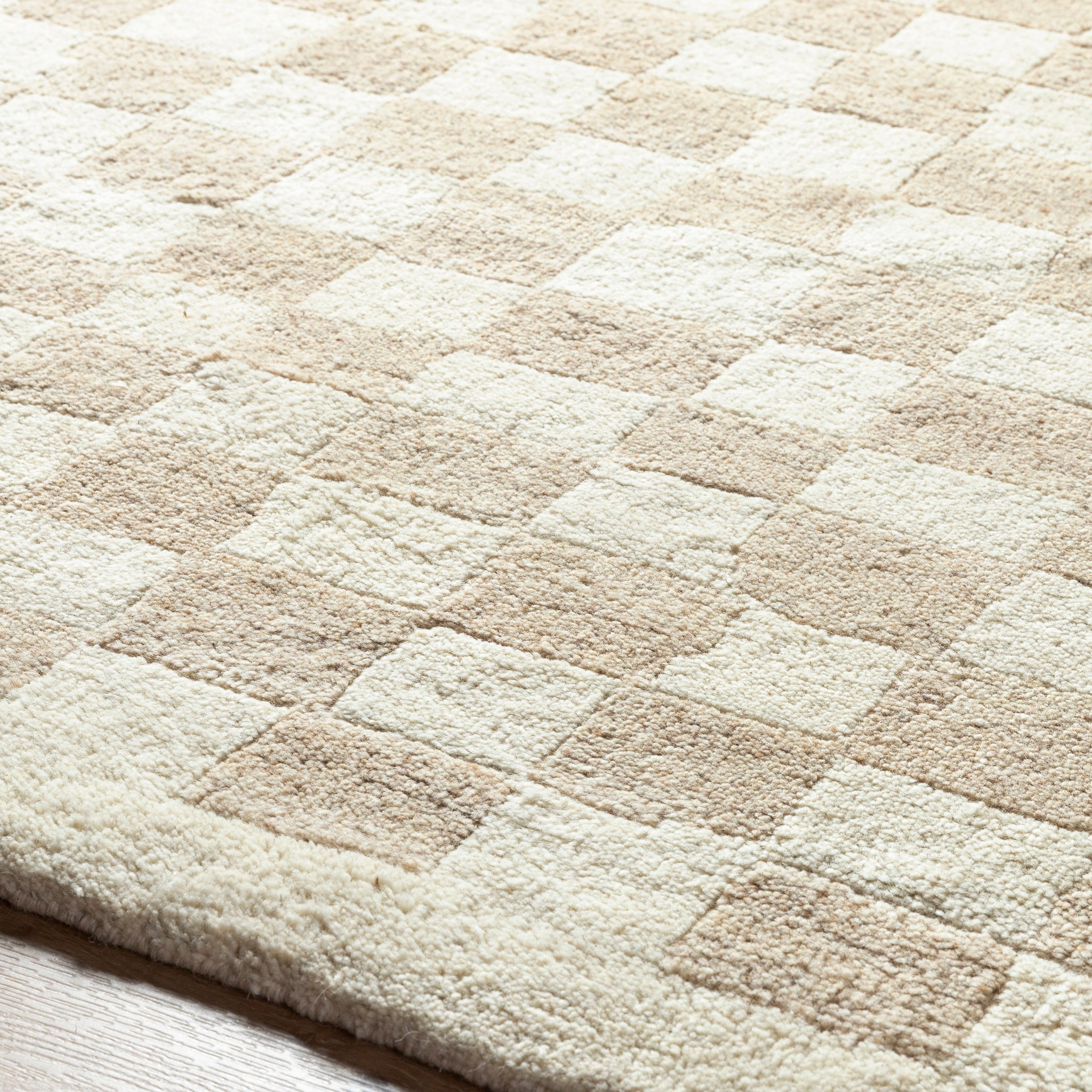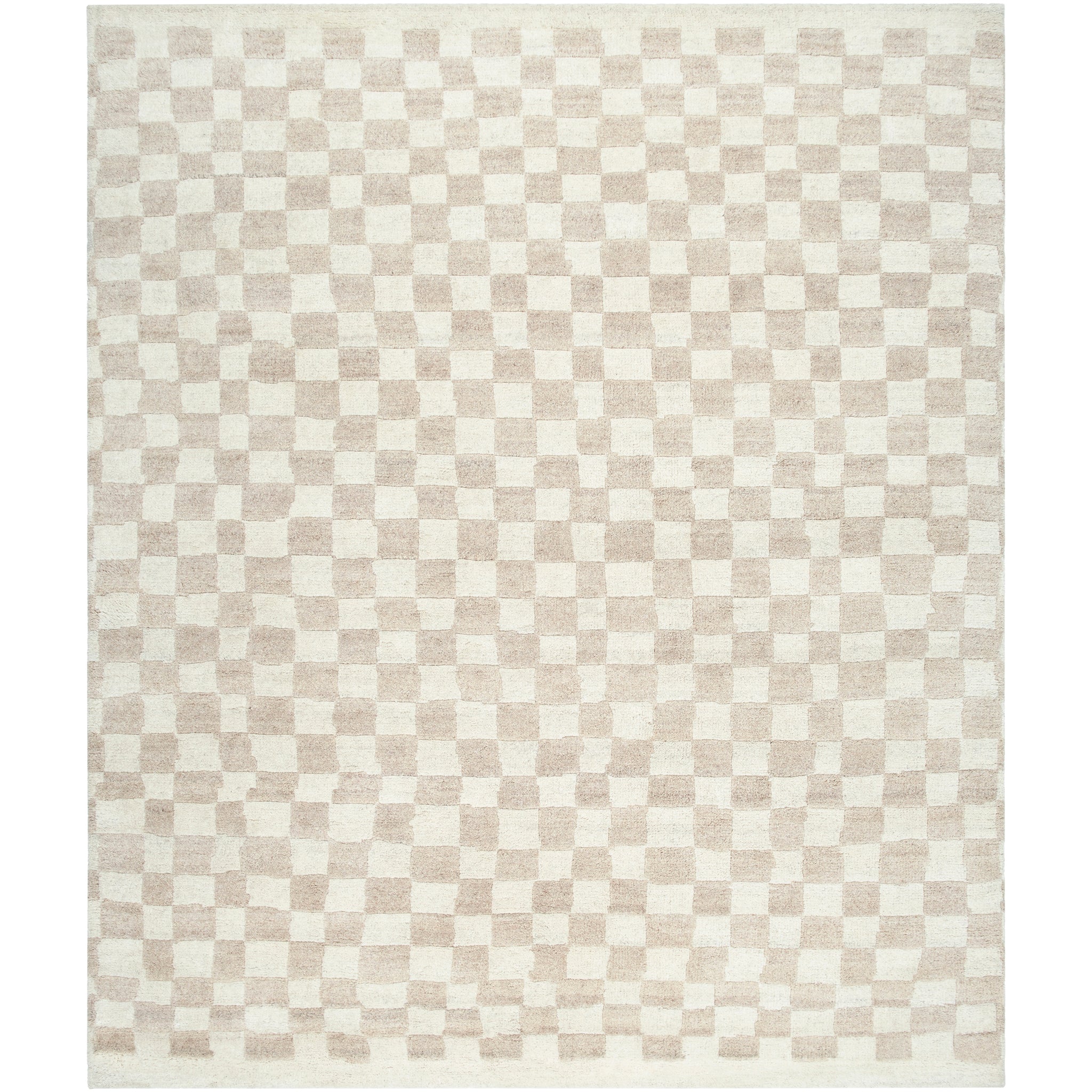 Checkered Hand-Knotted Wool Rug in Ivory/Beige