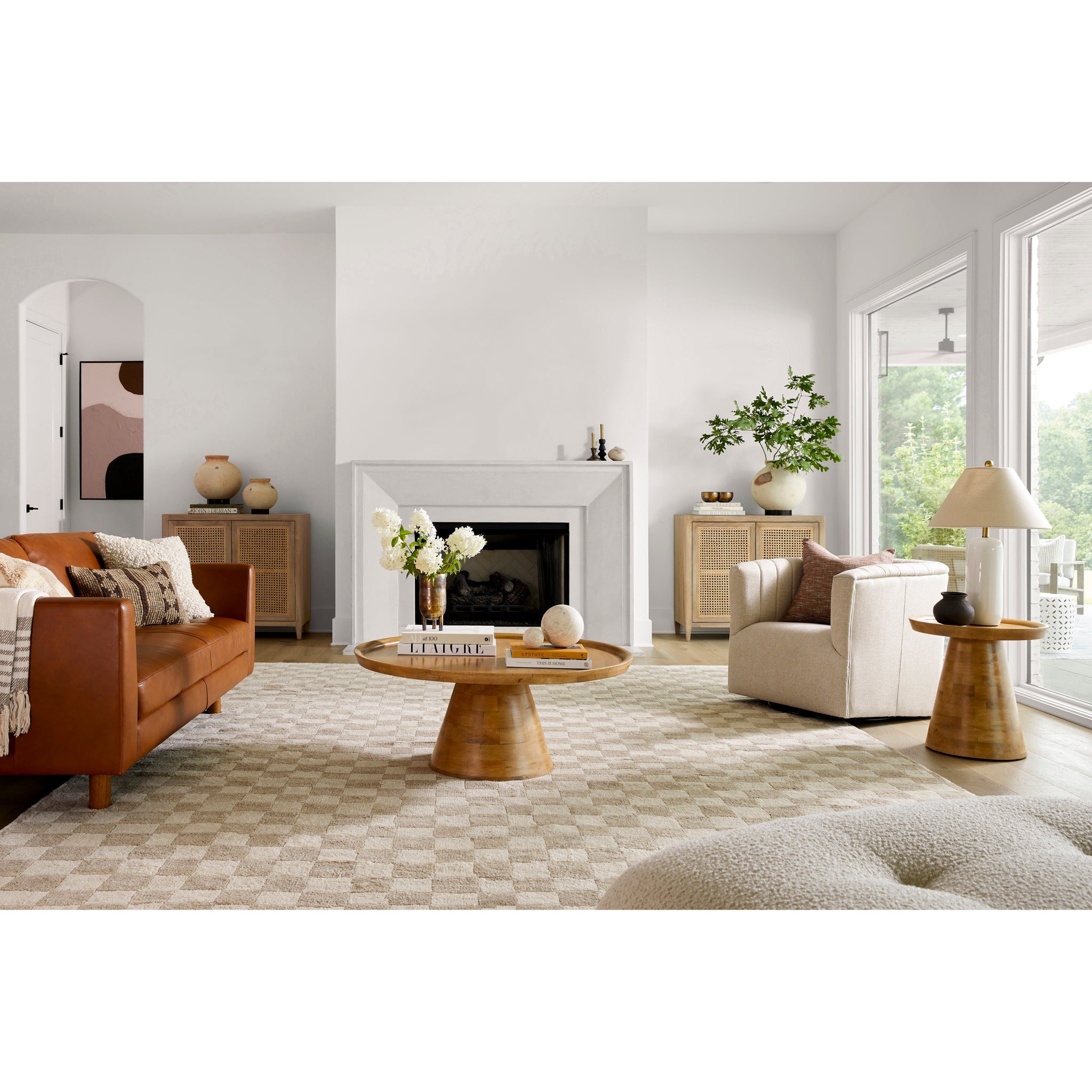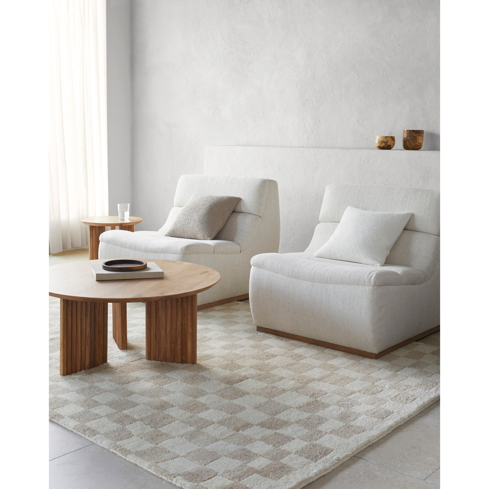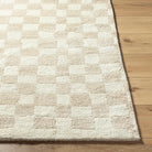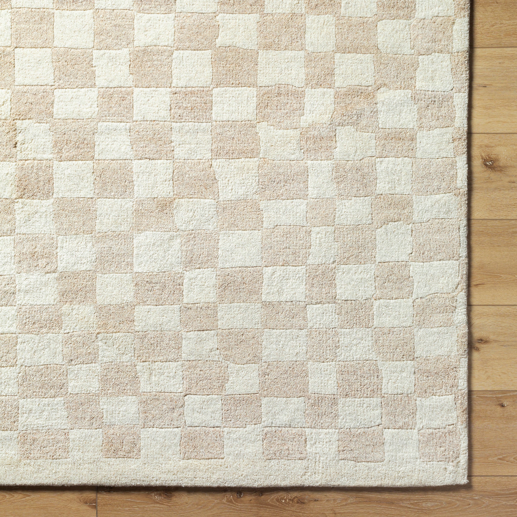 Checkered Hand-Knotted Wool Rug in Ivory/Beige