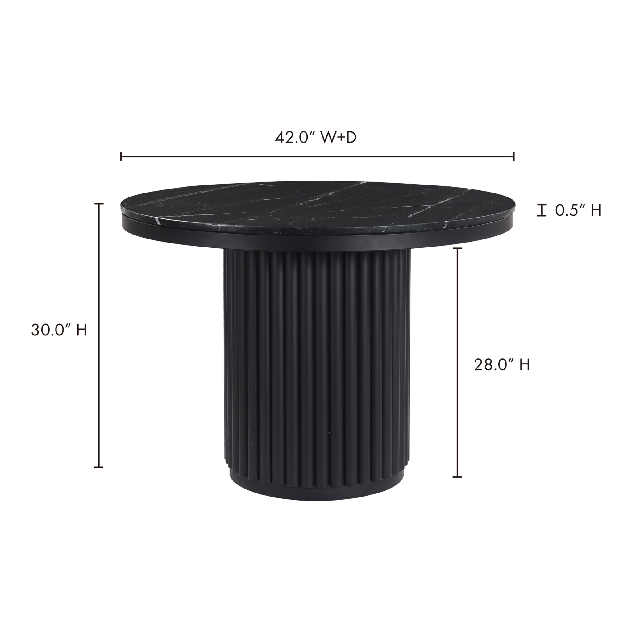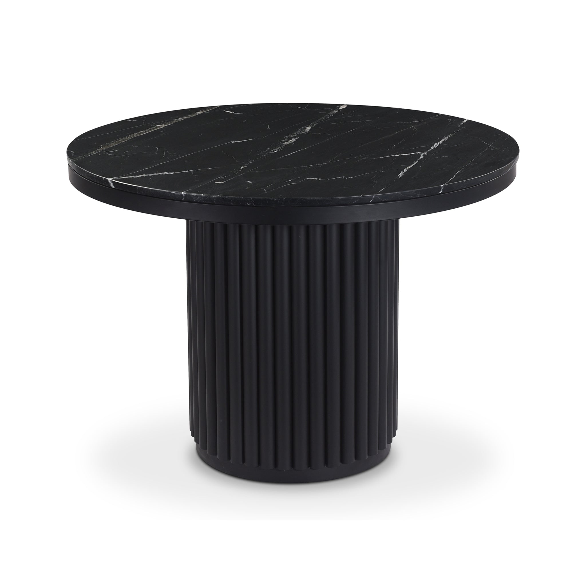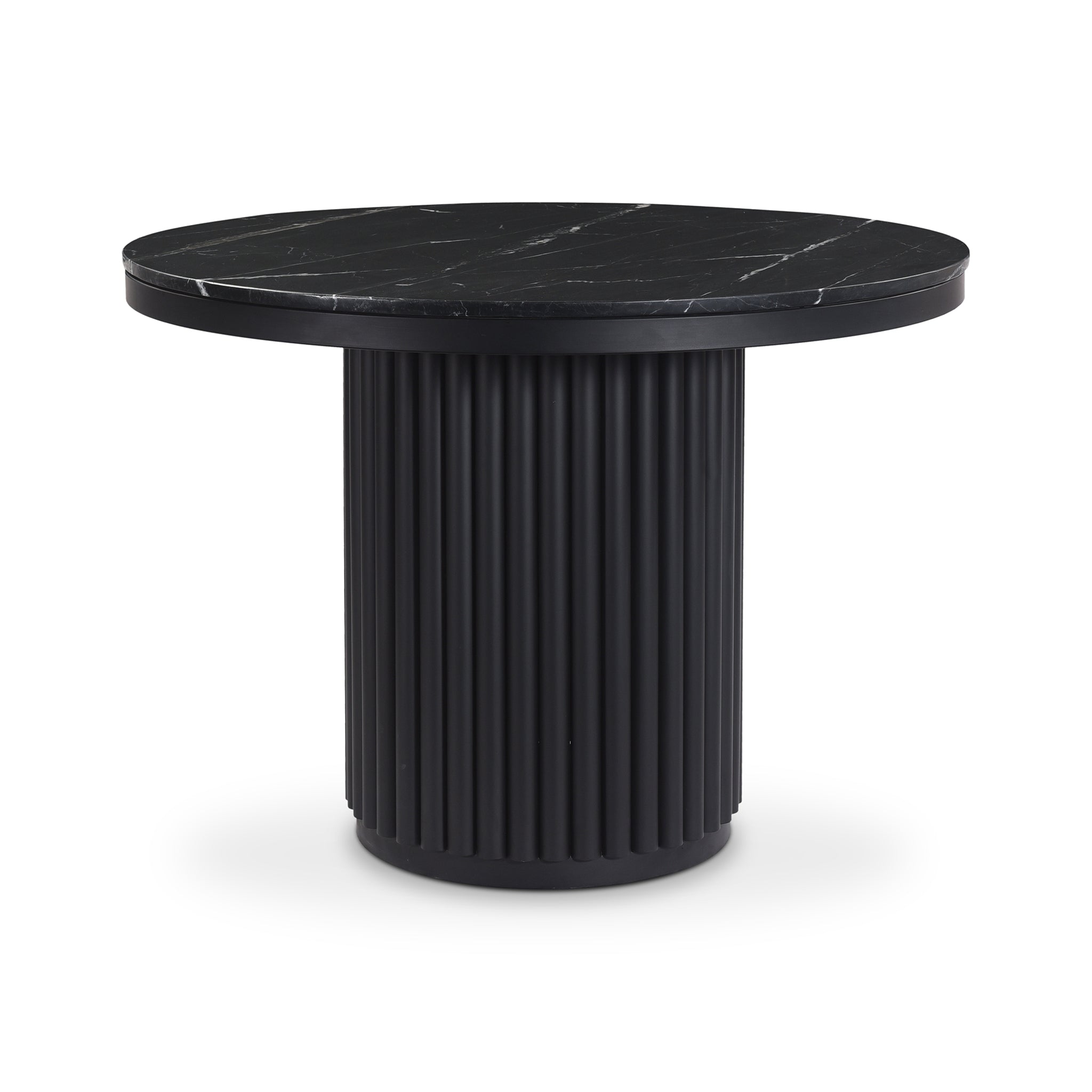 Inspired by Roman architecture, the Mika dining table features a black-finished pillar base holding up a beautiful black marble top. This classic yet modern design, which seats two to four people, is a welcome addition to any contemporary home.