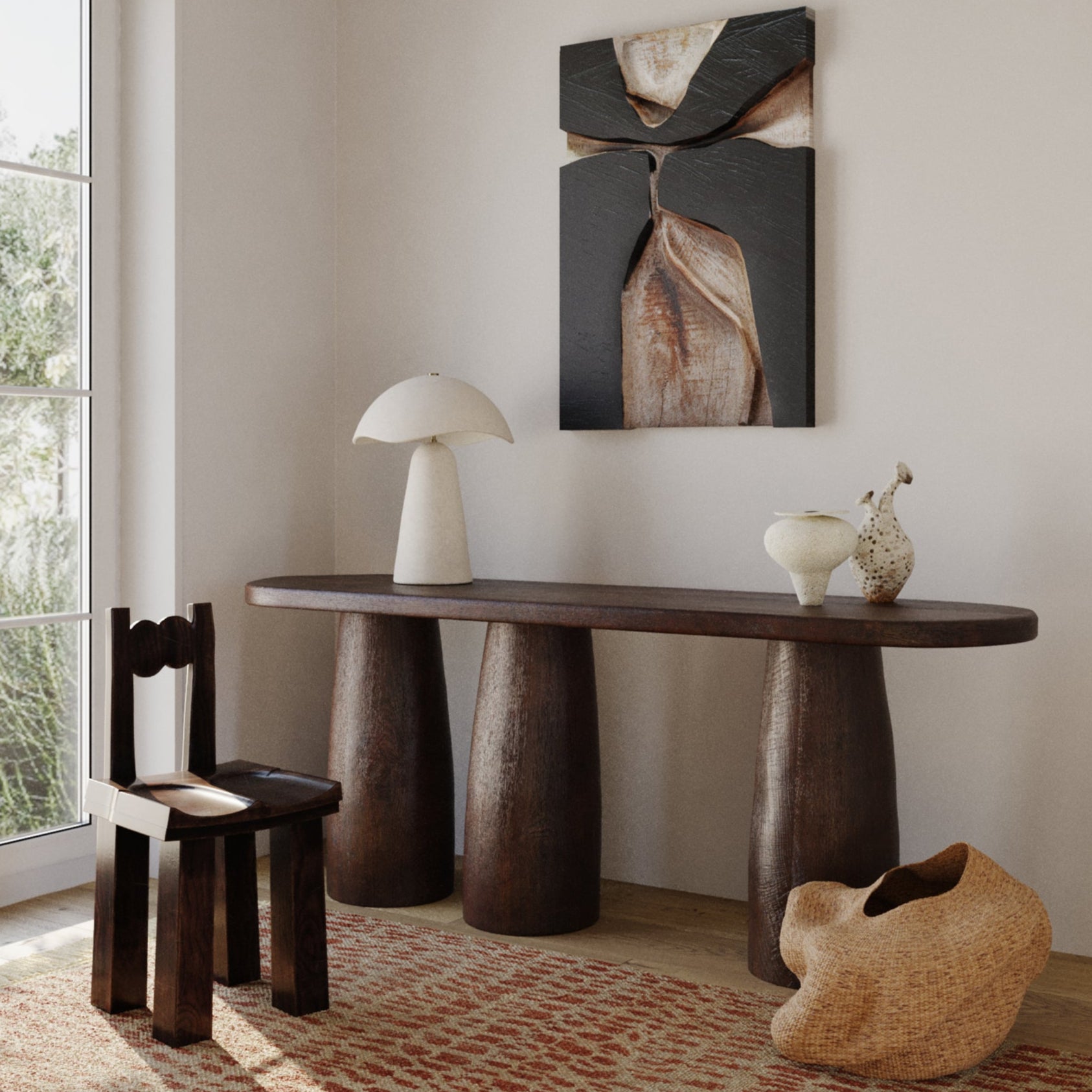 A play on Toni Morrison's novel 'Song of Solomon', Soloma embodies the diverse potential of a single material. Crafted entirely from Aritsan White ceramic, this sculptural table lamp features a distinctive dome-shaped shade with an irregular edge. Inspired by the spirituality of the color white, Nash wanted there to be a sacredness to this lamp's design. Its sculptural simplicity exudes a quiet power. Part of our Loft and Thought collection.