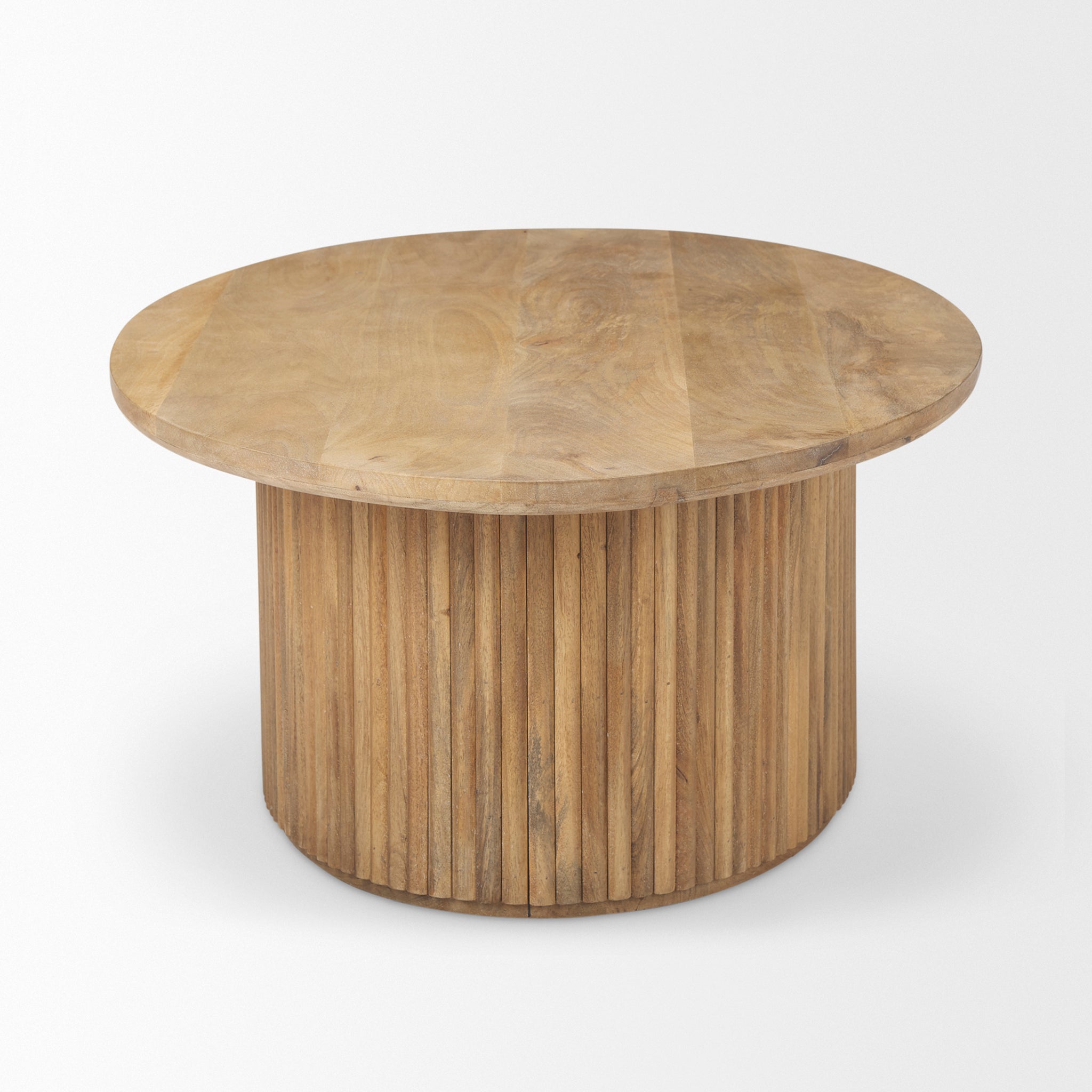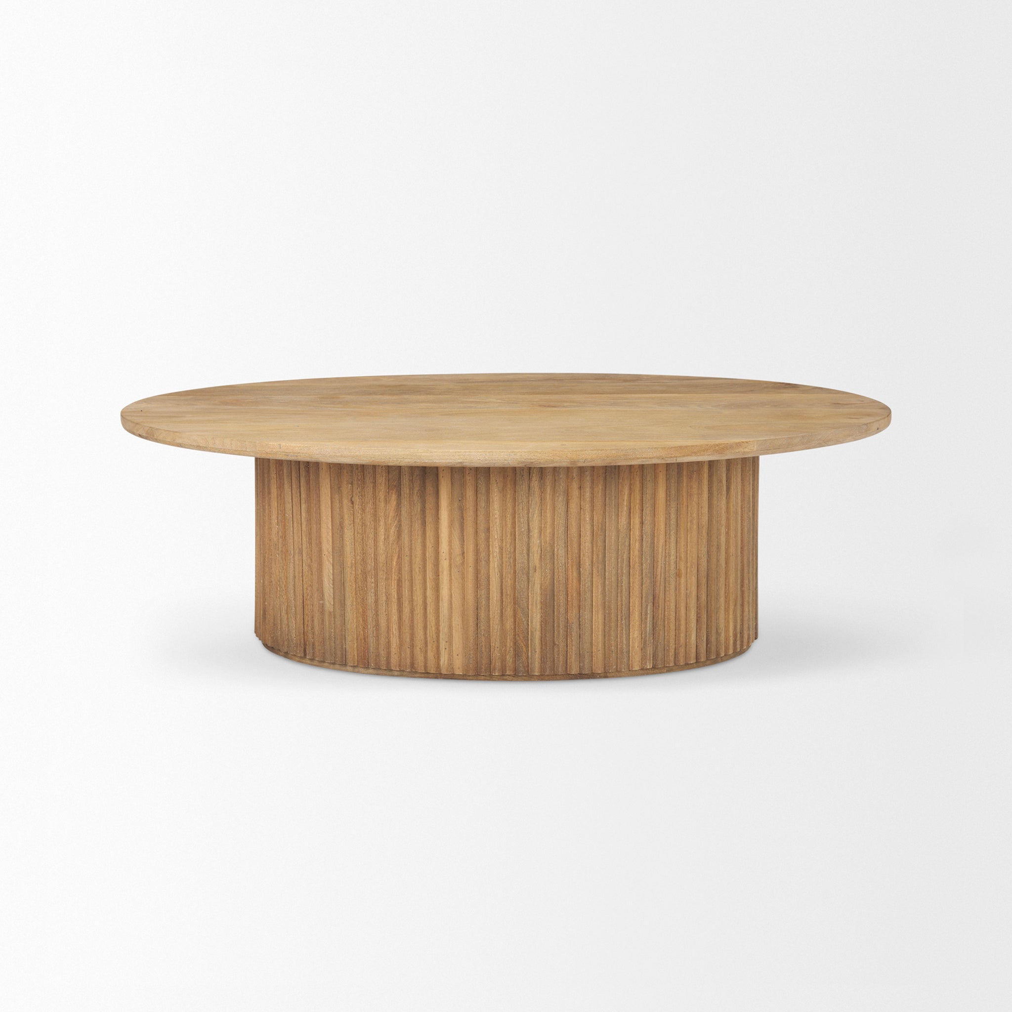 Our Talea collection of tables offers sleek, high quality furniture pieces that update any home design, and our Talea Oval Light Brown Wood Fluted Coffee Table is no different. A perfect complement to our other fluted designs, this coffee table is made from solid mango wood and features beautiful natural grain visible in its surface. With an interesting fluted base, the Talea coffee table is perfect in a contemporary setting, but in all-natural wood, it's also a stunning match for a more traditional design. Combine style and functionality with a coffee table you'll get years of use out of.