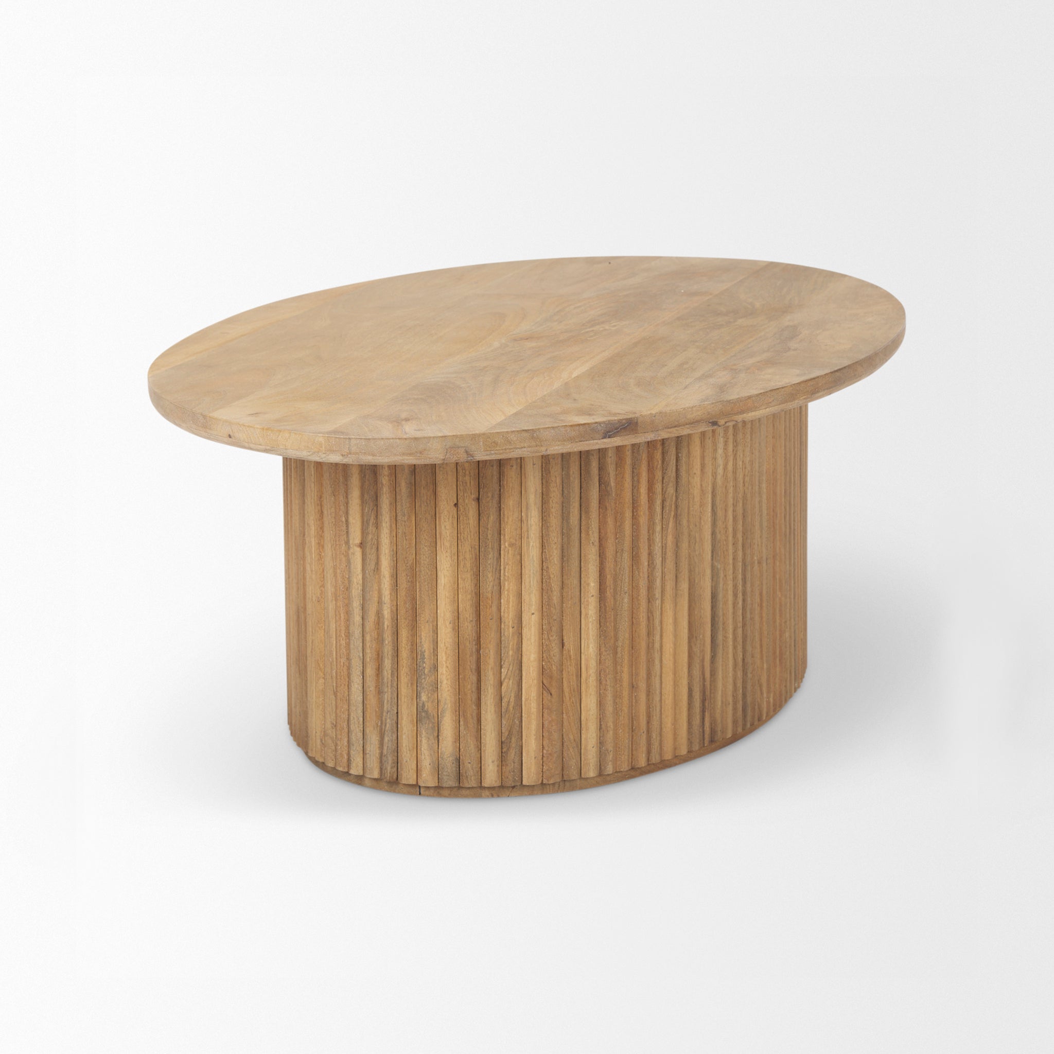 Talea Oval Light Brown Wood Fluted Coffee Table