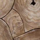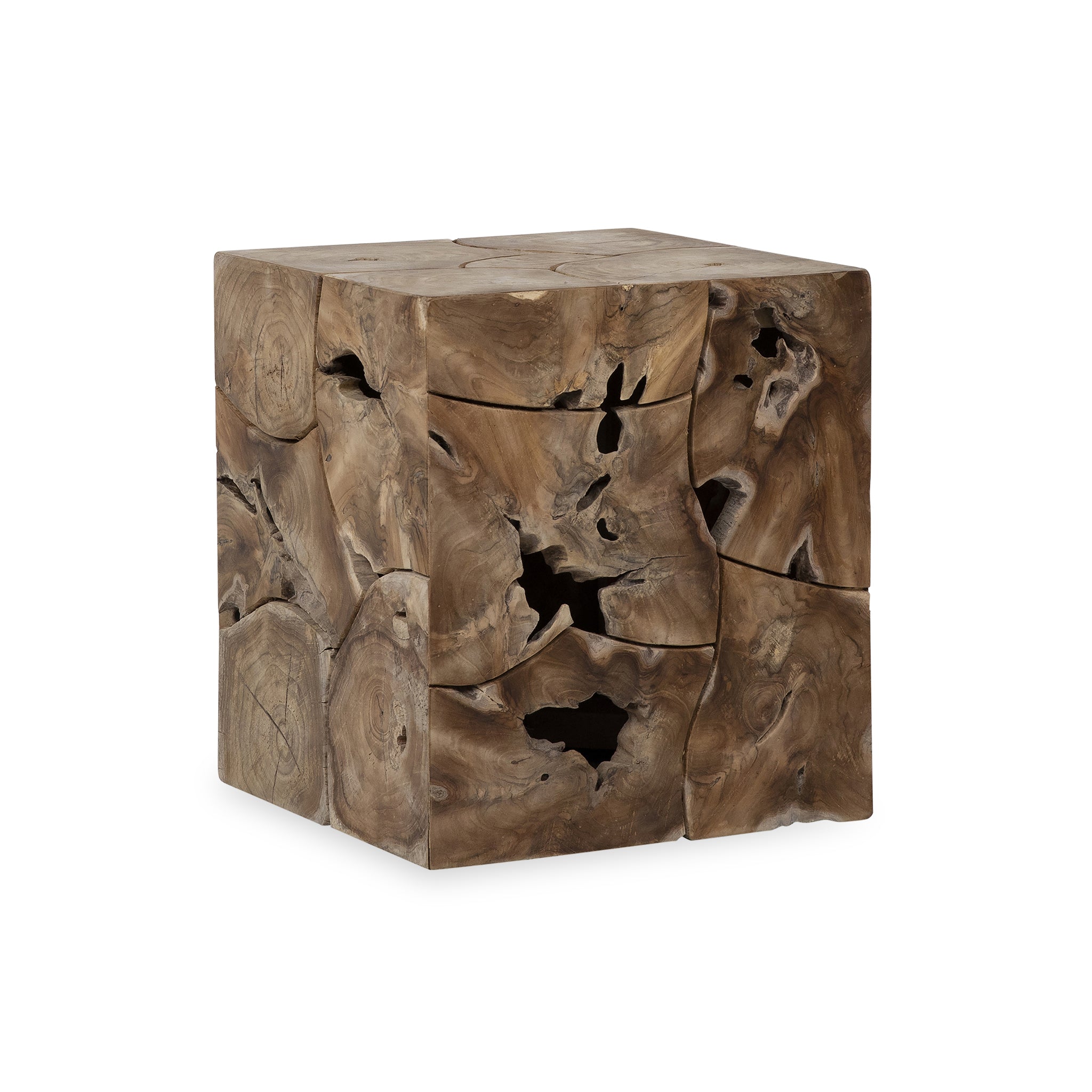 Discover the unique charm of the Tarquin Side Table in a natural teak finish, meticulously crafted from reclaimed slabs and chunks of solid teak wood. Each table is finished in a natural teak finish, showcasing exquisite craftsmanship and individuality. Artisans assemble each piece like a puzzle, creating combinations that are never duplicated, ensuring that each table is a true work of art. Measuring 18 inches in length, these square end tables are perfectly sized to complement any living room or sitting area. Embrace the organic beauty and unmatched character of the teak side table, where each piece tells its own distinct story.