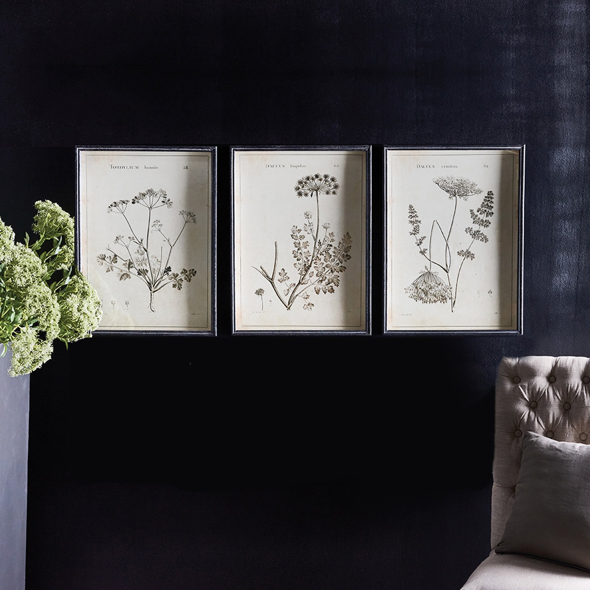 Our Vintage Flower Study I has all the charm & detail of these wildflowers illustrated in shades of grey, black & white. Paired with a distressed black frame, these are beautiful set of 3 glass-framed prints for an office or study. Pair it with Vintage Flower Study II for a real statement.
