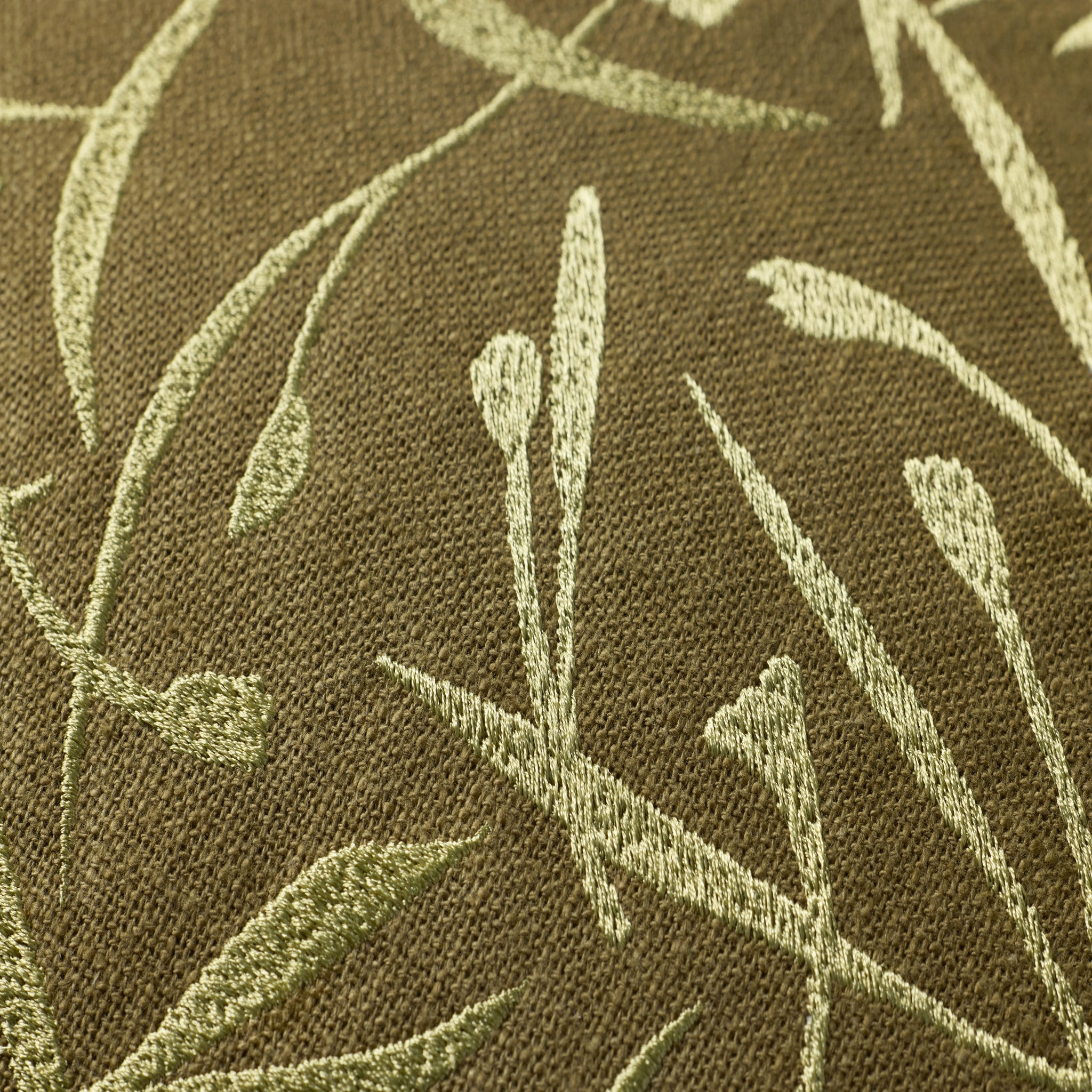 PBR0017 Olive is a beautifully embroidered botanical throw pillow from Brigette Romanek x Loloi for elegant home decor. The olive green pillow cover is machine embroidered of cotton and polyester in India and measures 13" x 21", a versatile living room, bedroom, or accent pillow.
