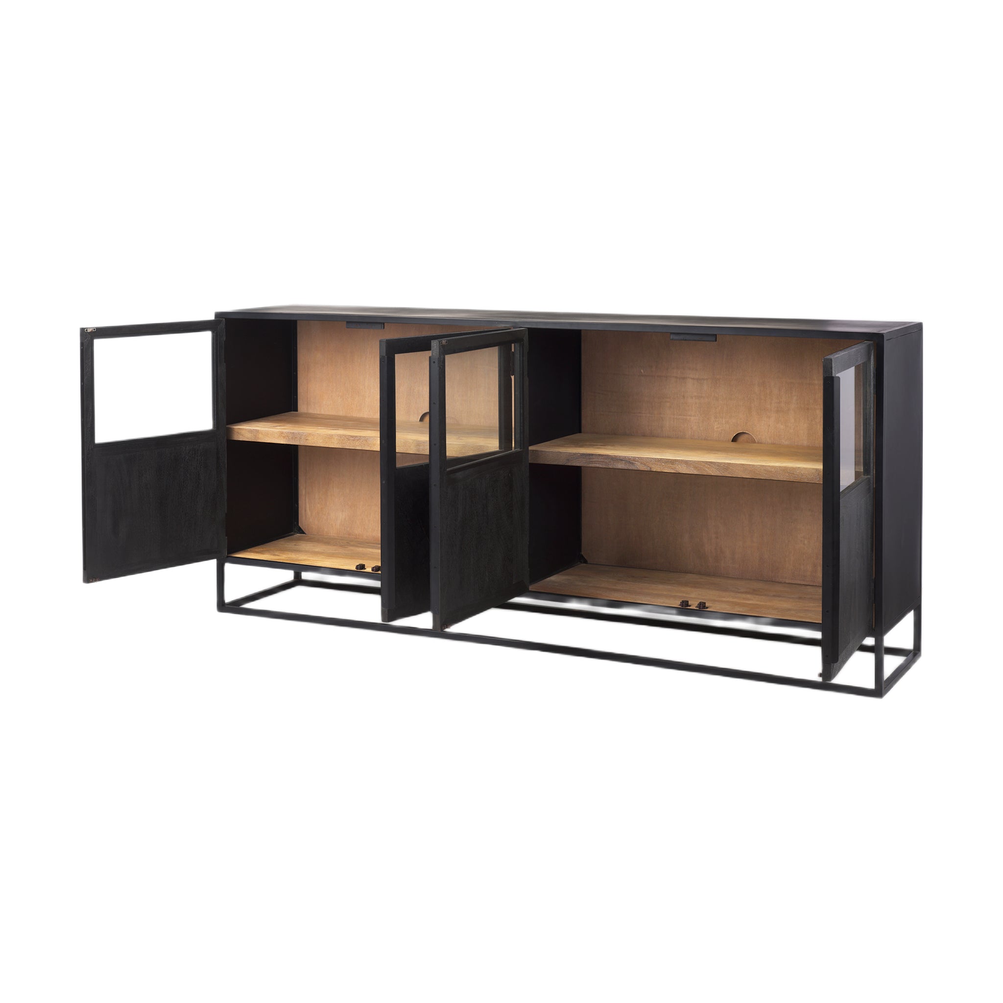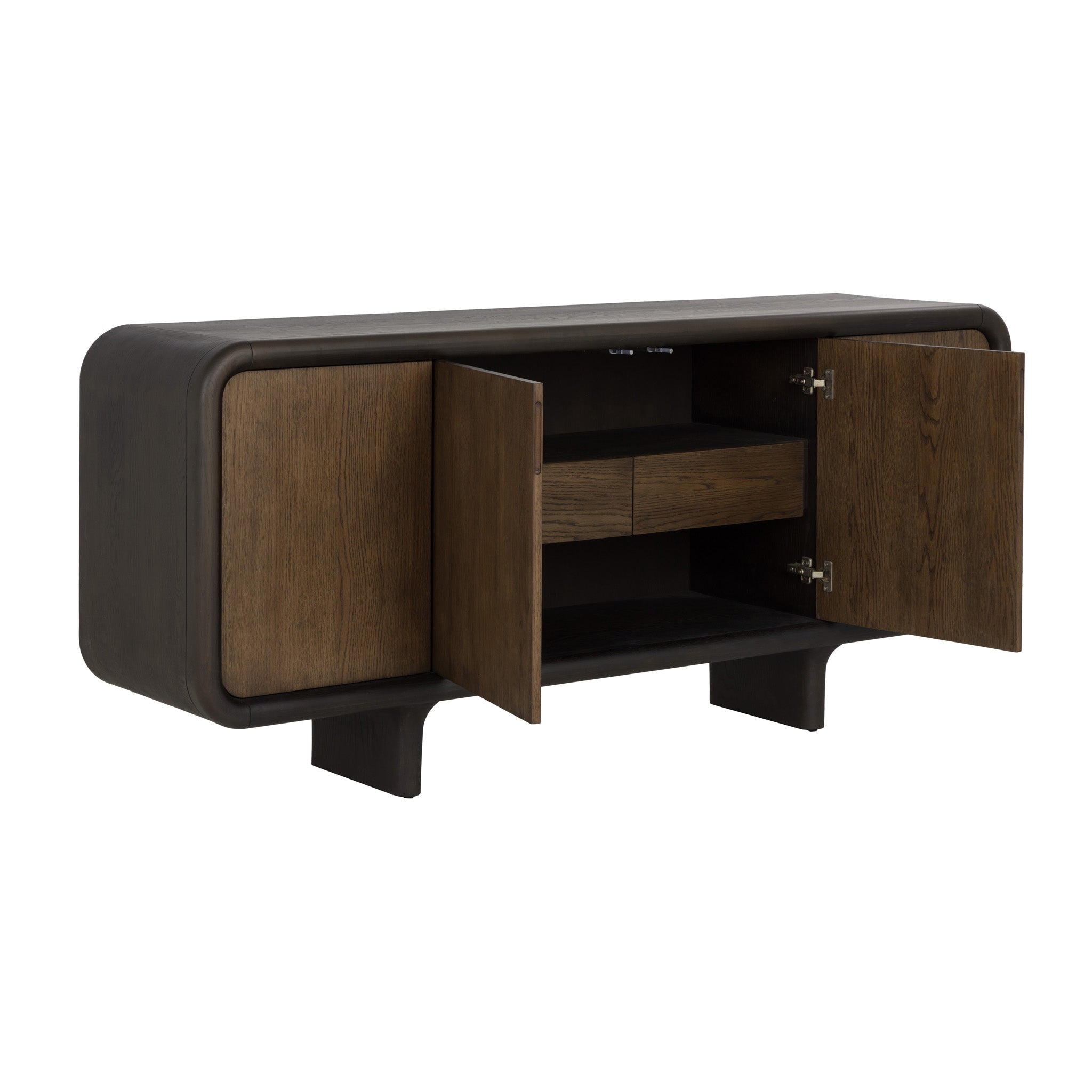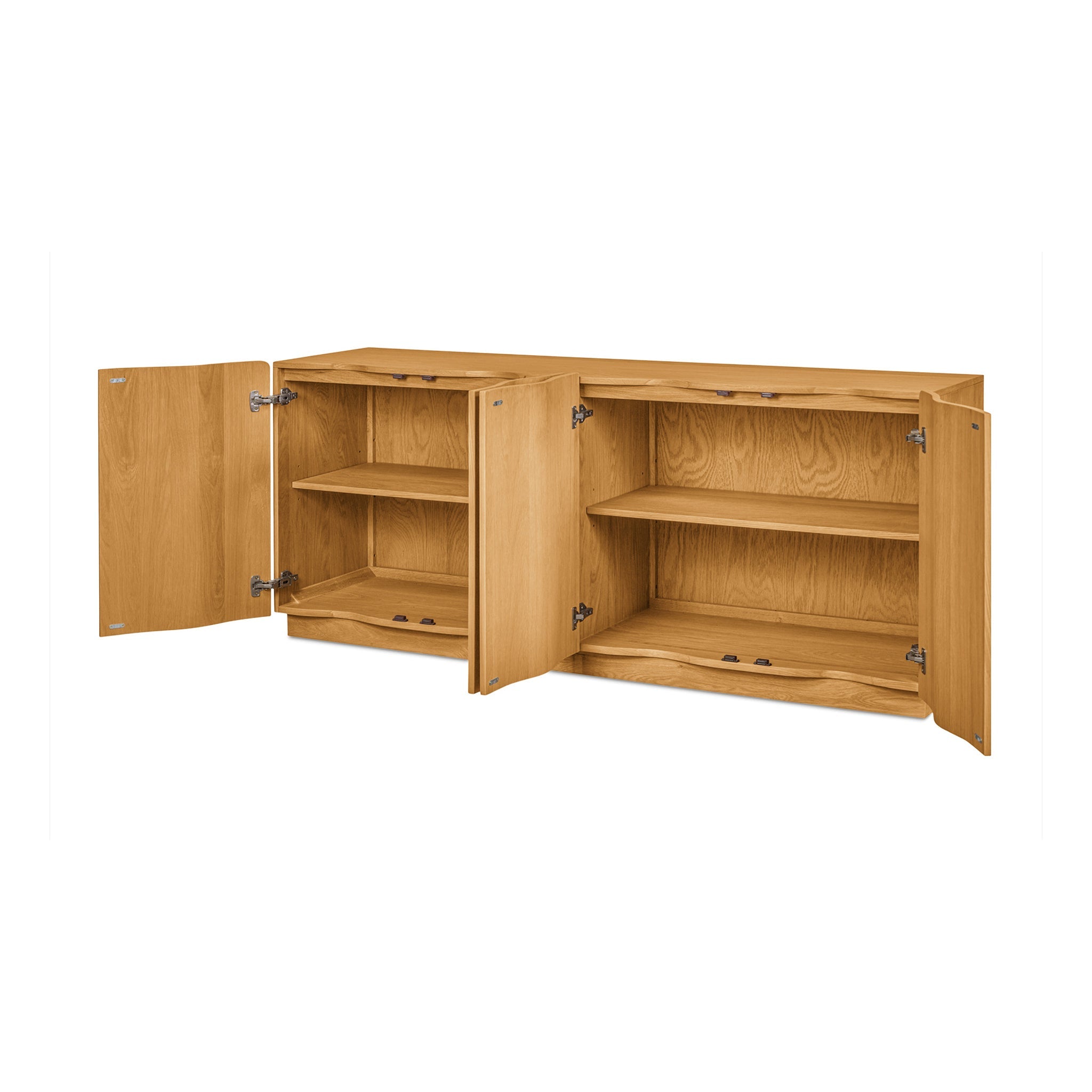 Complement your decor and your existing furniture with the addition of a beautiful, and functional, designer buffet or sideboard from our curated collection. If you already have the ideal dining room table for entertaining, what better place to store all your dishes, serveware and linens than a stunning sideboard? Setting your table is a breeze when you have quick and easy access to all your kitchen essentials, and our decorative buffets hide all the clutter behind sleek, modern finishes. Find options in natural wood, retro designs and textured finishes, or add a cabinet with glass doors to your living room decor to store your media. These versatile sideboards can even double as bedroom dressers, giving you ample space on top to add a mirror and create a vanity. Storage space is always at a premium in any home, which is why our chic sideboards and buffets are must-haves in any room - giving you that much-needed space to tuck everything away without anyone knowing what's behind the doors.