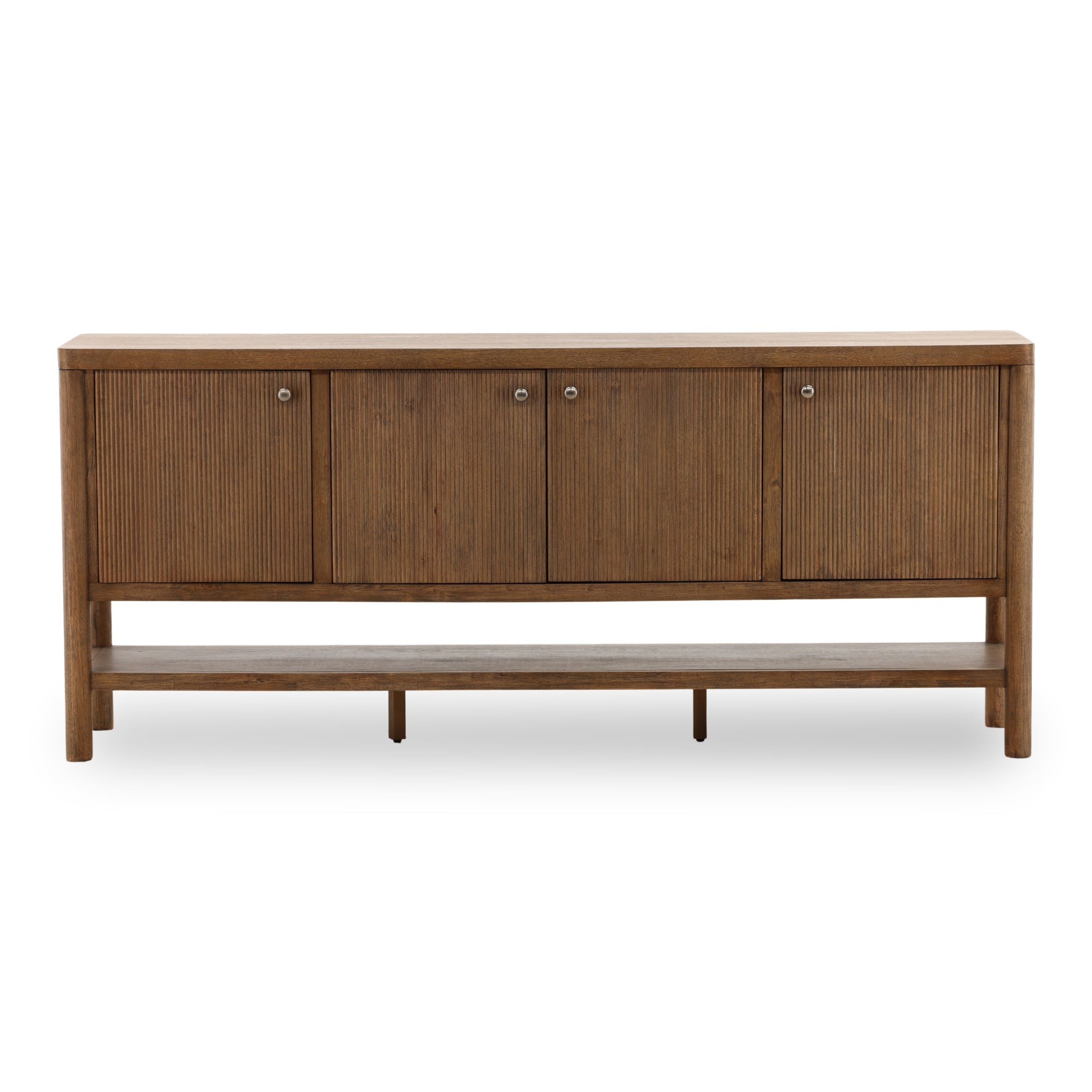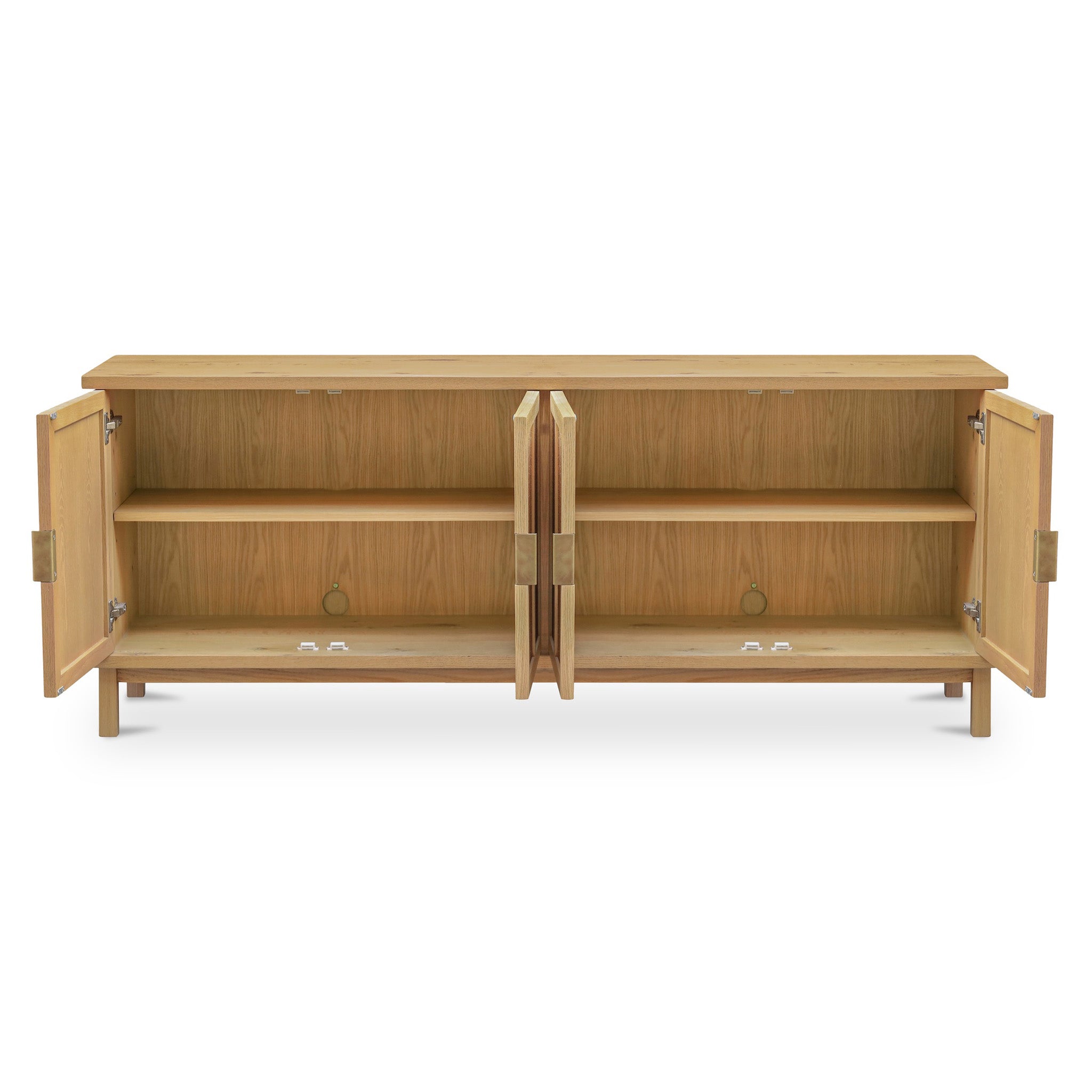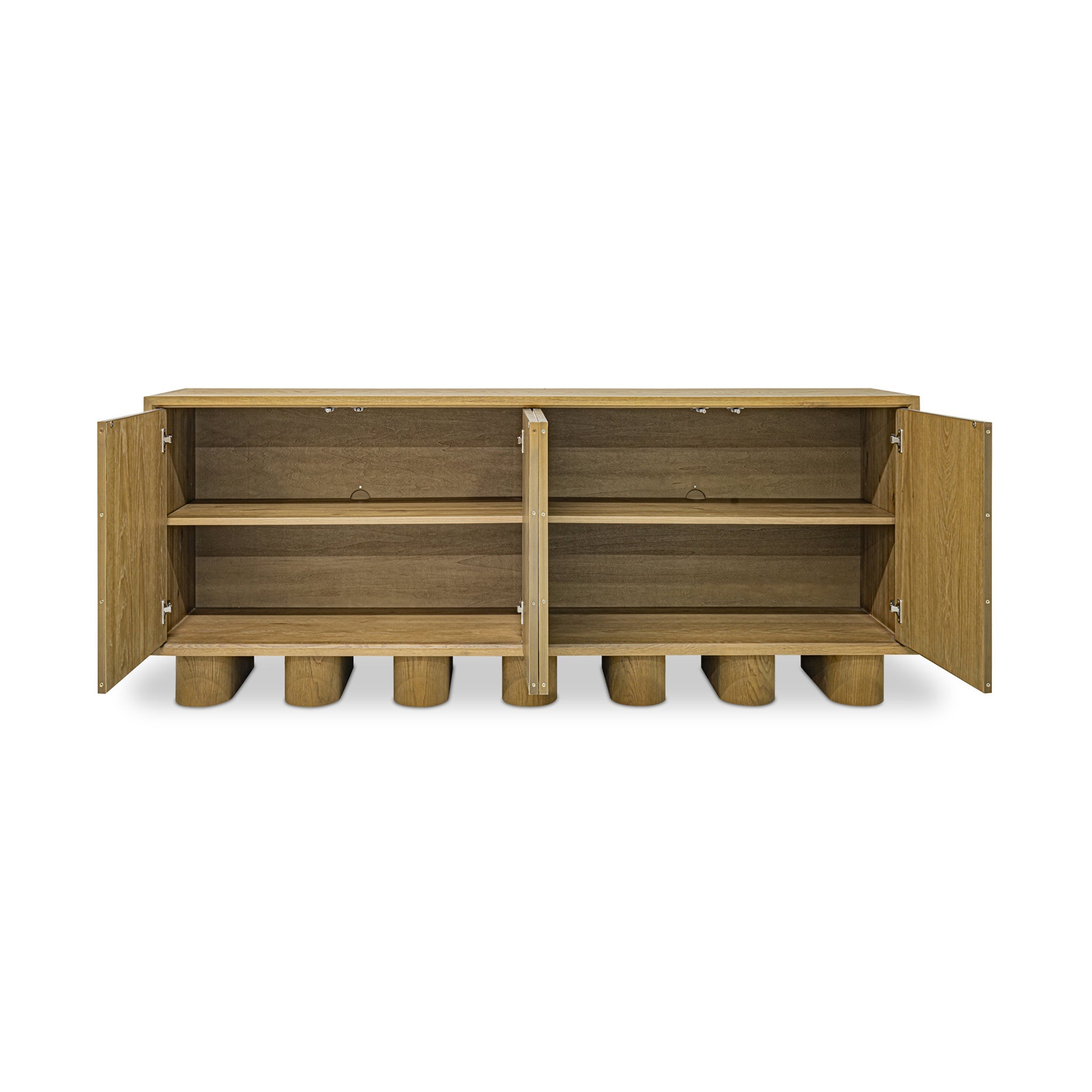 Complement your decor and your existing furniture with the addition of a beautiful, and functional, designer buffet or sideboard from our curated collection. If you already have the ideal dining room table for entertaining, what better place to store all your dishes, serveware and linens than a stunning sideboard? Setting your table is a breeze when you have quick and easy access to all your kitchen essentials, and our decorative buffets hide all the clutter behind sleek, modern finishes. Find options in natural wood, retro designs and textured finishes, or add a cabinet with glass doors to your living room decor to store your media. These versatile sideboards can even double as bedroom dressers, giving you ample space on top to add a mirror and create a vanity. Storage space is always at a premium in any home, which is why our chic sideboards and buffets are must-haves in any room - giving you that much-needed space to tuck everything away without anyone knowing what's behind the doors.