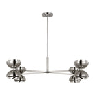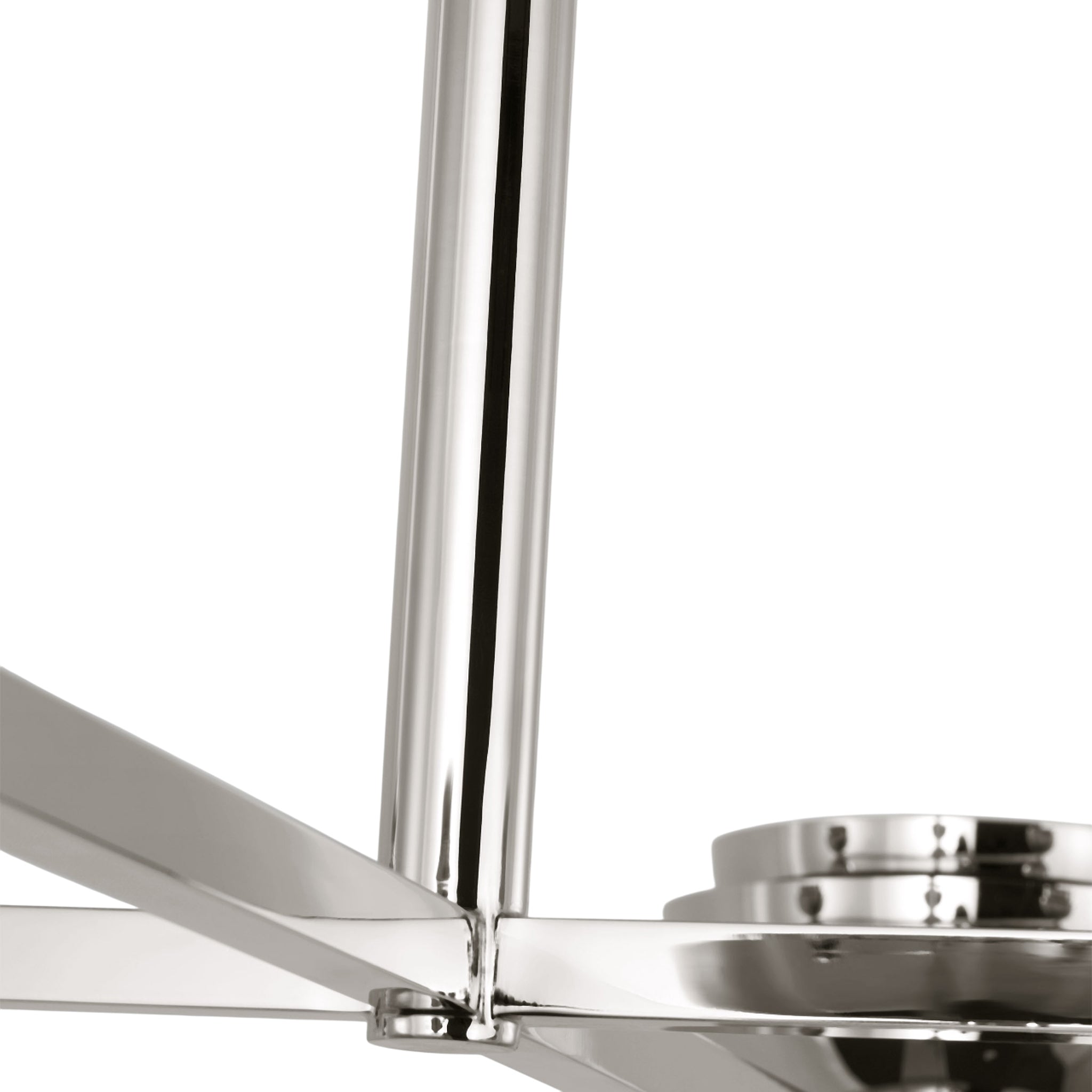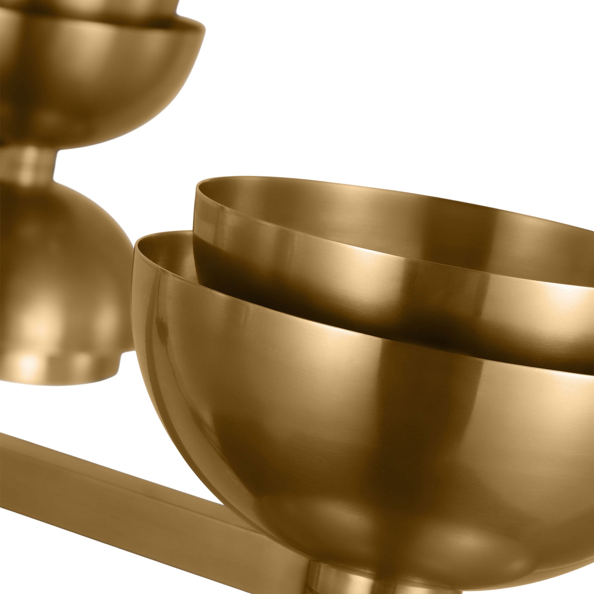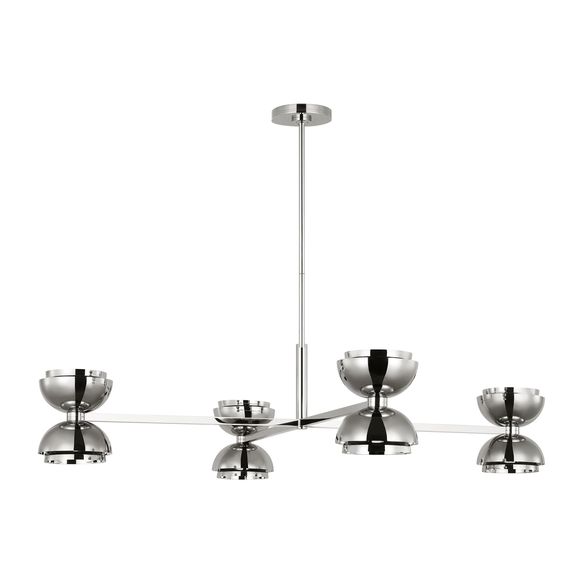 The Shanti X-Chandelier by Sean Lavin is a statement-making piece you'll want to set the tone in your foyer, living room, or dining room. The design presents a fresh visual you can indulge in from any angle you look at it. Hanging from the end of a simple stem is a set of large spun metal-shaped shades. Light sends the piece to another level as the multi-directional bulbs glaze the structure while creating a warm, radiant glow. Integrated LED modules bring the metal to life as they emit a bright and even layer of light through the top and bottom of the piece.