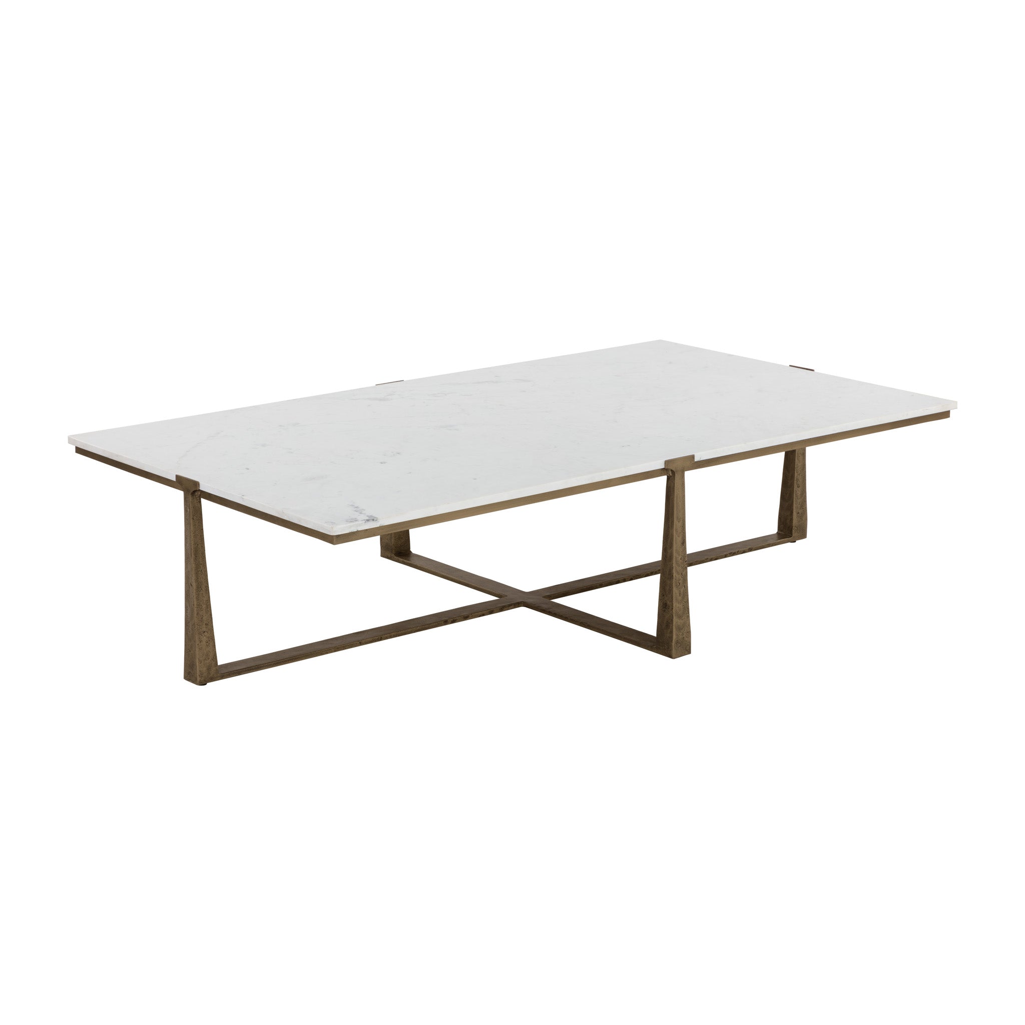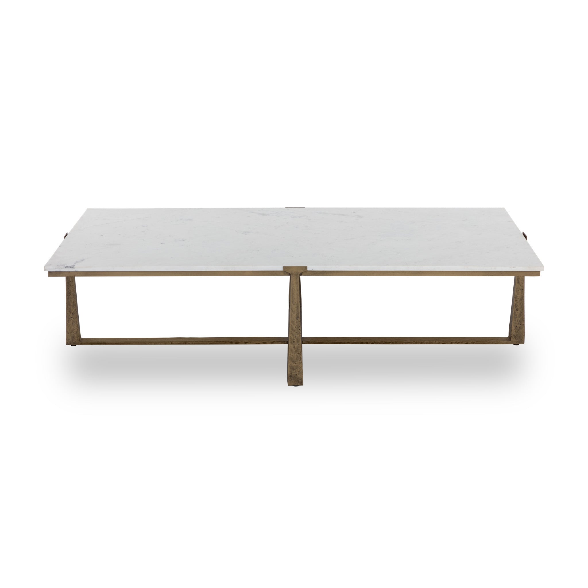 Inspired by mid-century design, the Alonso Coffee Table features a chic, minimal aesthetic that will elevate any room. The powder-coated antique brass finished legs give off a rustic sensibility that contrasts with the cool white marble top. As marble is a natural material, unique veining, pitting, fissures, micro-cracks and colour variations are all characteristics that add to the uniqueness and beauty of each piece. Made in India. With refined craftsmanship, this design was brought to life by skilled local artisans. Due to the nature of handcraftsmanship, unique imperfections such as fissures, markings and variations in colour and shape are welcomed and appreciated characteristics for a truly one-of-a-kind piece.
