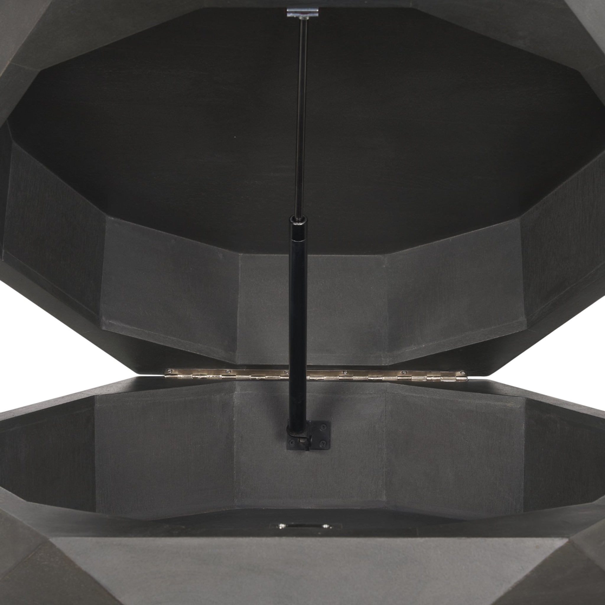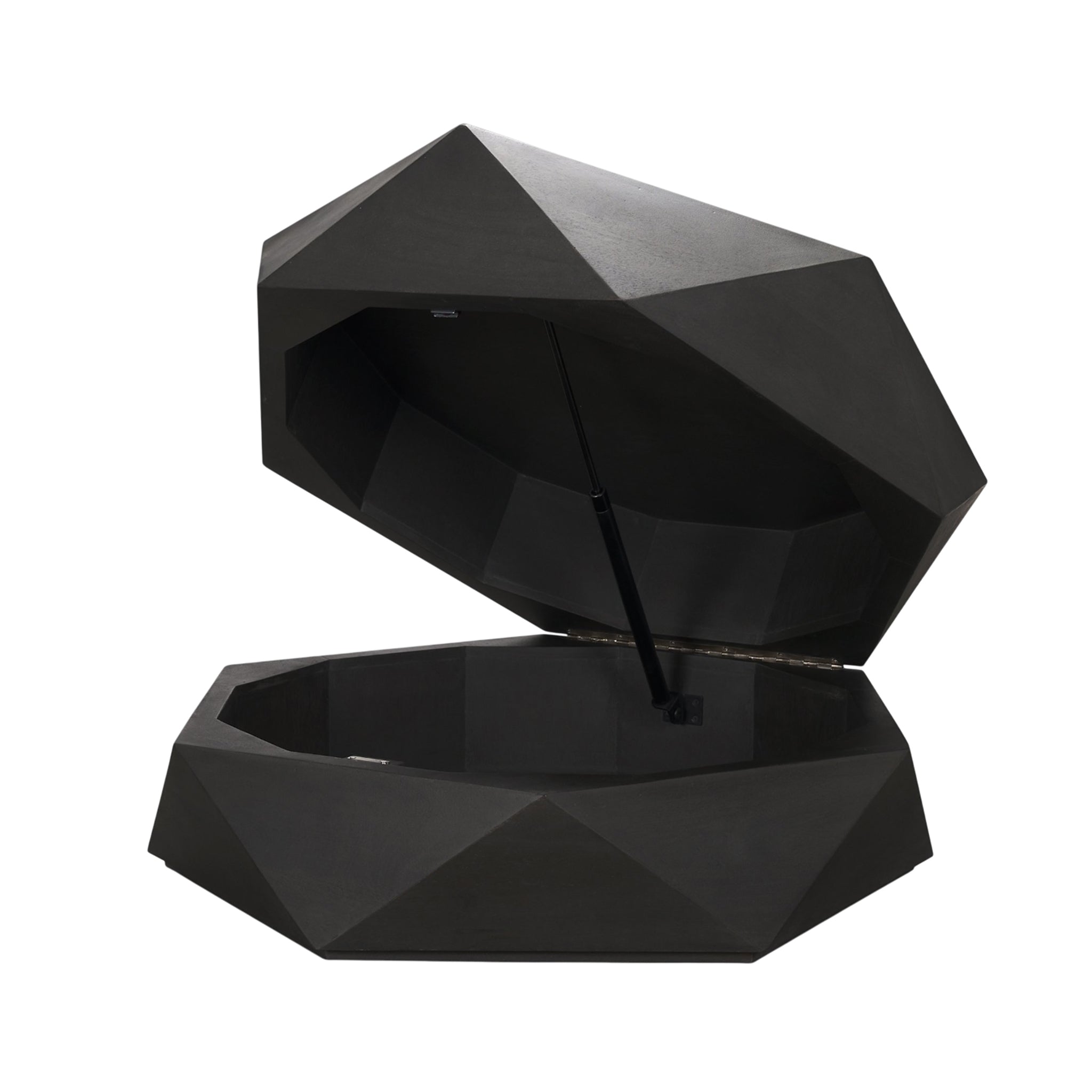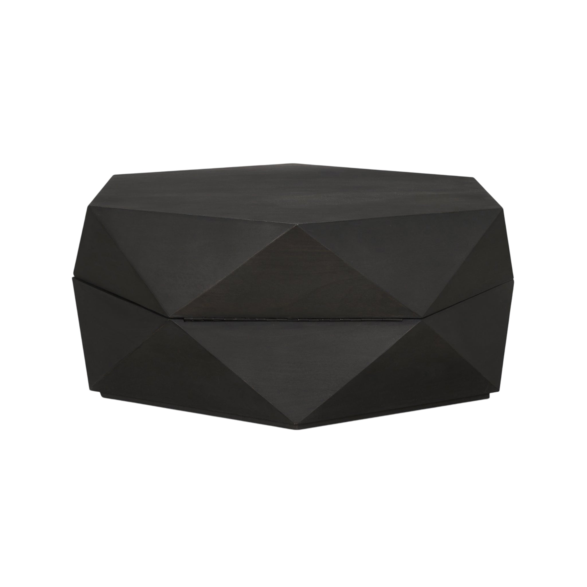 Our Asher Coffee Table collection features the same Wood Hexagonal Storage Table you love but in a dramatic black stain. This is a stunning piece to accent your living room décor with the added functionality of a hinged top that provides plenty of storage within. Give your space a modern update with a table that's as timeless as your taste, and create a statement with this geometric piece of furniture.